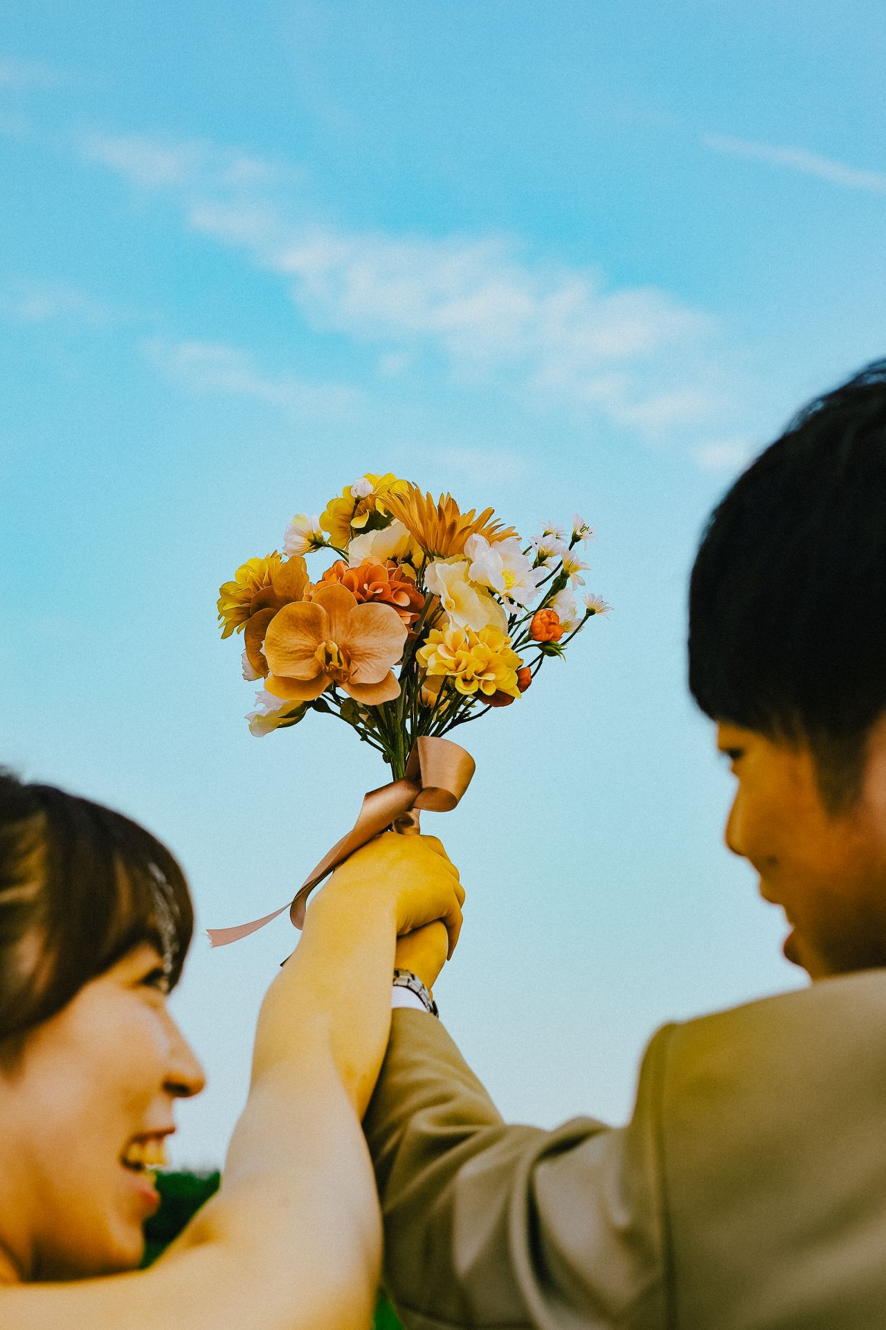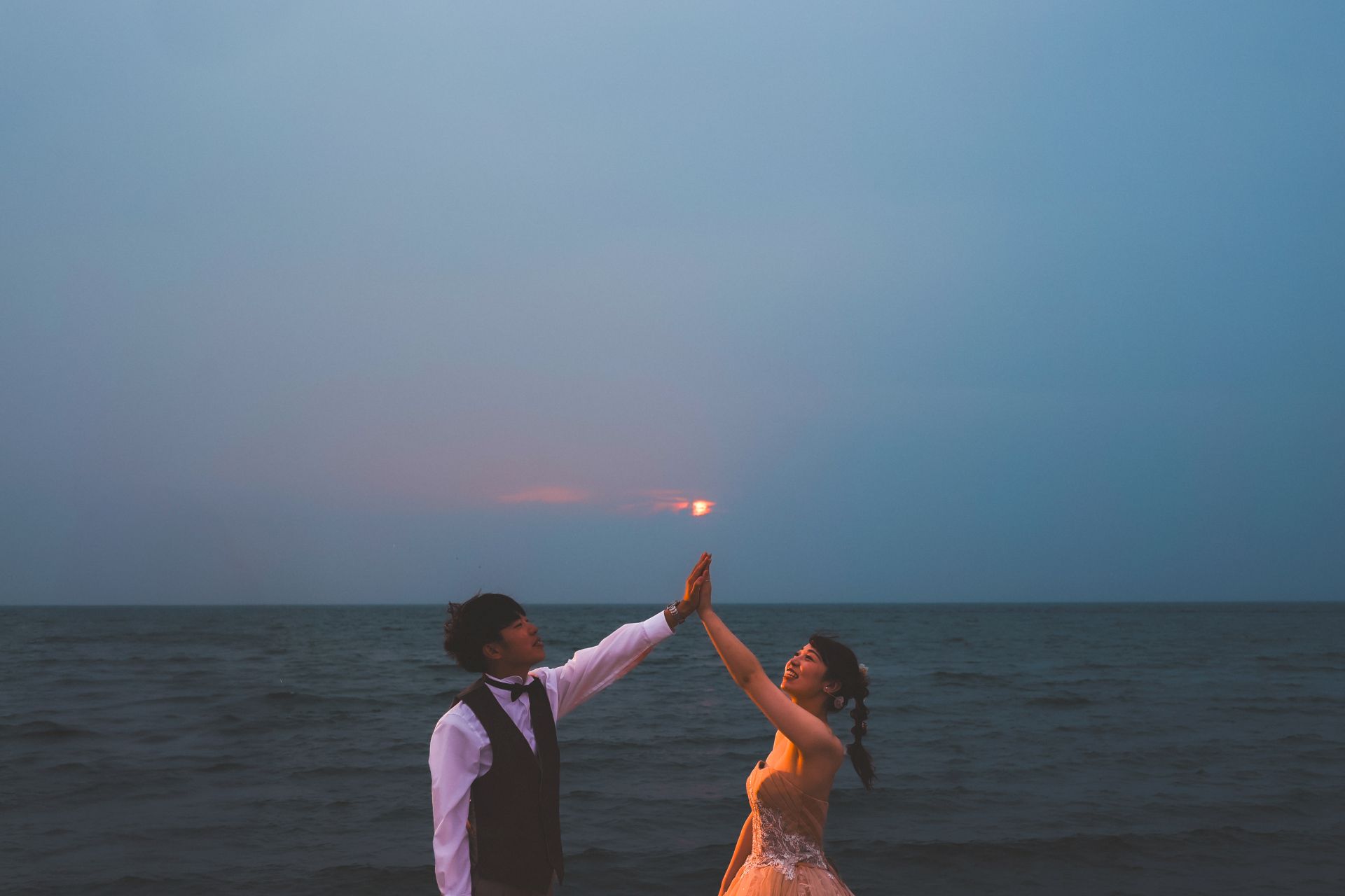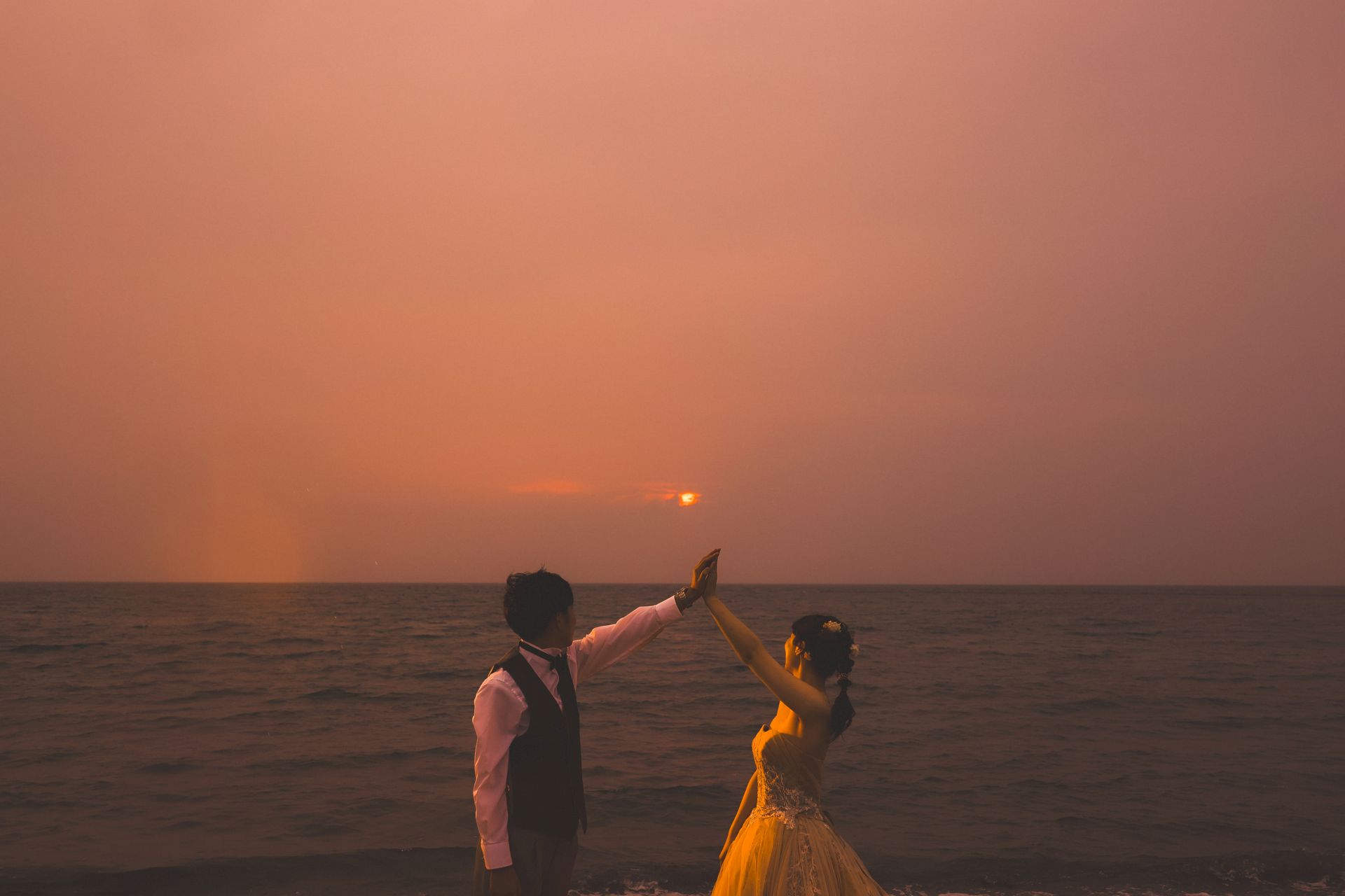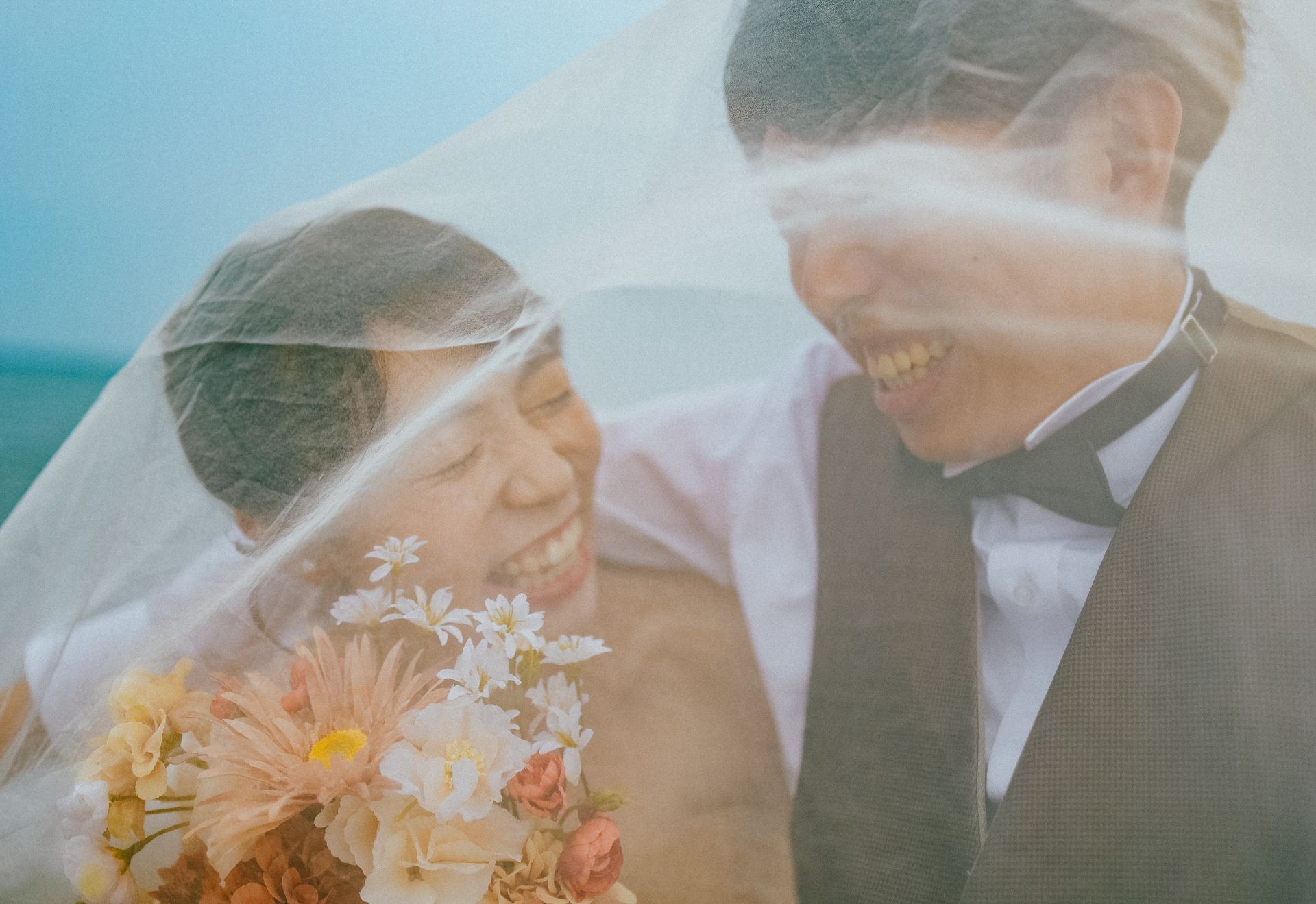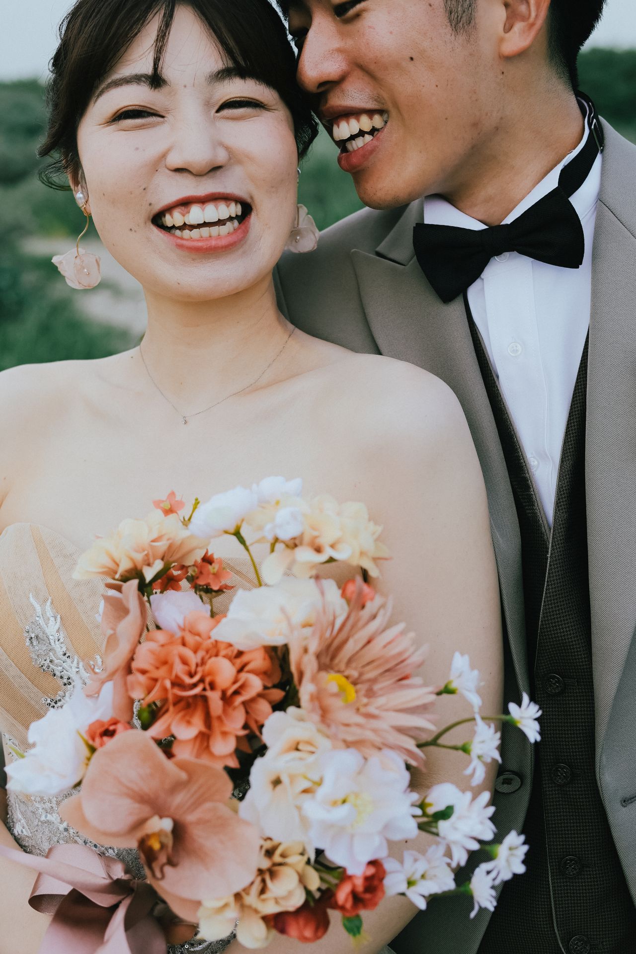 新潟の海辺、夕陽に包まれて 前撮りドレス ロケーションフォトドレス新潟ロケ海ロケ前撮りカラードレス 新潟の海辺、夕陽に包まれて 新潟の美しい海辺。夕暮れ時の柔らかな光が海と空を染め、まさに絶景の中での撮影となりました。 お二人の笑顔がとても印象的で、自然な表情が写真に溢れています。特に、夕日の優しい光が二人の表情を引き立て、温かみのある素敵に仕上がりました。 海辺の風や波の音も心地よく、リラックスした雰囲気の中で前撮りでした。思い出に残る、最高のひとときとなりました。