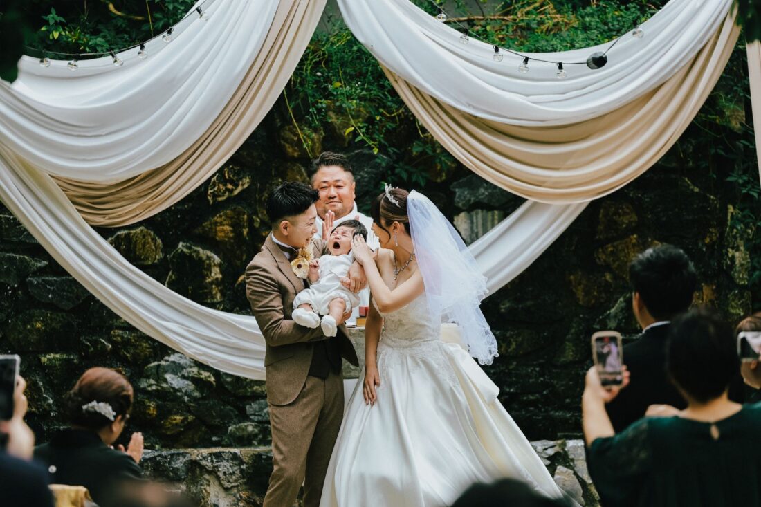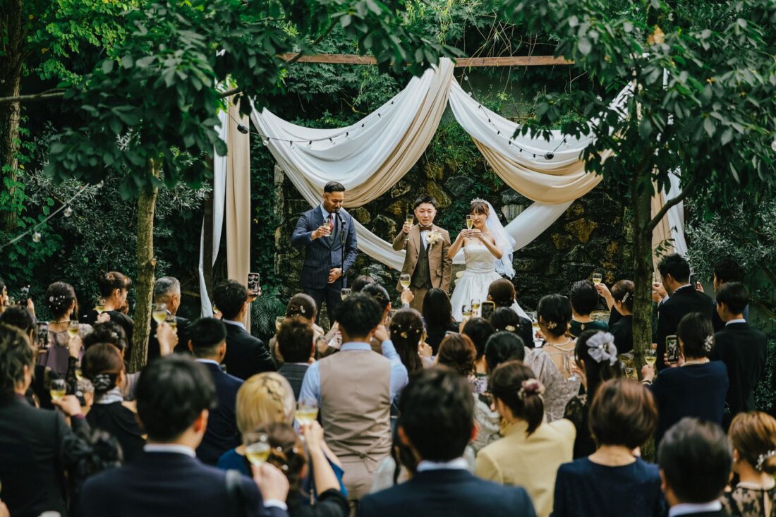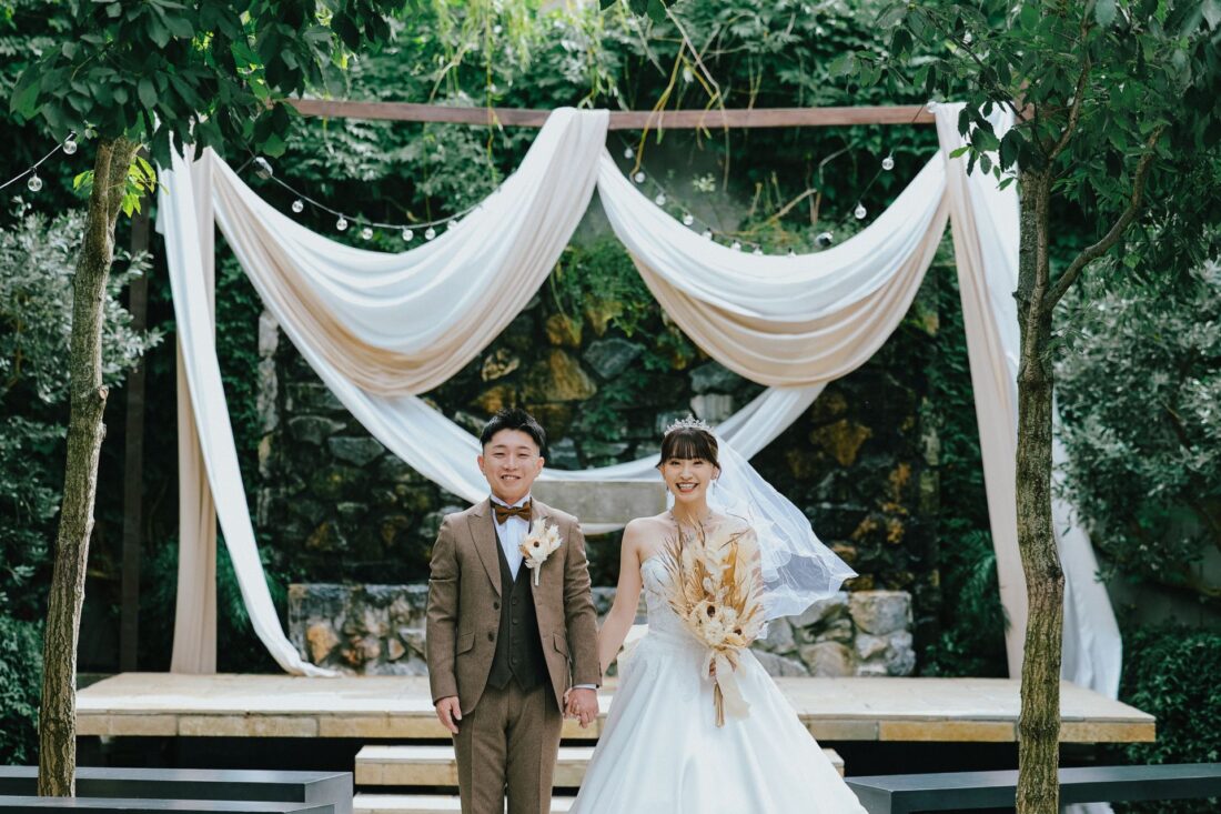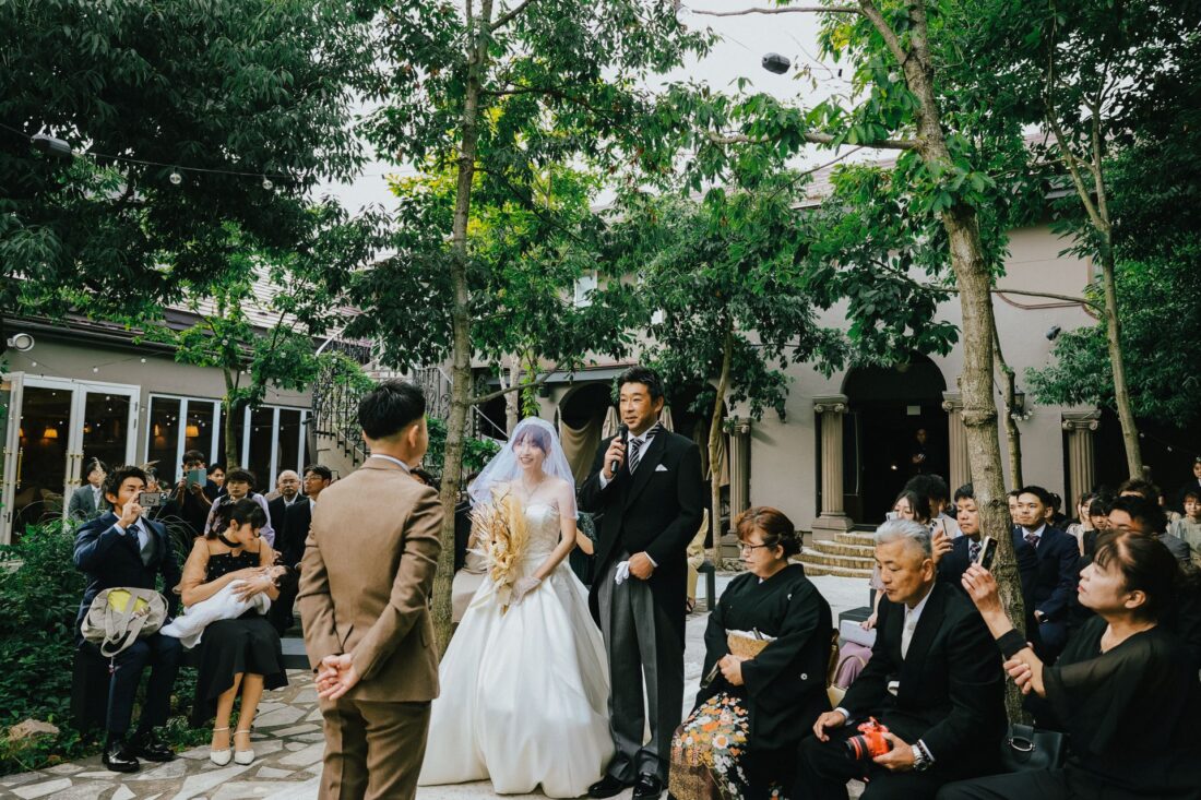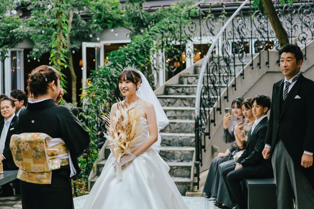 心つながる、秋のガーデンセレモニー 披露宴会場人前式ドレスガーデン ウェディングドレスデザートビュッフェドレスアットホーム大人数パパママ婚カラードレスナイトガーデン 心つながる、秋のガーデンセレモニー 秋晴れの澄んだ空の下、大好きな家族と大切な友人に囲まれてガーデンでの人前式を執り行いました。 これまで支えてくれた家族へ、心からの「ありがとう」を伝えるそんな想いを込めた、アットホームで笑顔あふれる一日。 形式にとらわれず、私たちらしく、温かい時間を過ごせました。