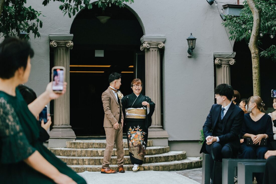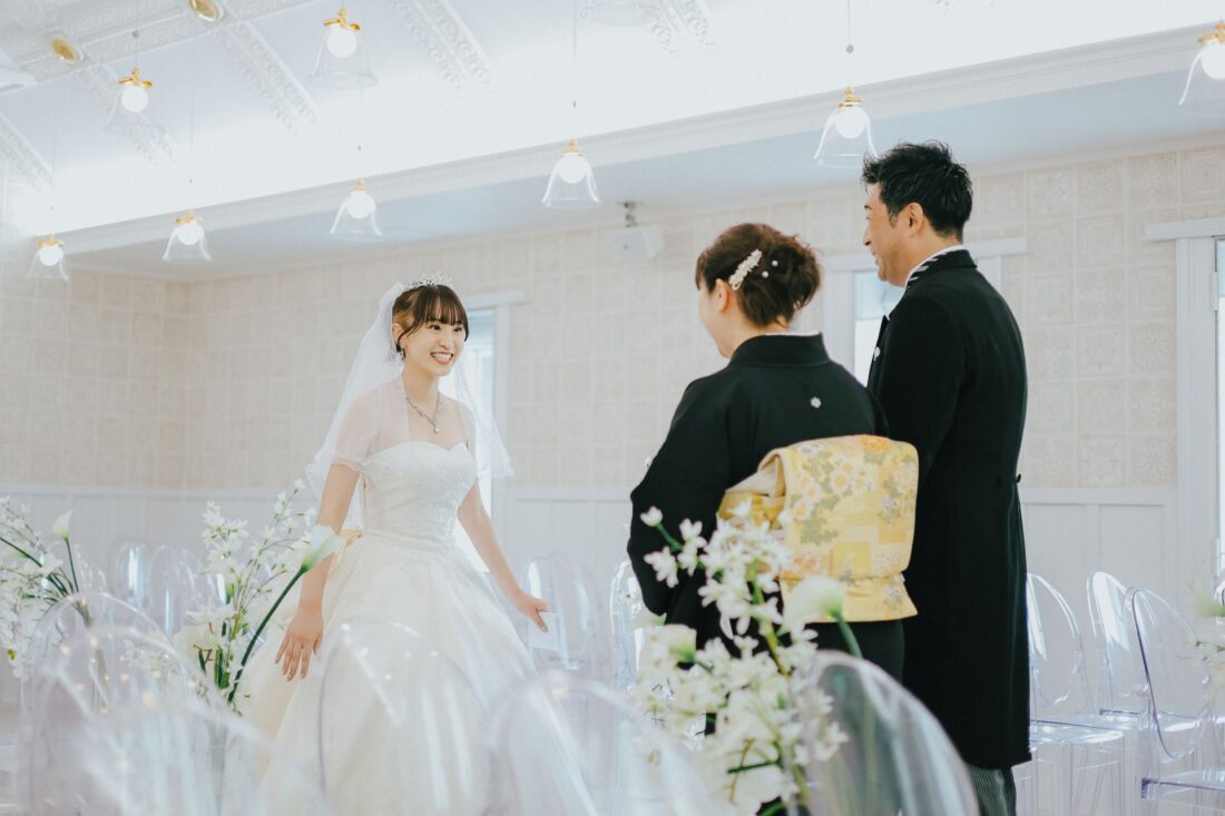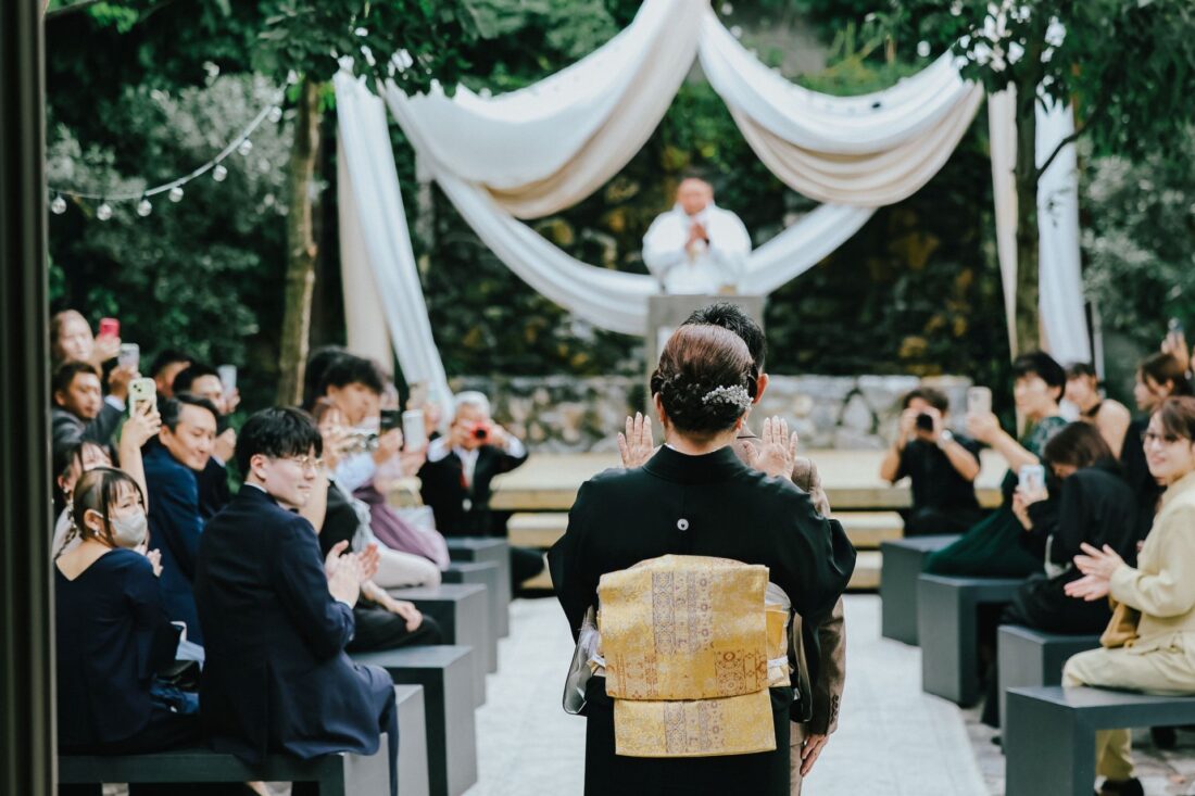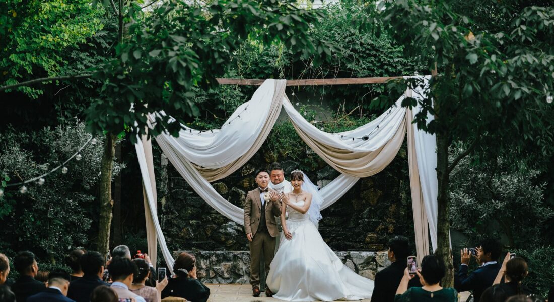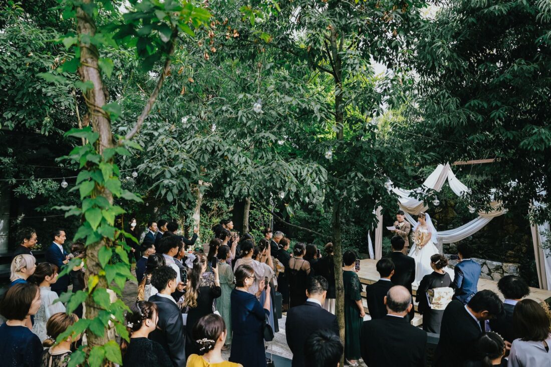 心つながる、秋のガーデンセレモニー 披露宴会場人前式ドレスガーデン ウェディングドレスデザートビュッフェドレスアットホーム大人数パパママ婚カラードレスナイトガーデン 心つながる、秋のガーデンセレモニー 秋晴れの澄んだ空の下、大好きな家族と大切な友人に囲まれてガーデンでの人前式を執り行いました。 これまで支えてくれた家族へ、心からの「ありがとう」を伝えるそんな想いを込めた、アットホームで笑顔あふれる一日。 形式にとらわれず、私たちらしく、温かい時間を過ごせました。