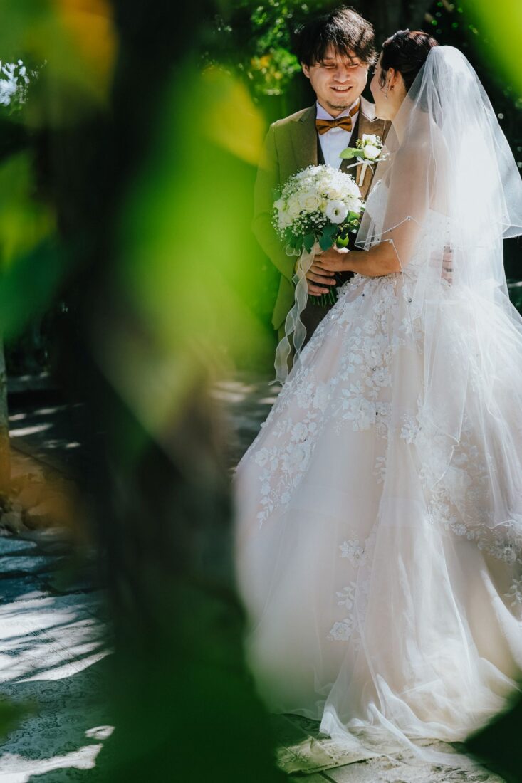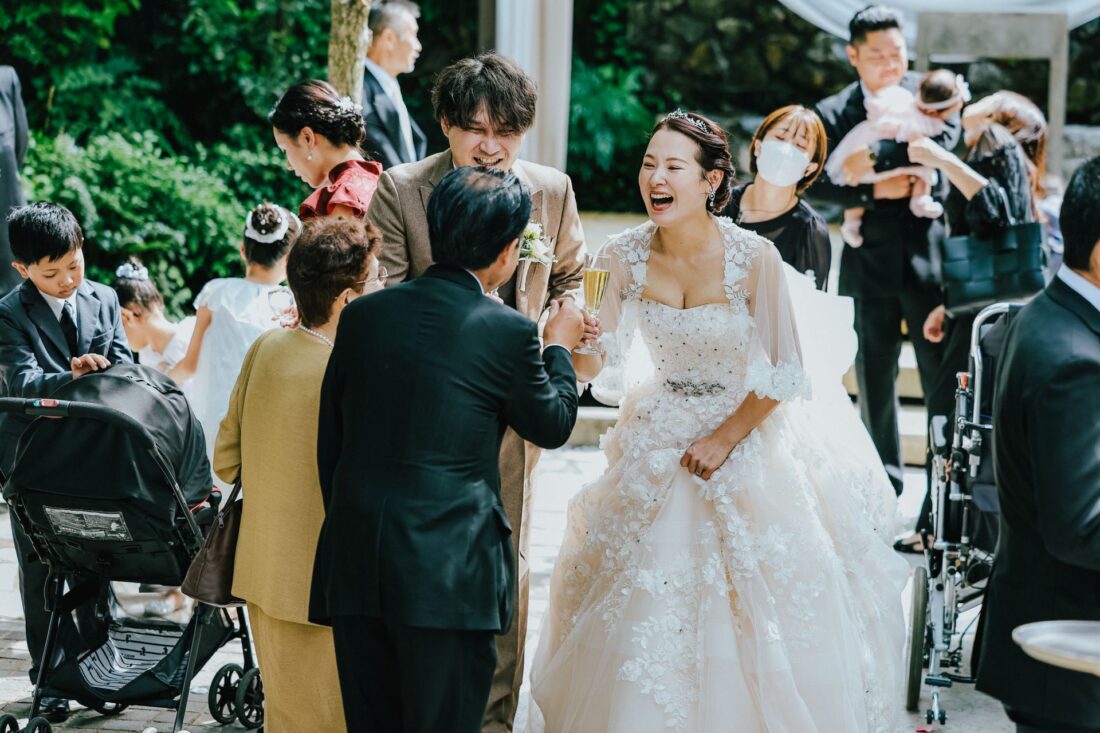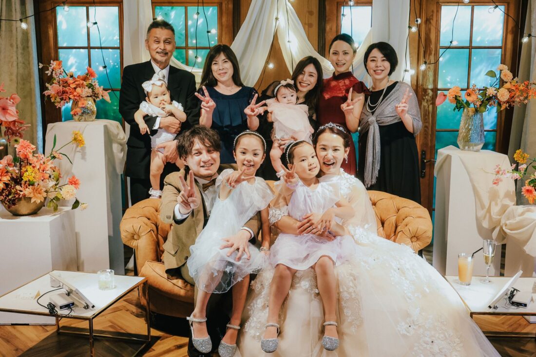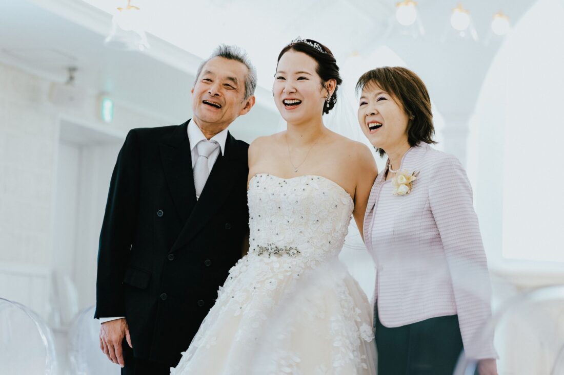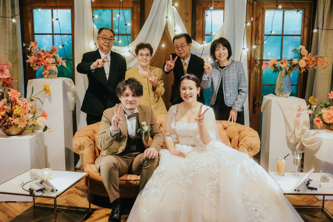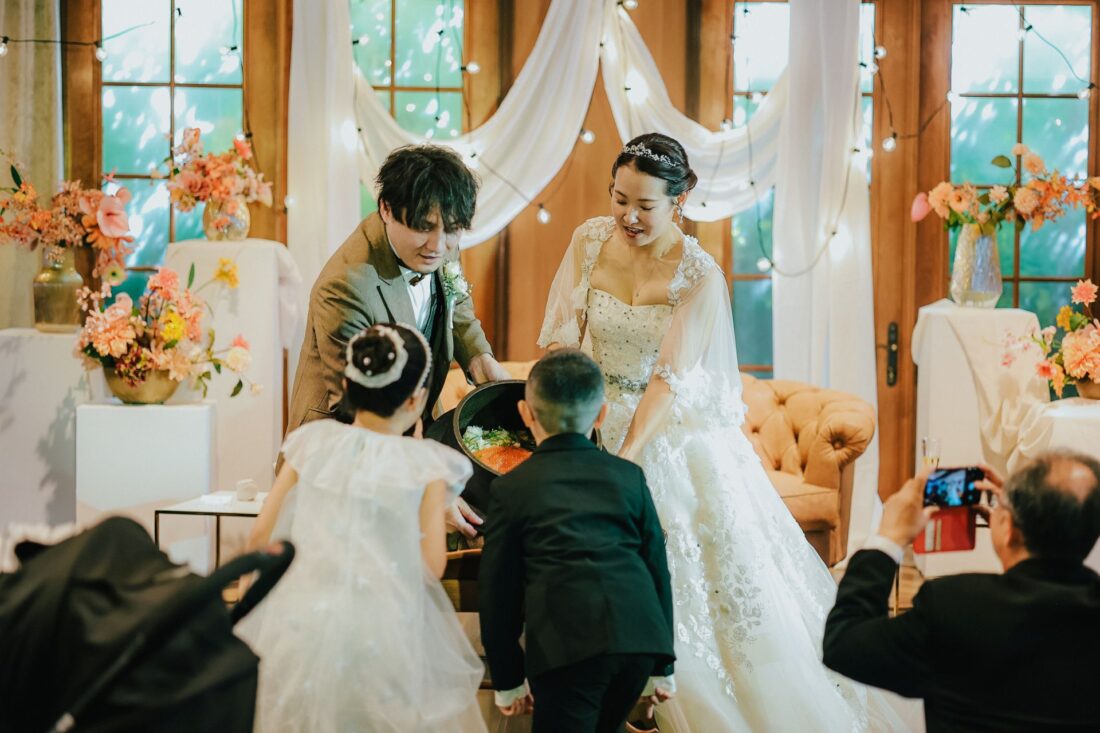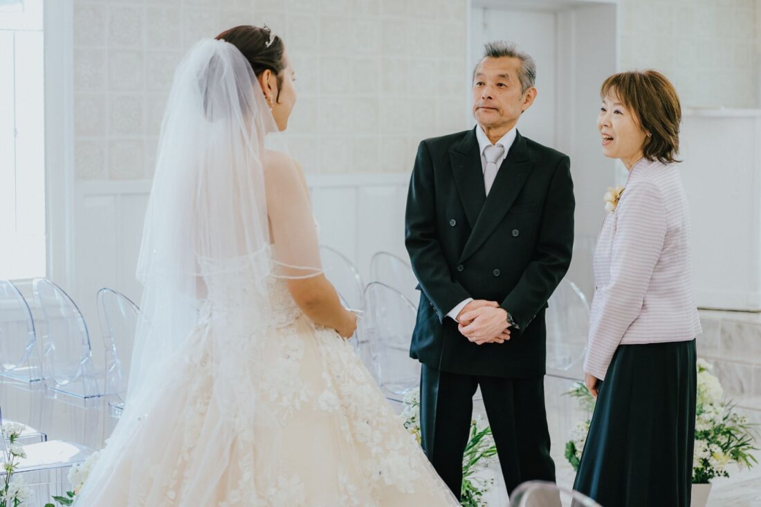 感謝を込めて。親族だけのアットホームウェディング 披露宴会場人前式チャペルドレスガーデン少人数 ウェディングドレスデザートビュッフェドレスアットホームリングガールパパママ婚 感謝を込めて。親族だけのアットホームウェディング 両親に花嫁姿を見せたいという気持ちはずっと心の中にありました。 形式ばらず、気取らず、家族や親族だけでゆっくり過ごせる時間があればいいなと、アットホームなパーティーを開くことにしました。 美味しい料理とあたたかい会話、そしてたくさんの笑顔に包まれた時間は、私たちにとって一生の宝物になりました。
