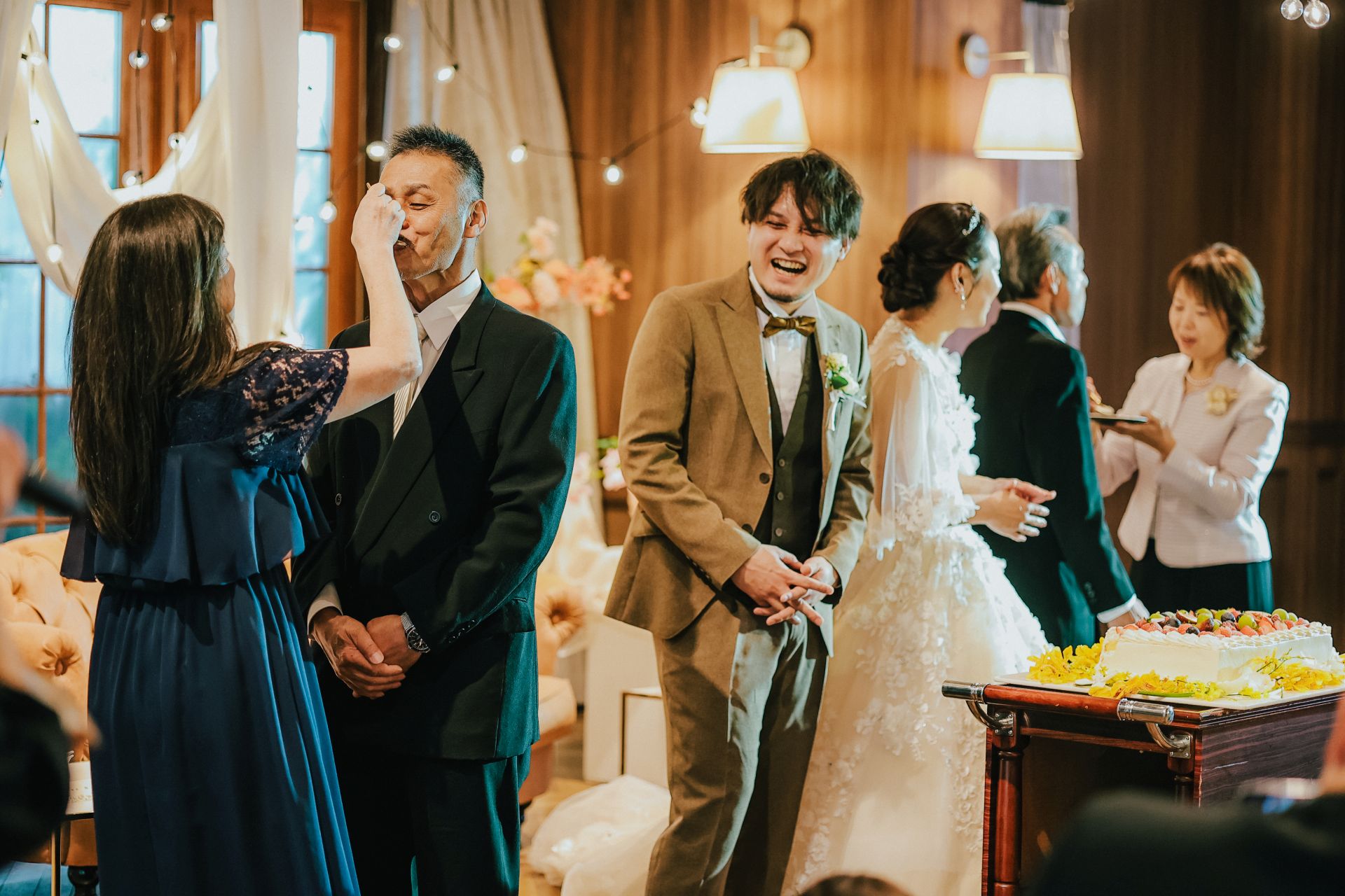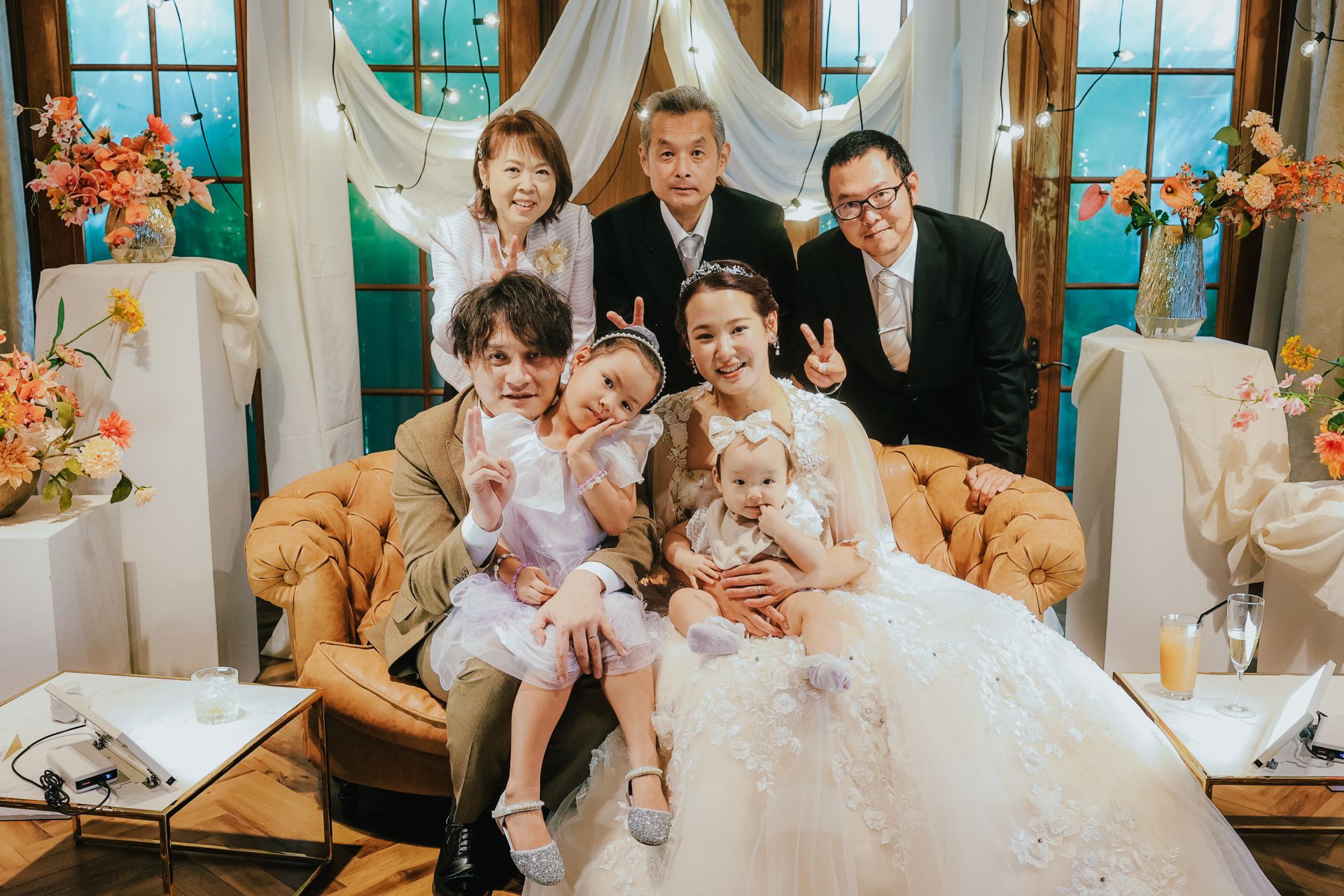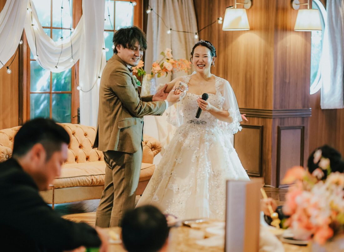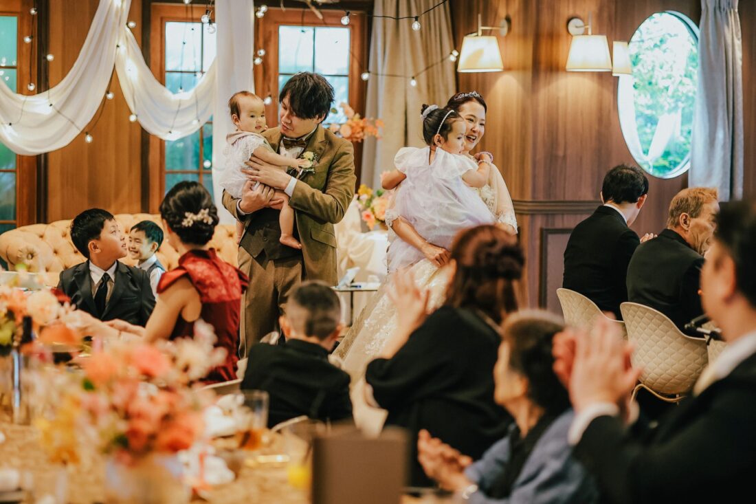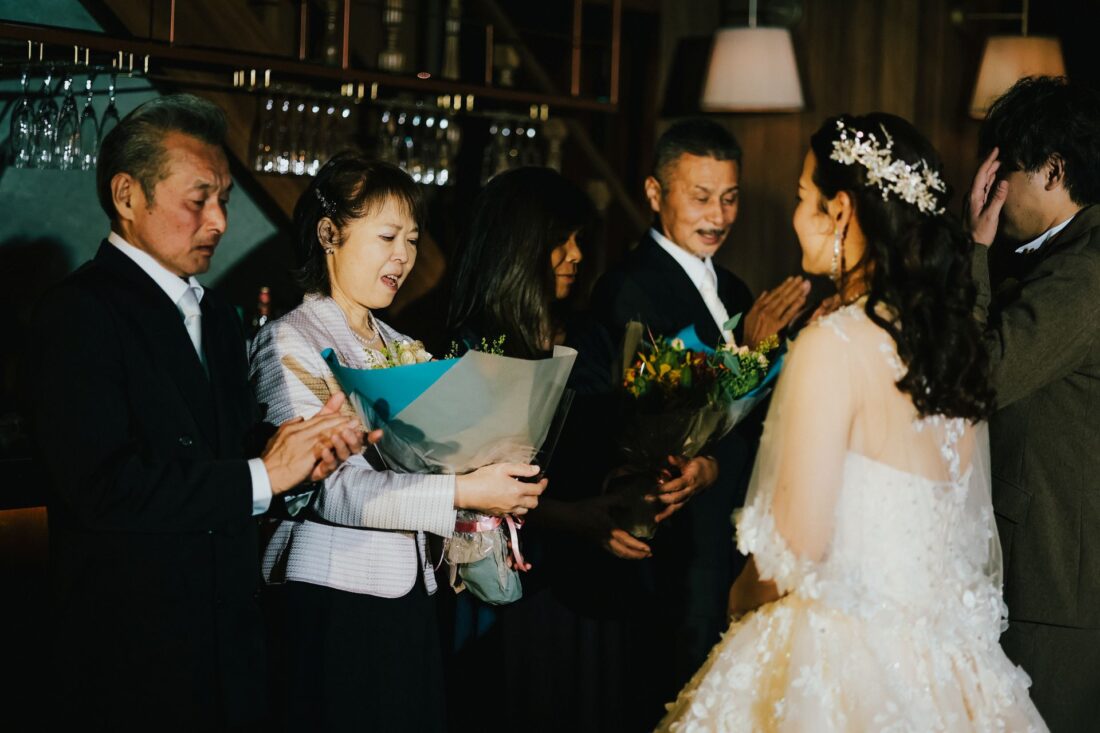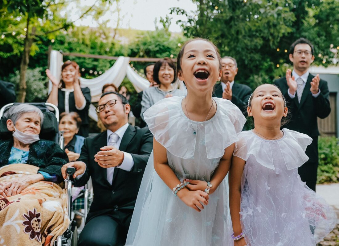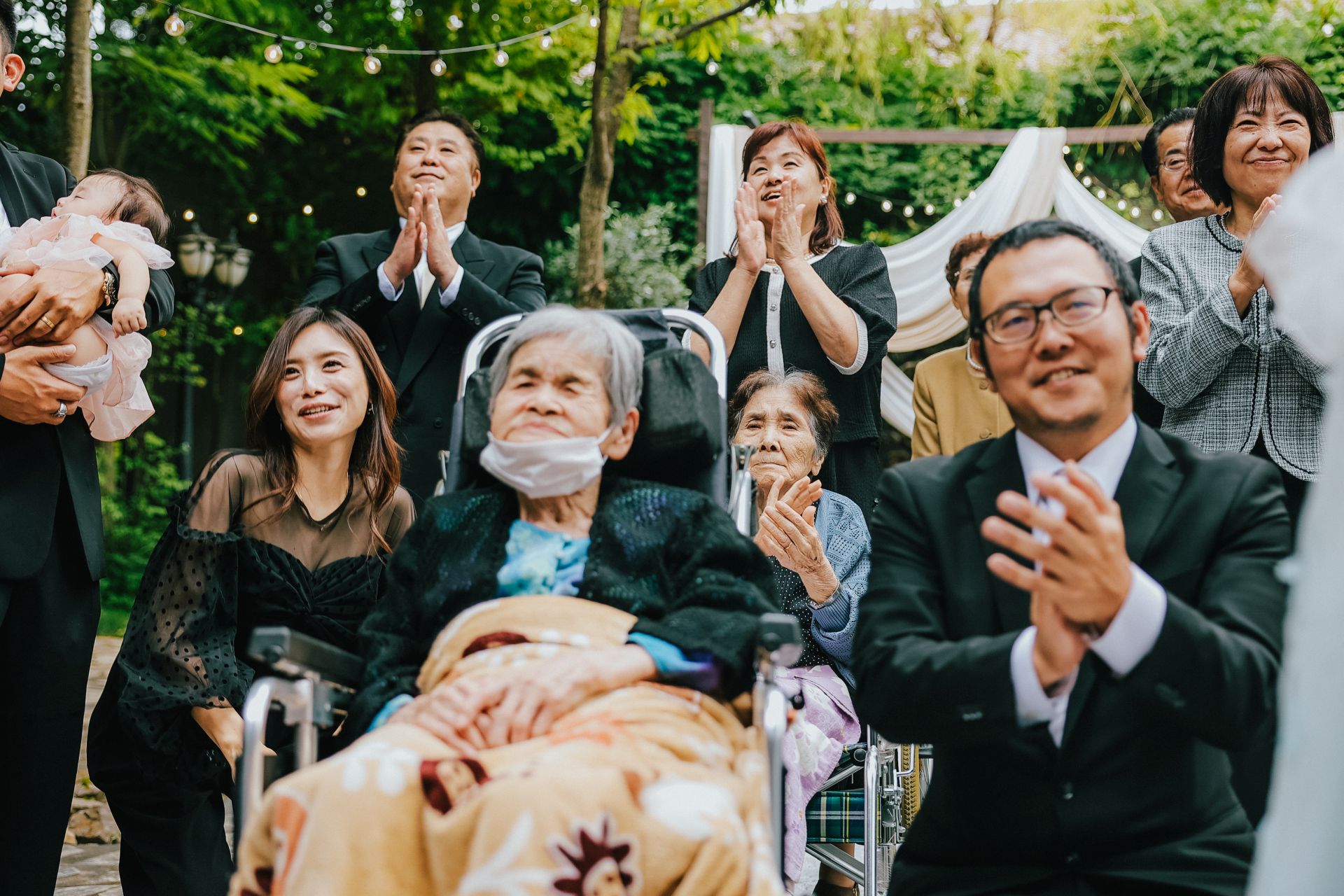 感謝を込めて。親族だけのアットホームウェディング 披露宴会場人前式チャペルドレスガーデン少人数 ウェディングドレスデザートビュッフェドレスアットホームリングガールパパママ婚 感謝を込めて。親族だけのアットホームウェディング 両親に花嫁姿を見せたいという気持ちはずっと心の中にありました。 形式ばらず、気取らず、家族や親族だけでゆっくり過ごせる時間があればいいなと、アットホームなパーティーを開くことにしました。 美味しい料理とあたたかい会話、そしてたくさんの笑顔に包まれた時間は、私たちにとって一生の宝物になりました。