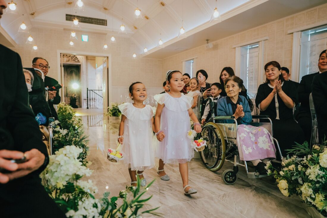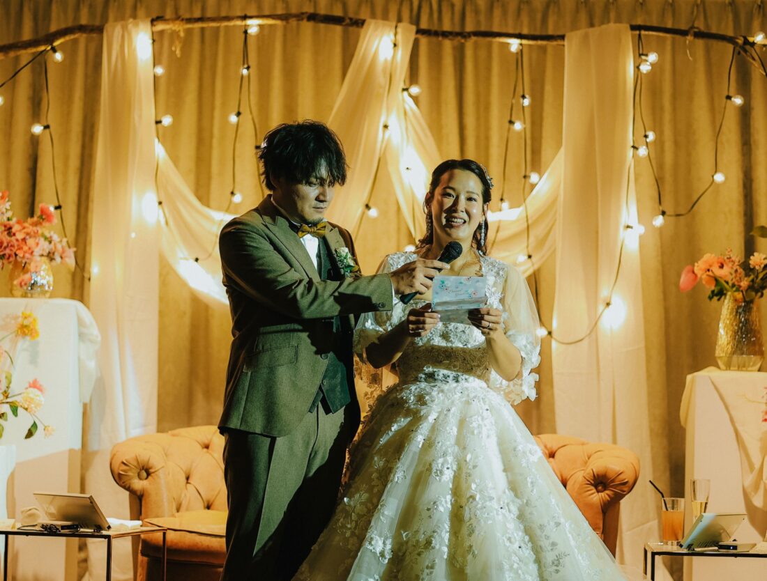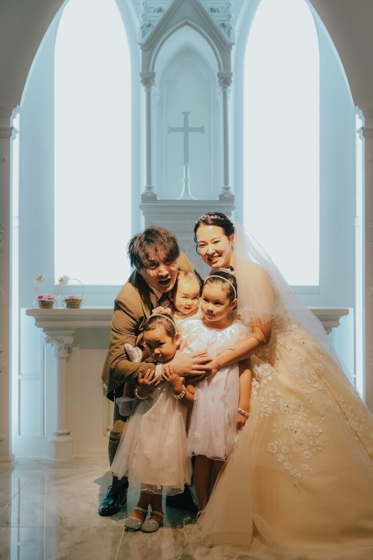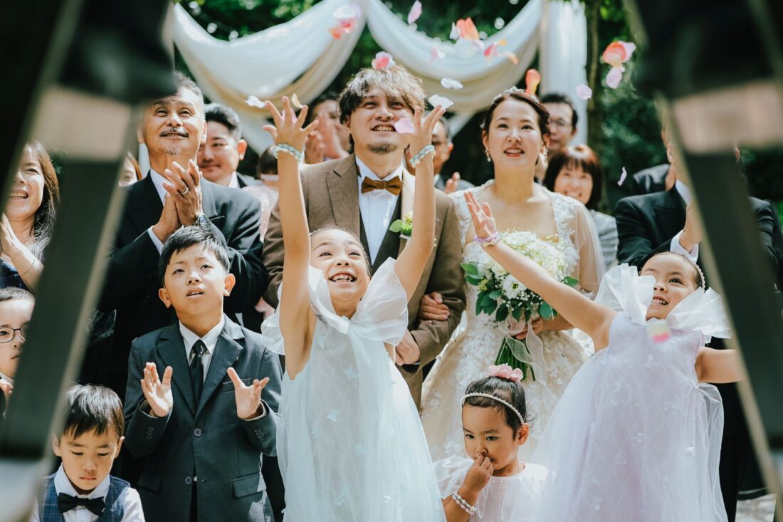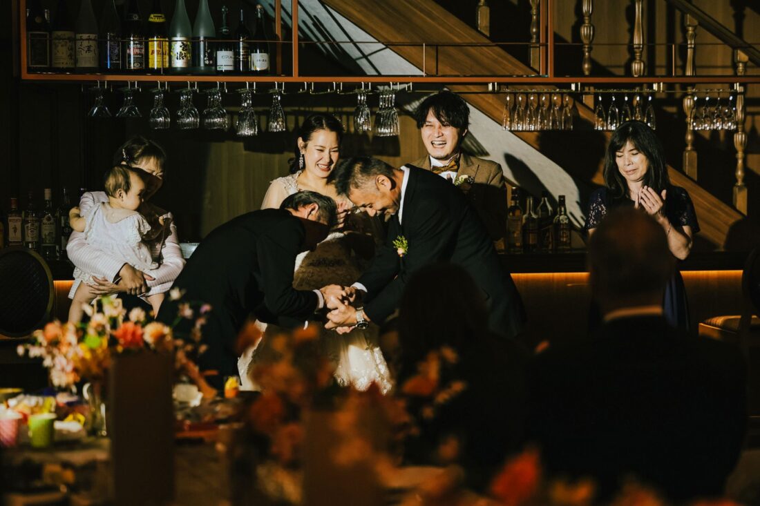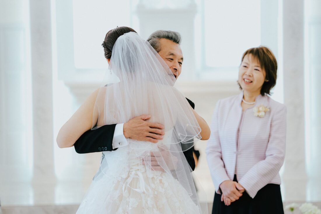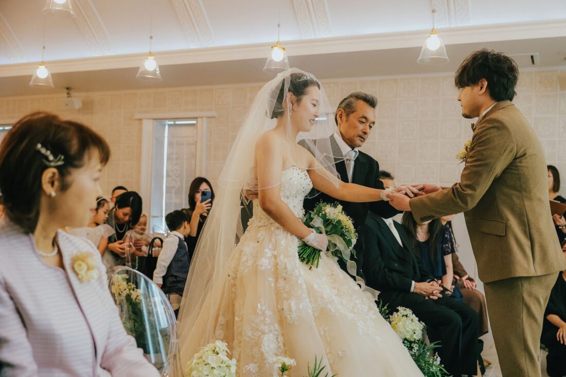 感謝を込めて。親族だけのアットホームウェディング 披露宴会場人前式チャペルドレスガーデン少人数 ウェディングドレスデザートビュッフェドレスアットホームリングガールパパママ婚 感謝を込めて。親族だけのアットホームウェディング 両親に花嫁姿を見せたいという気持ちはずっと心の中にありました。 形式ばらず、気取らず、家族や親族だけでゆっくり過ごせる時間があればいいなと、アットホームなパーティーを開くことにしました。 美味しい料理とあたたかい会話、そしてたくさんの笑顔に包まれた時間は、私たちにとって一生の宝物になりました。