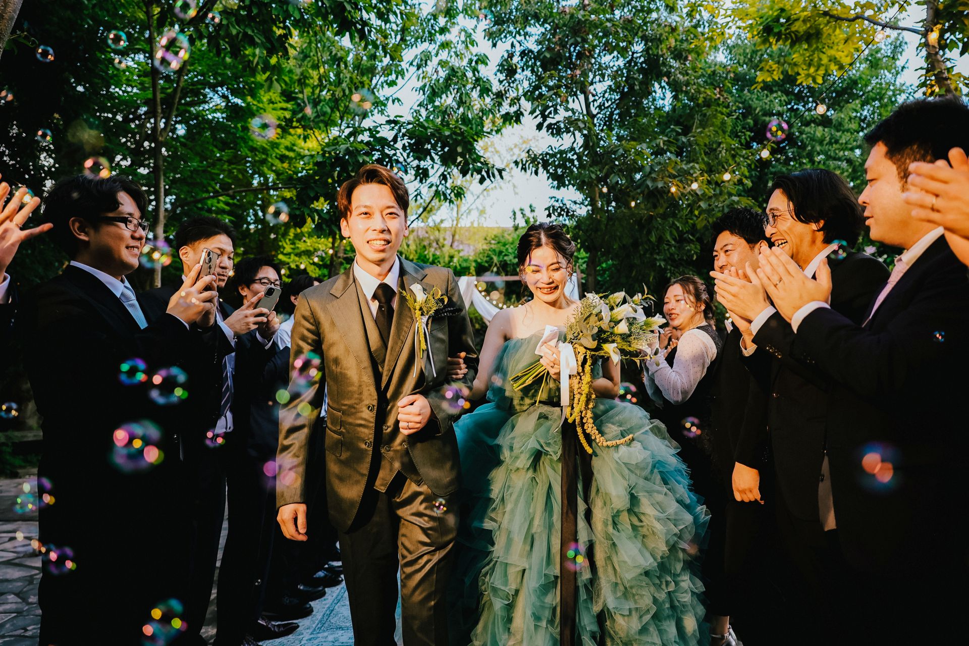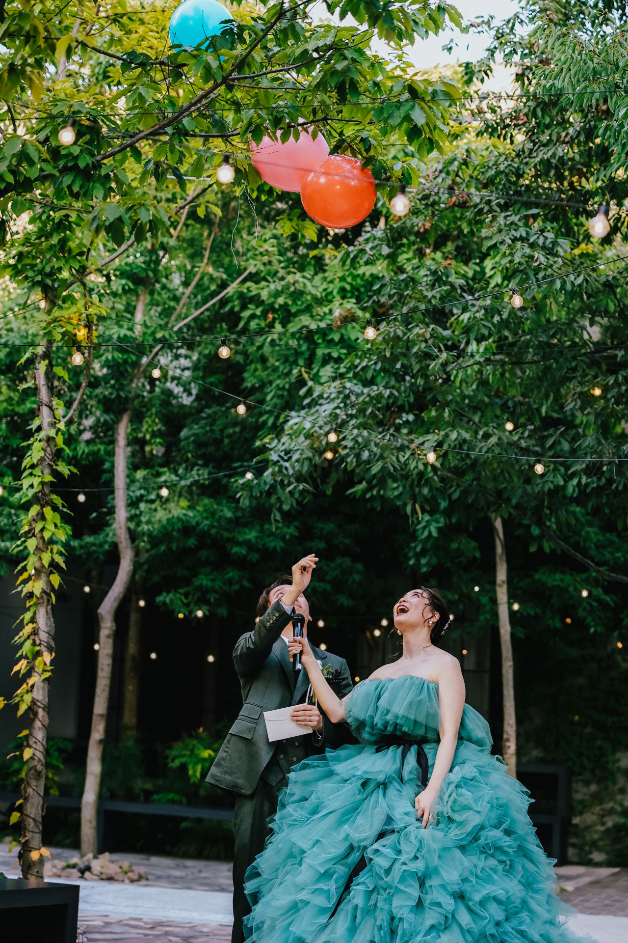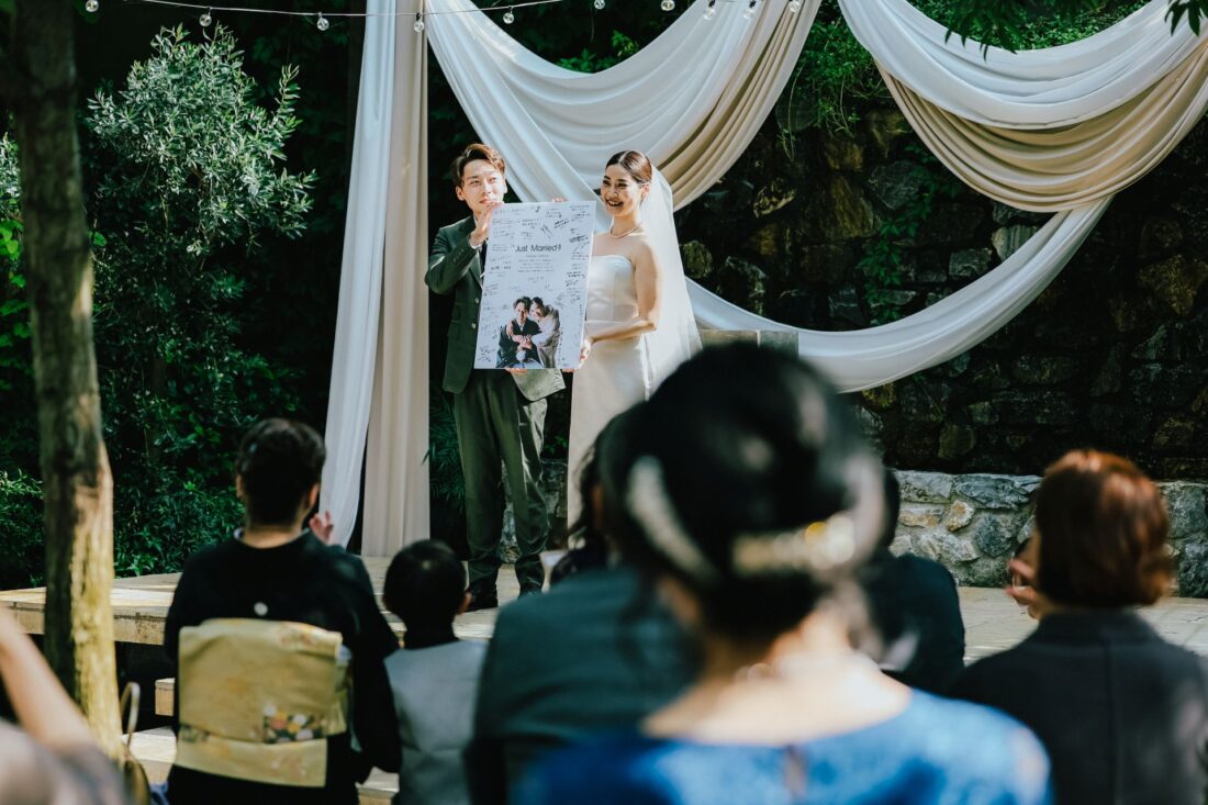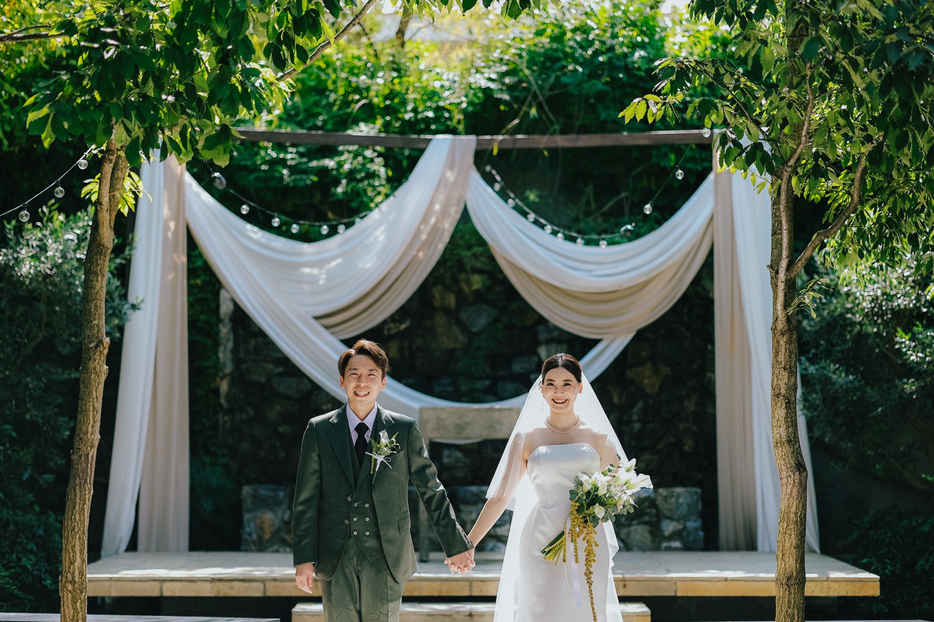 「木漏れ日の中で、大好きな君と 披露宴会場人前式チャペルドレスガーデン ウェディングドレスデザートビュッフェドレスアットホームリングボーイカラードレス 「木漏れ日の中で、大好きな君と 今日という日を、木漏れ日のように温かく優しく照らしてくれる皆さんと過ごせることが何より幸せです。これまで支えてくれたすべての方へ、心からのありがとうを。どうか今日は、笑って、楽しんで、私たちと一緒にこの特別な一日を過ごしてください。