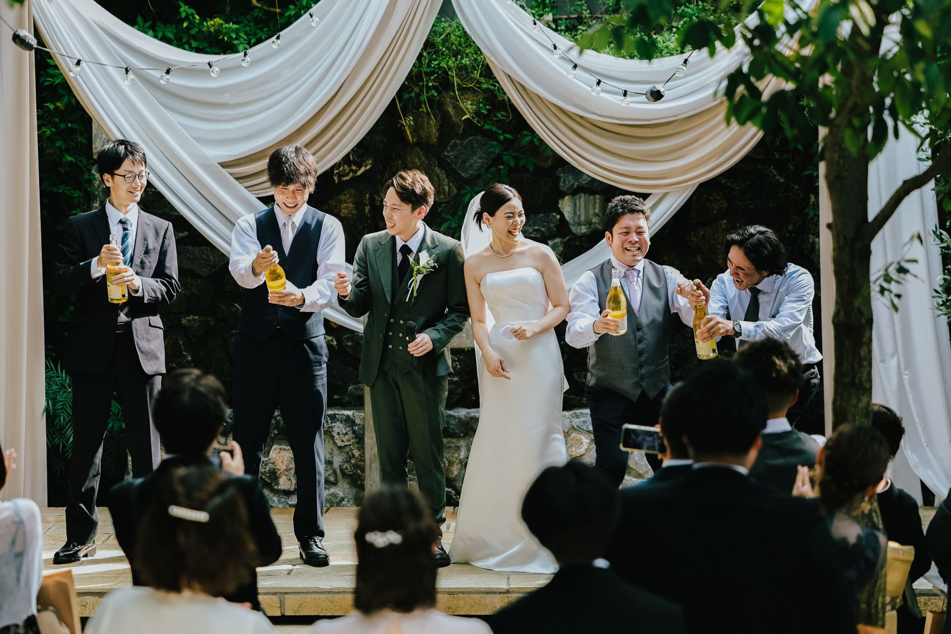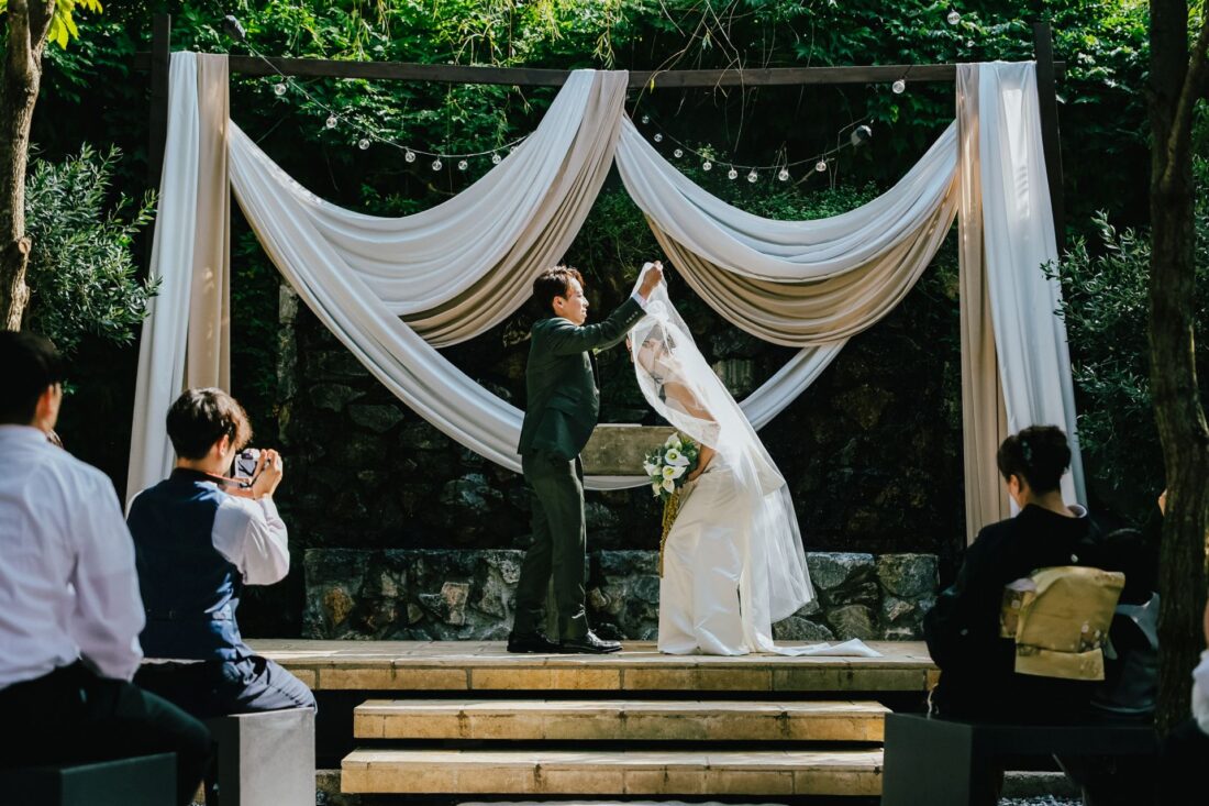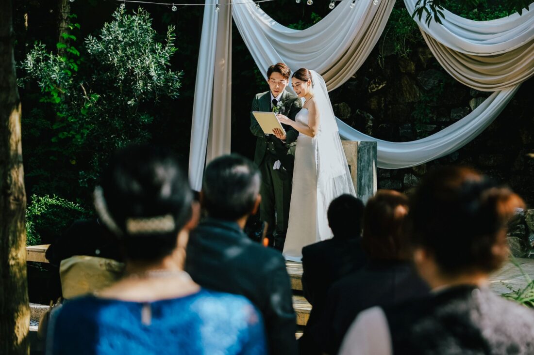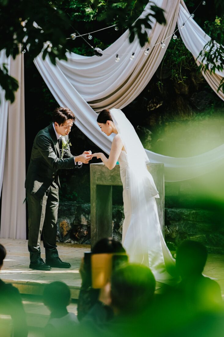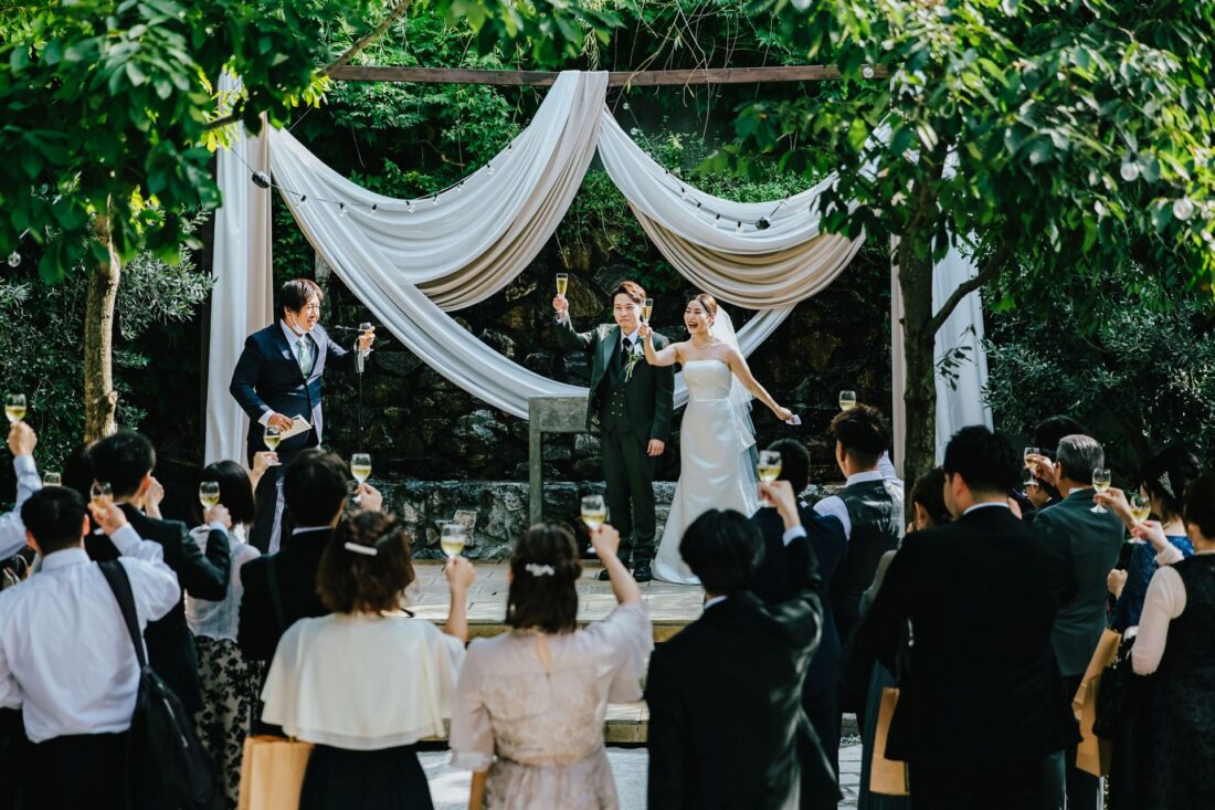 「木漏れ日の中で、大好きな君と 披露宴会場人前式チャペルドレスガーデン ウェディングドレスデザートビュッフェドレスアットホームリングボーイカラードレス 「木漏れ日の中で、大好きな君と 今日という日を、木漏れ日のように温かく優しく照らしてくれる皆さんと過ごせることが何より幸せです。これまで支えてくれたすべての方へ、心からのありがとうを。どうか今日は、笑って、楽しんで、私たちと一緒にこの特別な一日を過ごしてください。