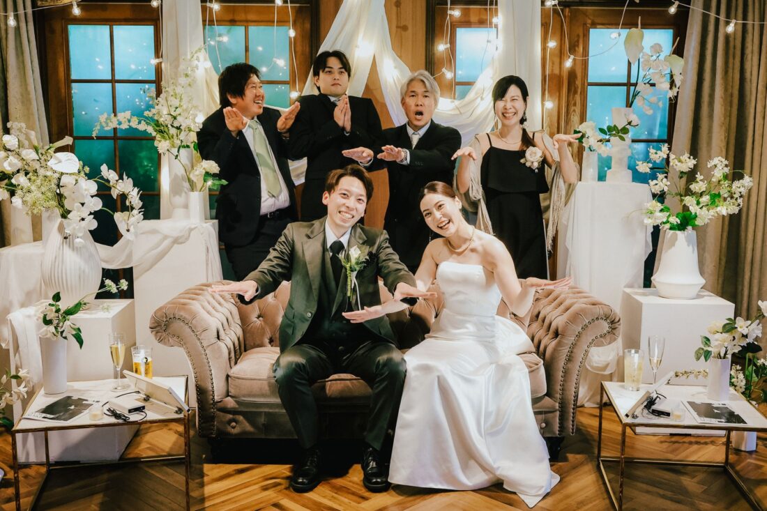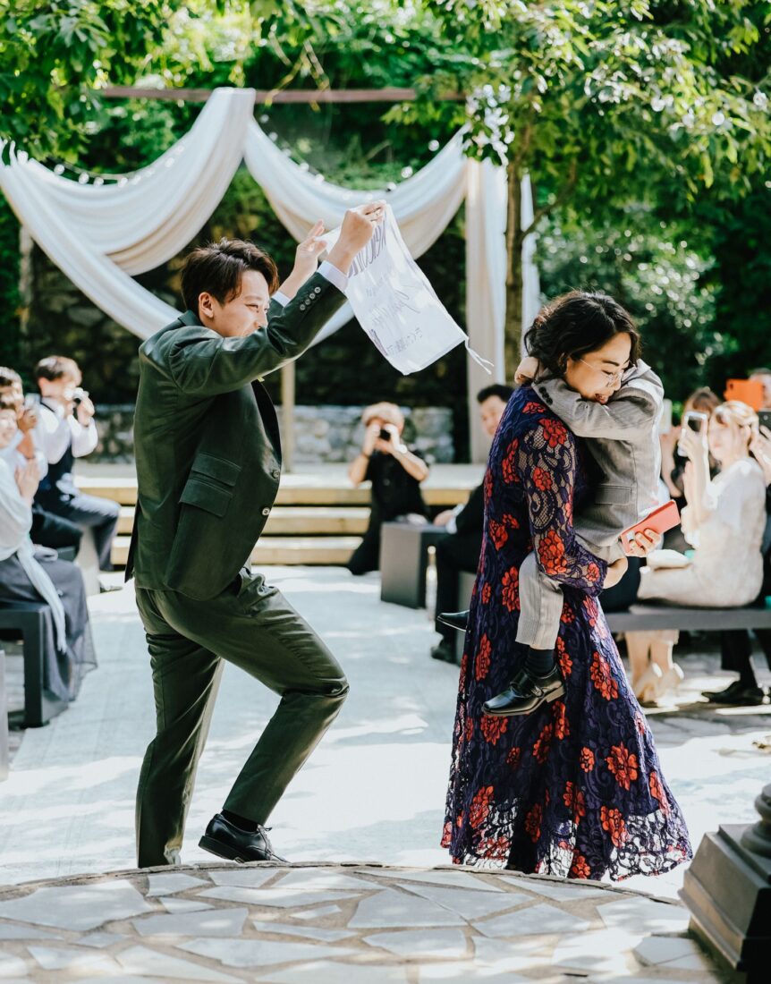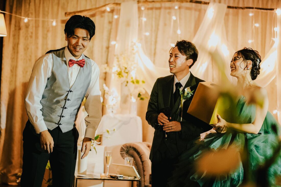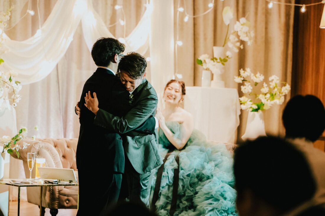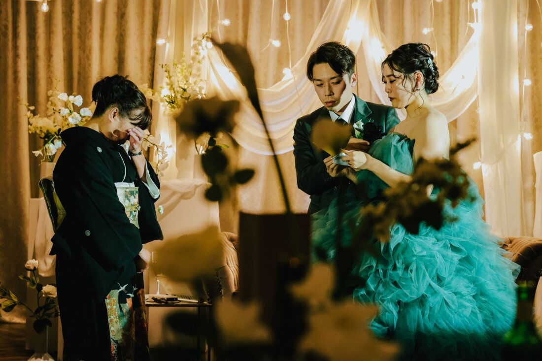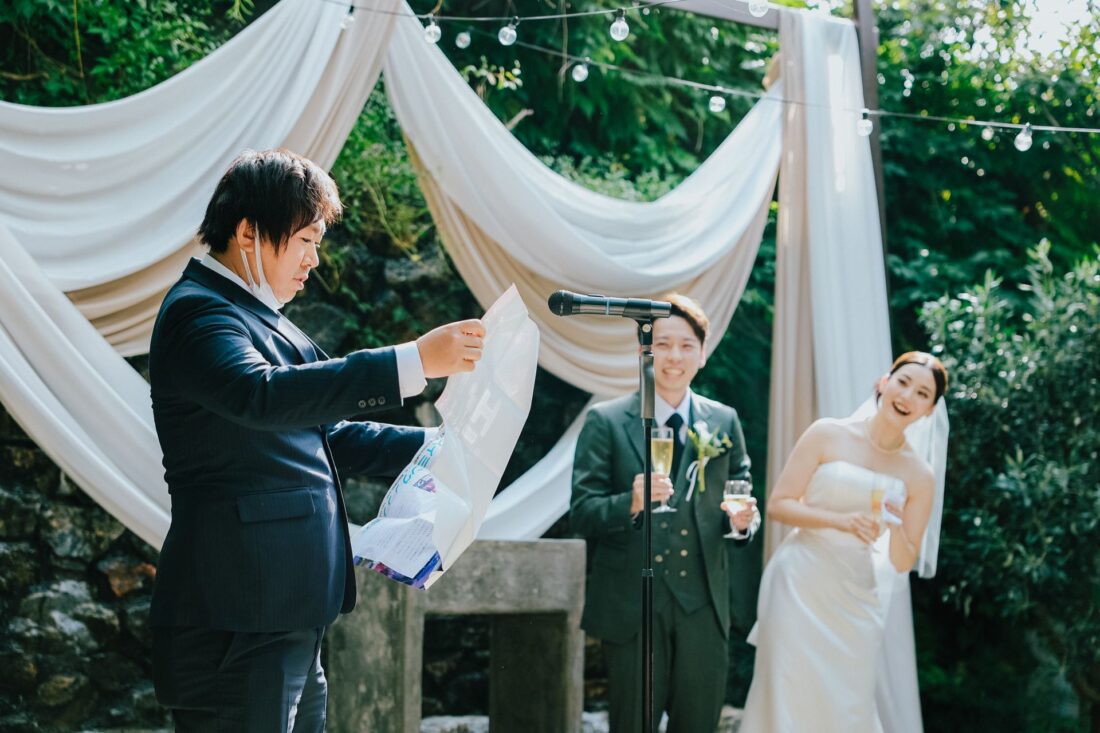 「木漏れ日の中で、大好きな君と 披露宴会場人前式チャペルドレスガーデン ウェディングドレスデザートビュッフェドレスアットホームリングボーイカラードレス 「木漏れ日の中で、大好きな君と 今日という日を、木漏れ日のように温かく優しく照らしてくれる皆さんと過ごせることが何より幸せです。これまで支えてくれたすべての方へ、心からのありがとうを。どうか今日は、笑って、楽しんで、私たちと一緒にこの特別な一日を過ごしてください。