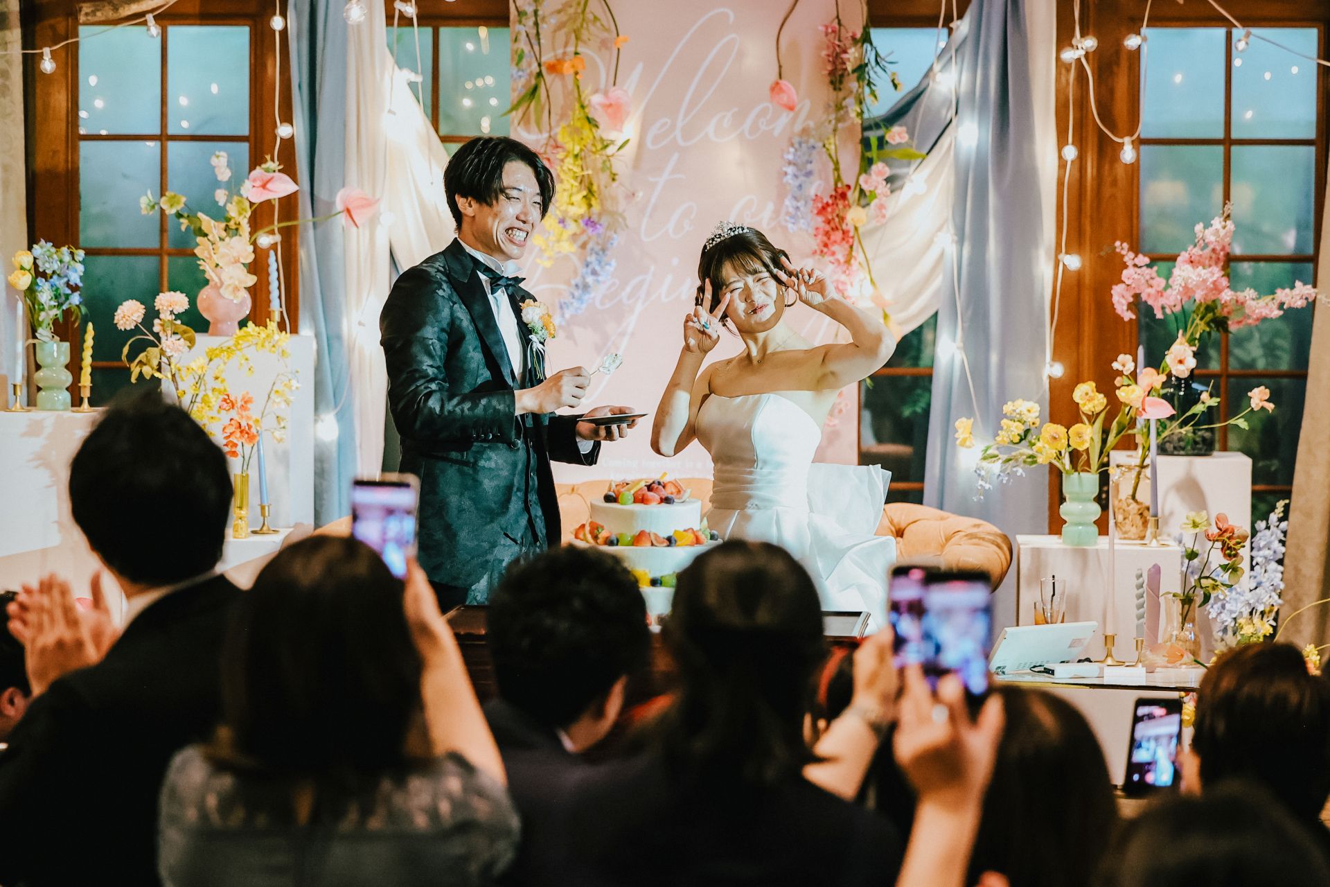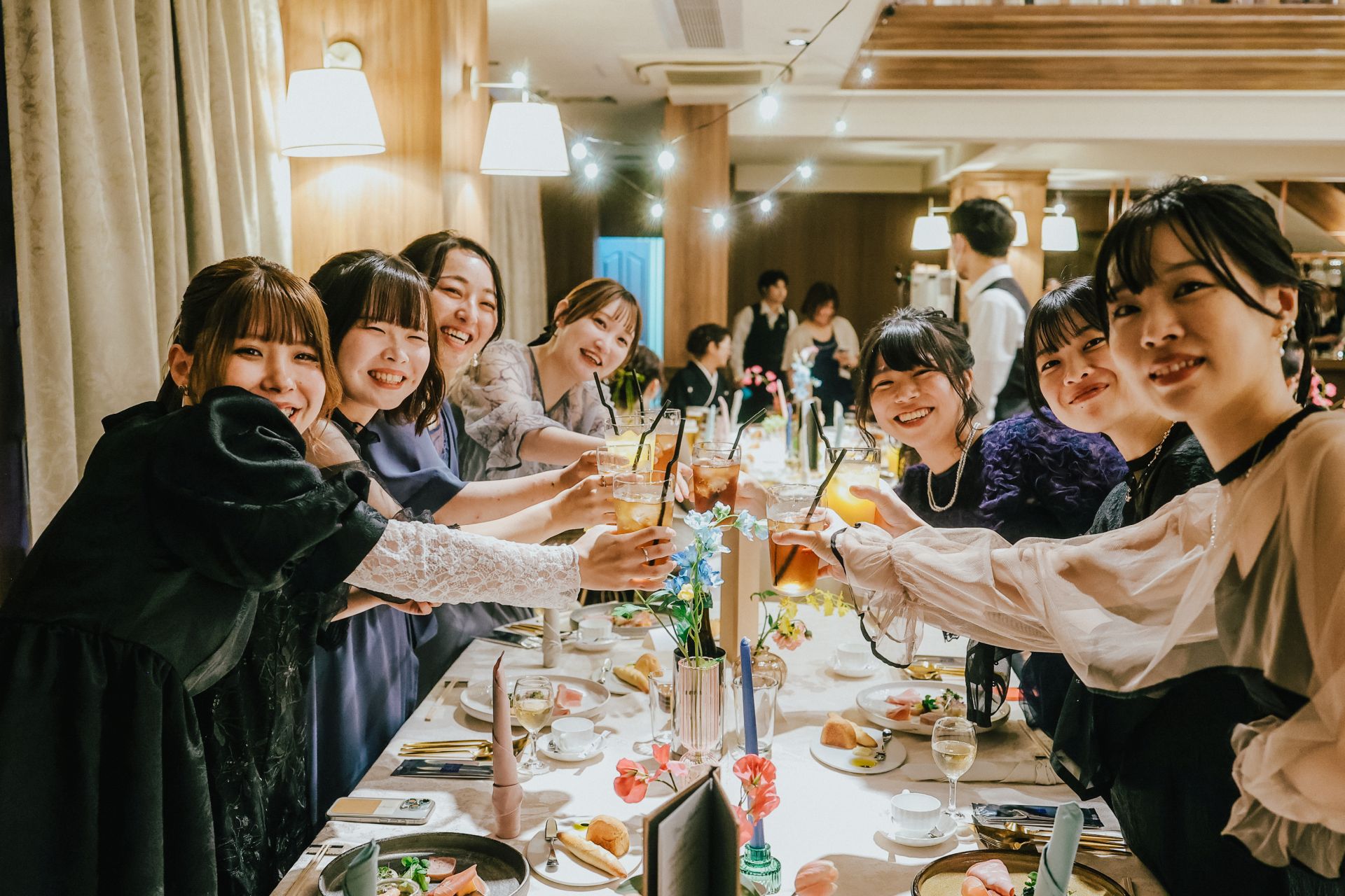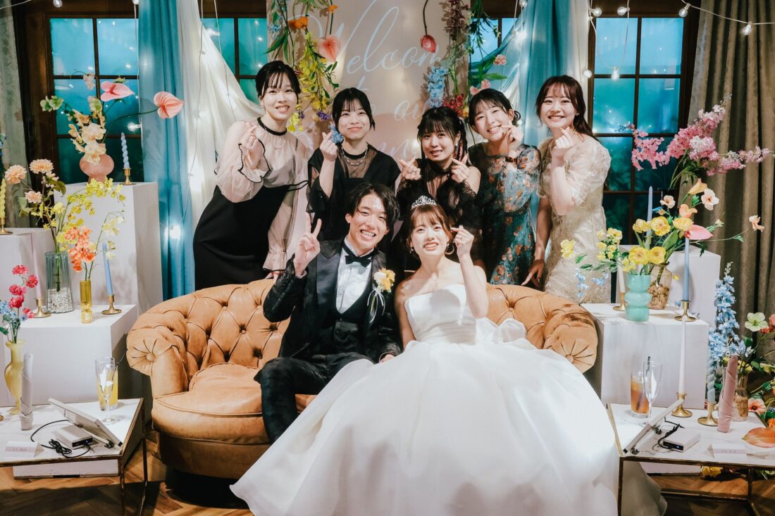 みんなで楽しい結婚式 披露宴会場人前式ドレスガーデン ウェディングドレスデザートビュッフェドレス大人数リングガールカラードレス みんなで楽しい結婚式 みんなに会いたい気持ちが溢れて、ついに結婚式という形で叶いました💍✨ ウェディングドレス姿、見てもらえて本当に幸せ!盛大に祝ってくれてありがとう💐 みんなで一緒に楽しい時間を過ごして、本当に本当に、最高の一日になりました♡ みんなで盛り上がったあの瞬間、ずっと忘れないよ!