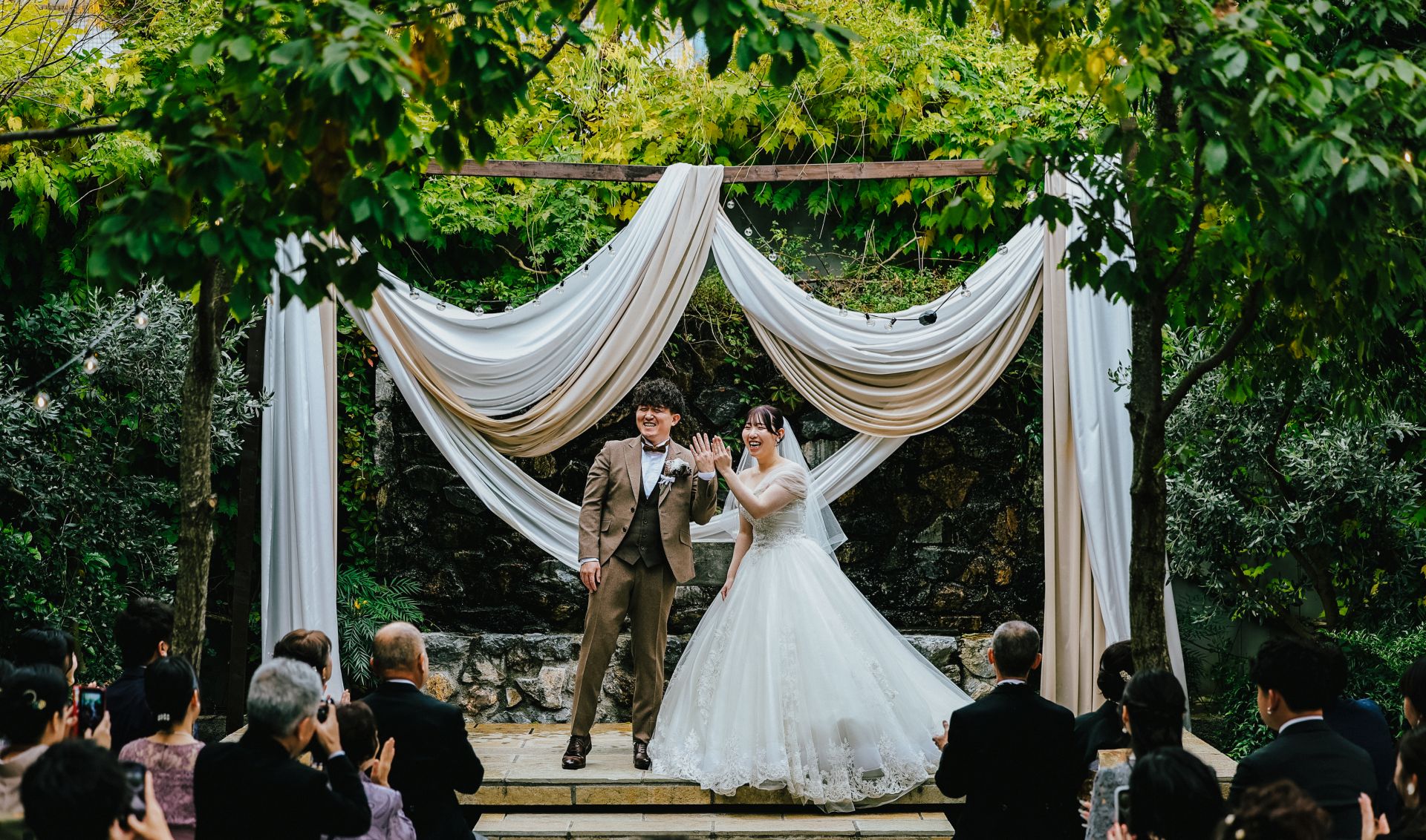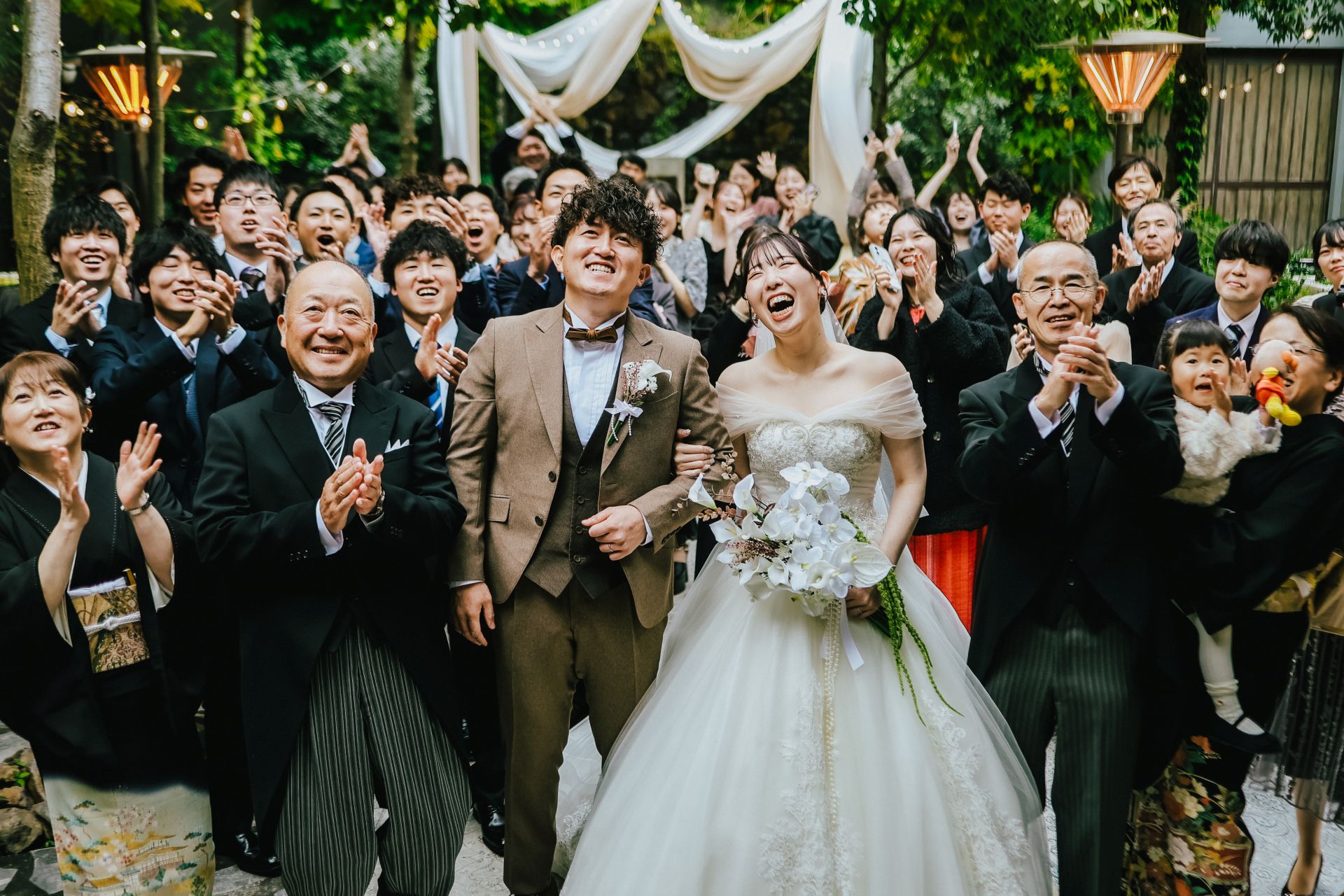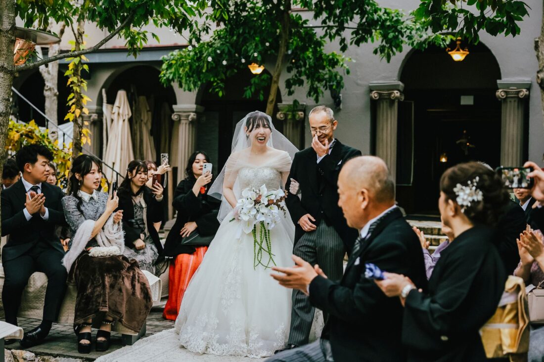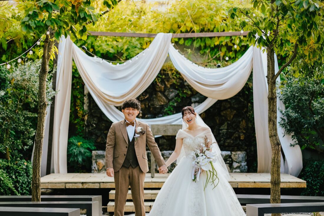「Autumn Garden Wedding – 夢が叶った日、笑顔に包まれて」 披露宴会場人前式チャペルドレスガーデン ウェディングドレスデザートビュッフェドレスリングガールカラードレスナイトガーデン 「Autumn Garden Wedding – 夢が叶った日、笑顔に包まれて」 木々が秋色に染まる季節、夢だった結婚式を挙げました。家族や友人に花嫁姿を見てもらえて本当に幸せ。心から笑い合える時間があふれる、最高のPARTYになりました。