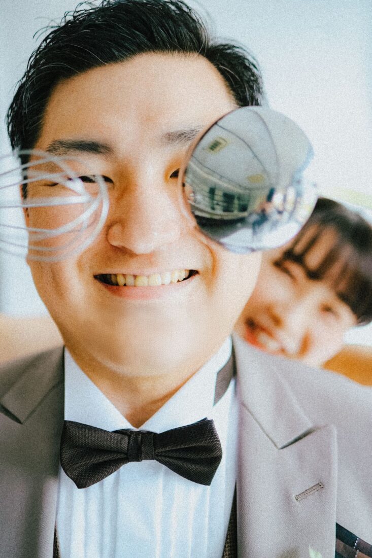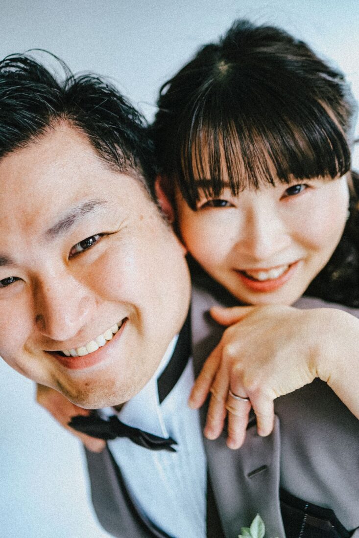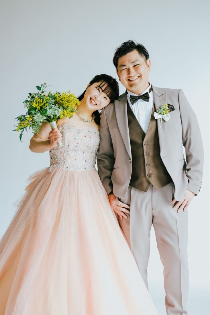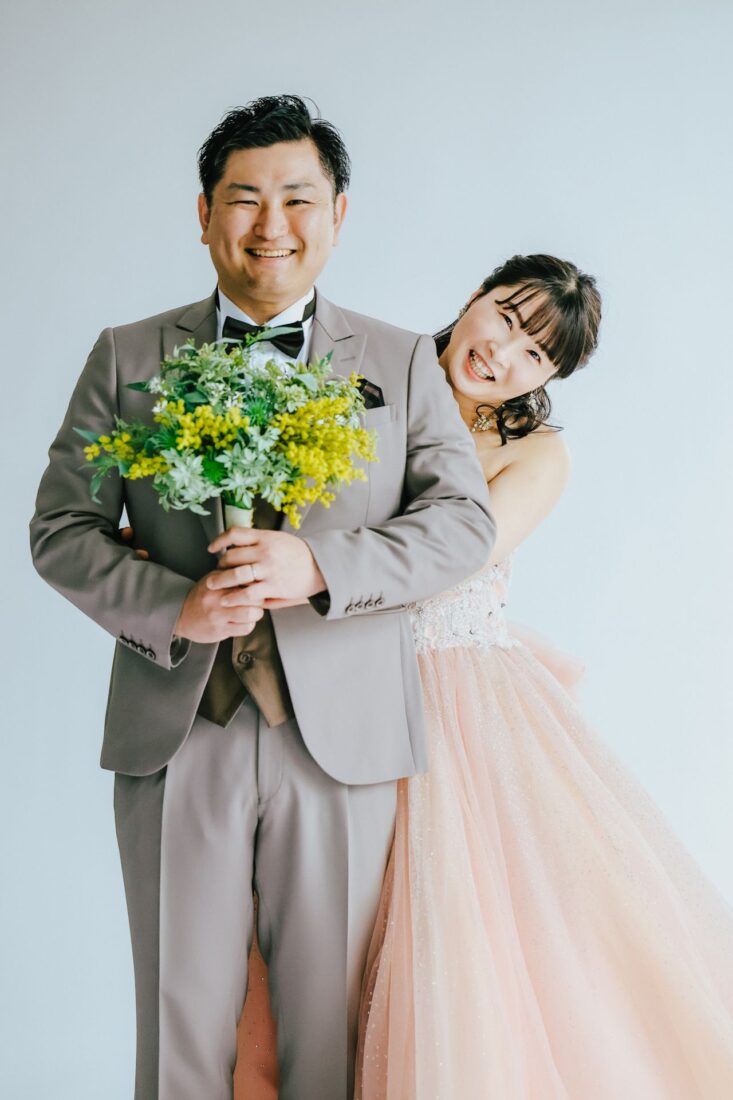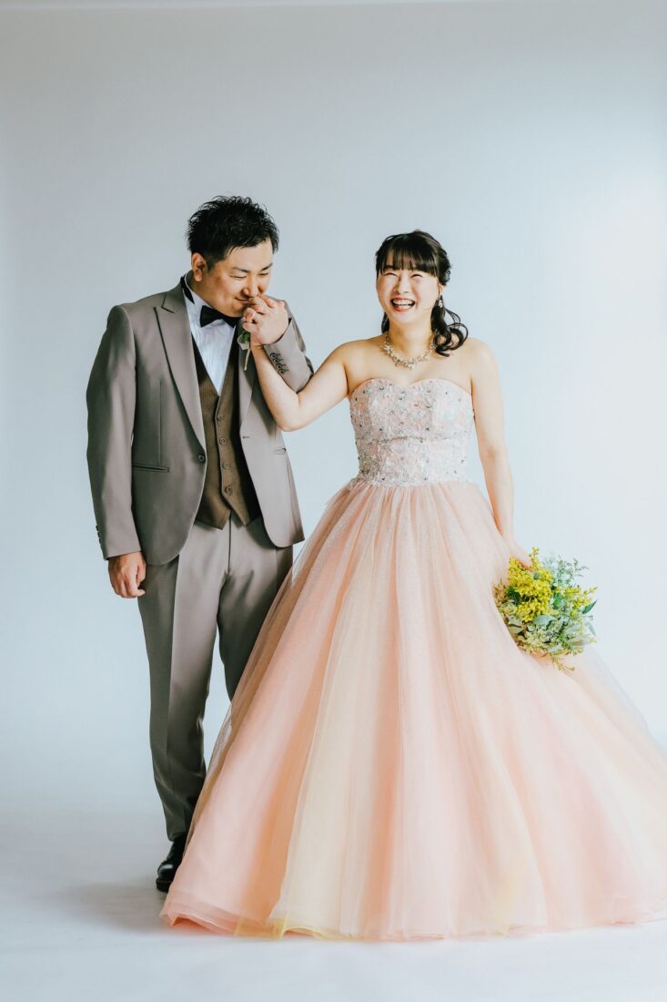 「笑顔ってみんなを幸せにさせるマジック」 前撮りフォトウェディング 前撮りカラードレス 「笑顔ってみんなを幸せにさせるマジック」 カメラを向けると自然と出てくる、やわらかないつもの笑顔。今回はおふたりのお気に入りの愛着のあるアイテムも登場し、より“ふたりらしい”撮影に。笑顔ってみんなを幸せにさせるマジックだとあらためて感じました。