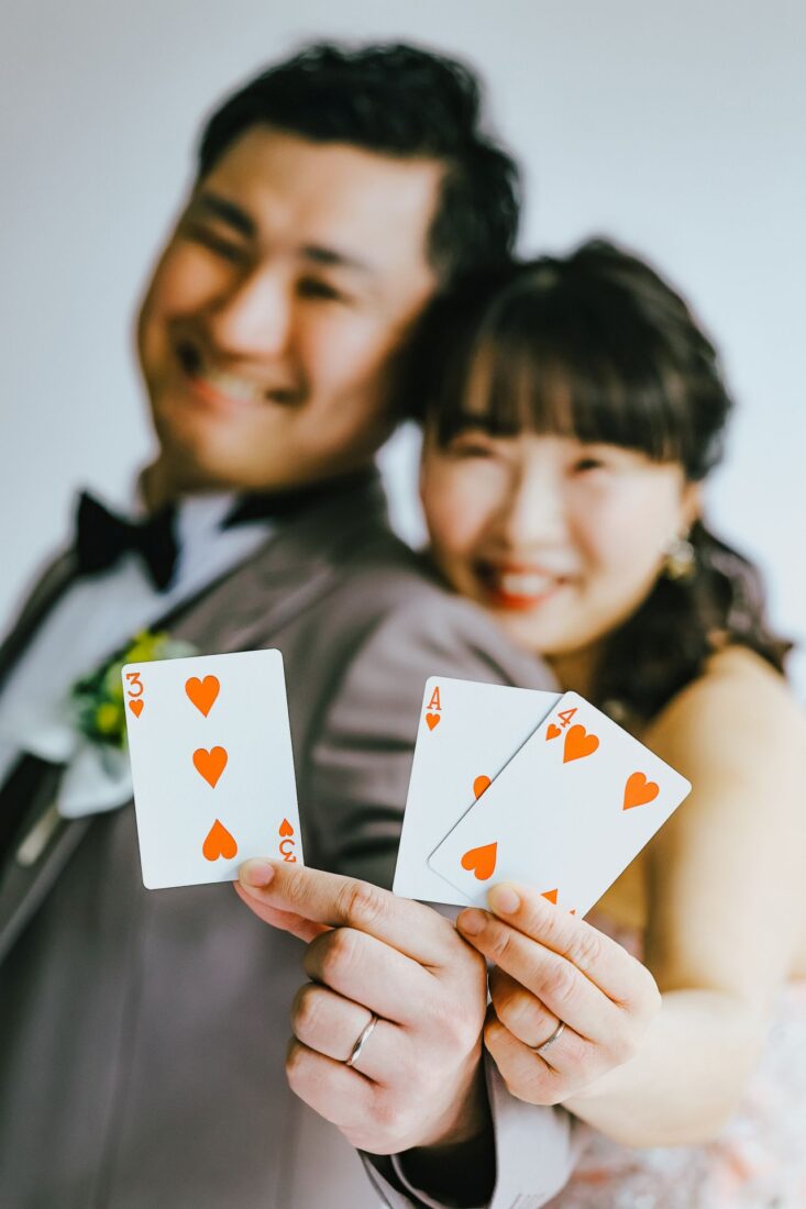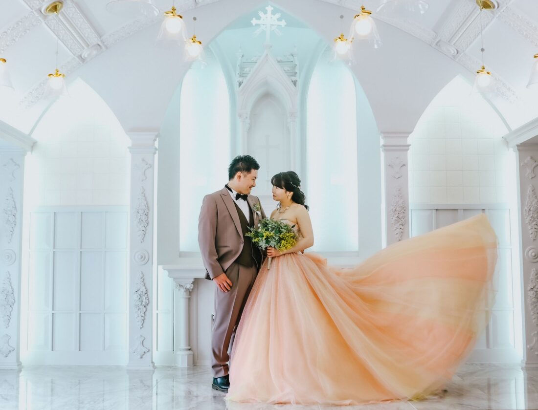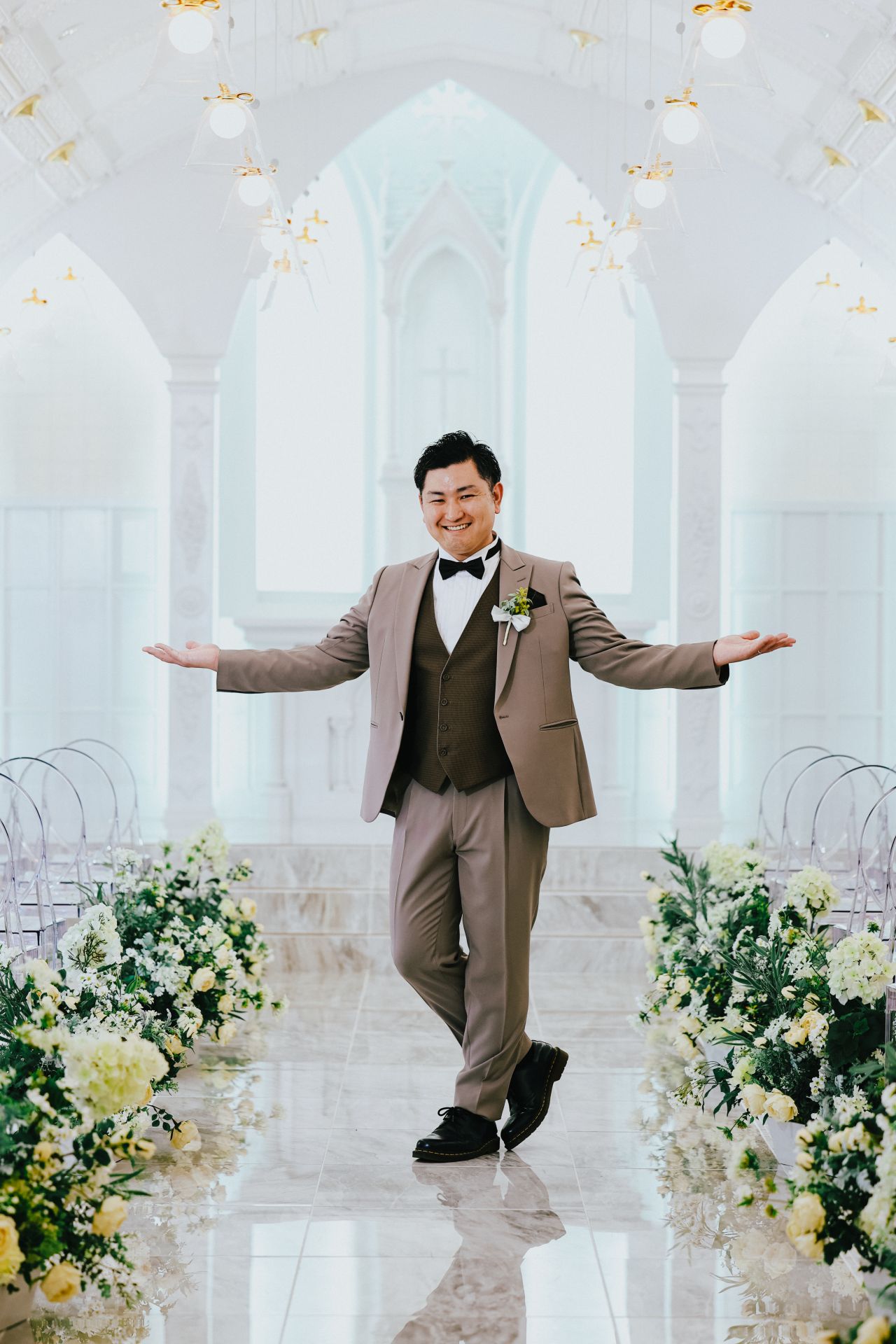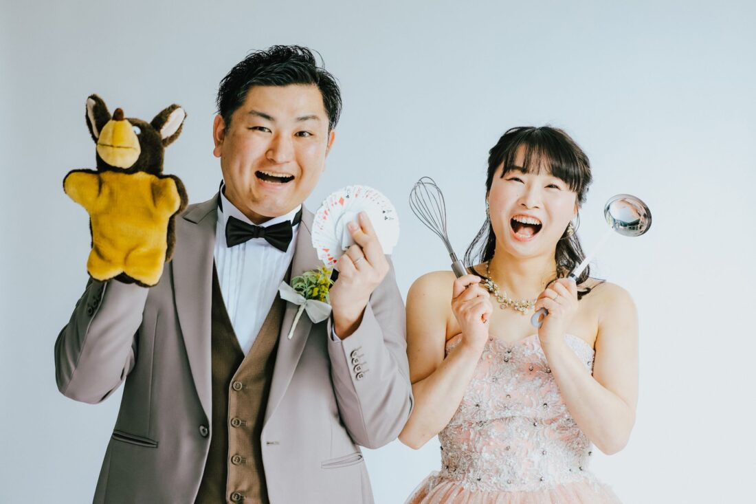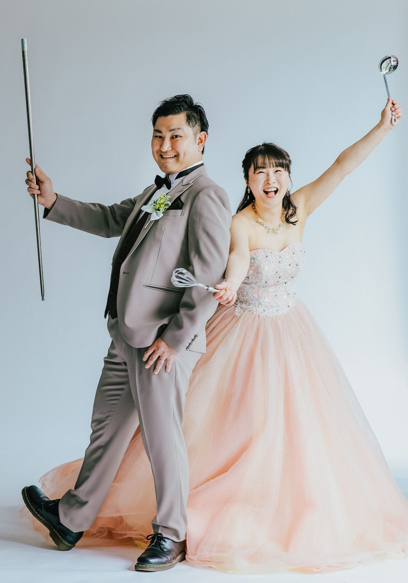 「笑顔ってみんなを幸せにさせるマジック」 前撮りフォトウェディング 前撮りカラードレス 「笑顔ってみんなを幸せにさせるマジック」 カメラを向けると自然と出てくる、やわらかないつもの笑顔。今回はおふたりのお気に入りの愛着のあるアイテムも登場し、より“ふたりらしい”撮影に。笑顔ってみんなを幸せにさせるマジックだとあらためて感じました。