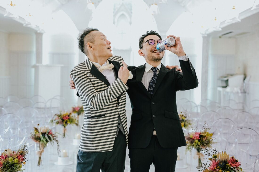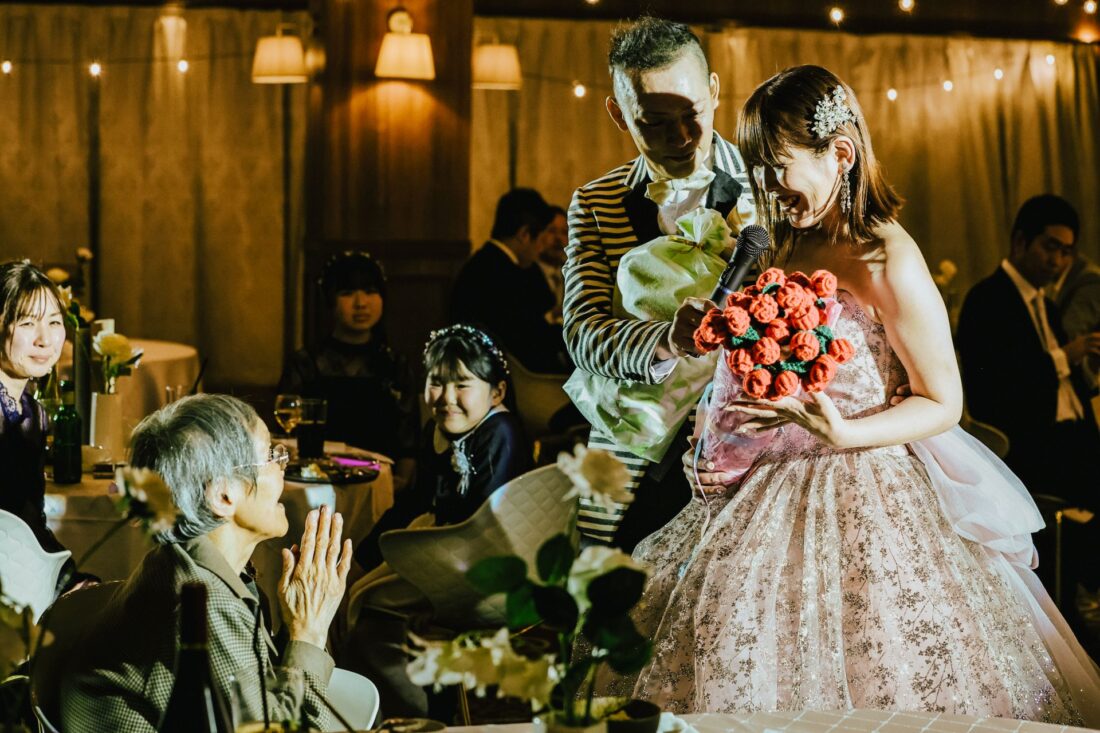 「アットホームなのにちょっと豪華に。笑いと涙のPARTY WEDDING」 披露宴会場人前式チャペルドレスガーデンフォトウェディング ウェディングドレスデザートビュッフェドレスアットホームペットと一緒パパママ婚カラードレス 「アットホームなのにちょっと豪華に。笑いと涙のPARTY WEDDING」 妻にドレスを着せてあげたい──そんな小さな願いから始まった結婚式。アットホームで、ちょっと豪華な飲み会みたいなPARTY。笑いあり、涙あり、みんなの心に思い出として残る一日になりました。