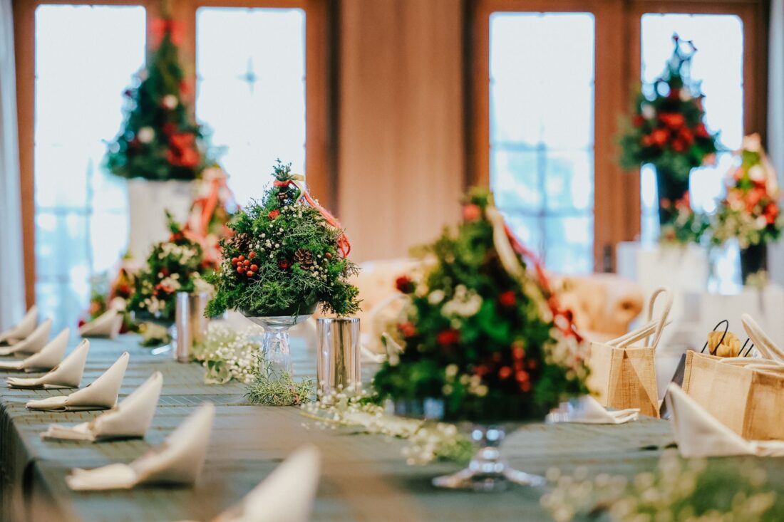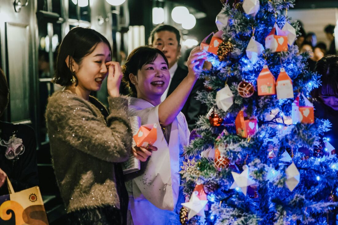 会場に一歩足を踏み入れると、可愛らしいクリスマスツリーがいっぱいで、ゲストの皆さまの笑顔がより一層輝いて見えたのがとても印象的です。