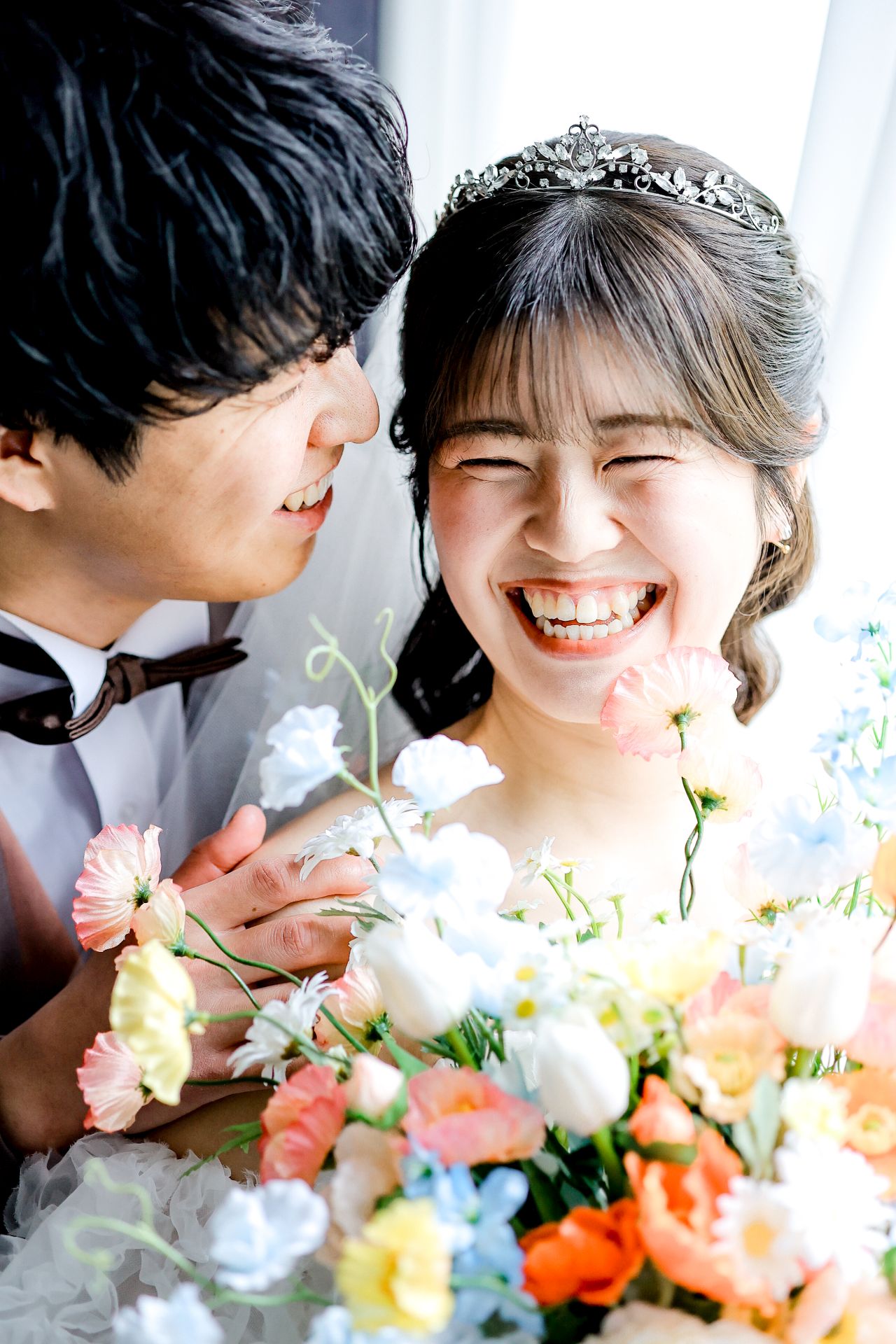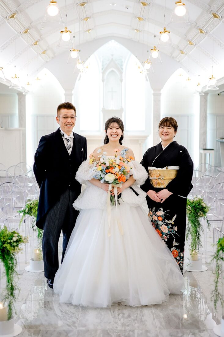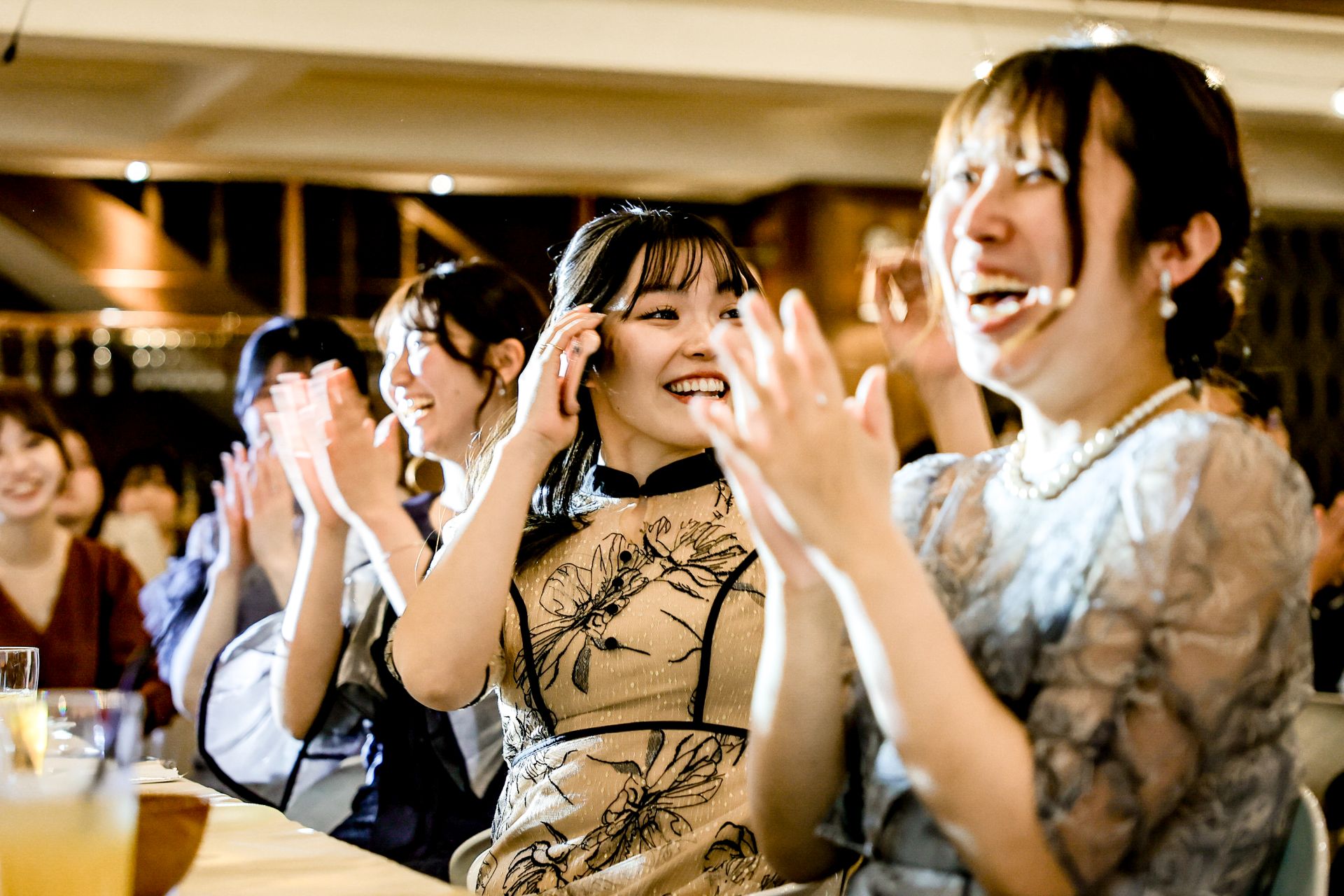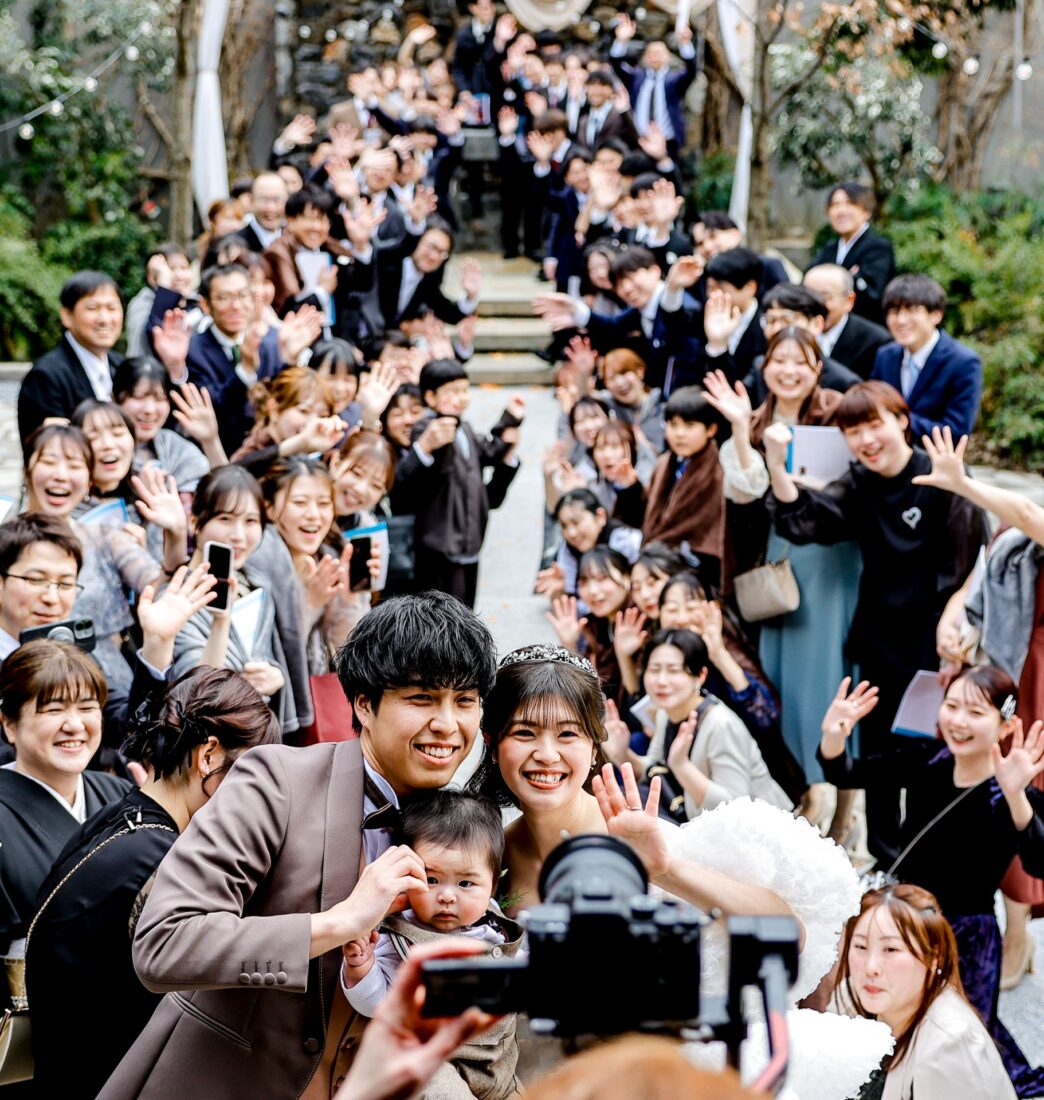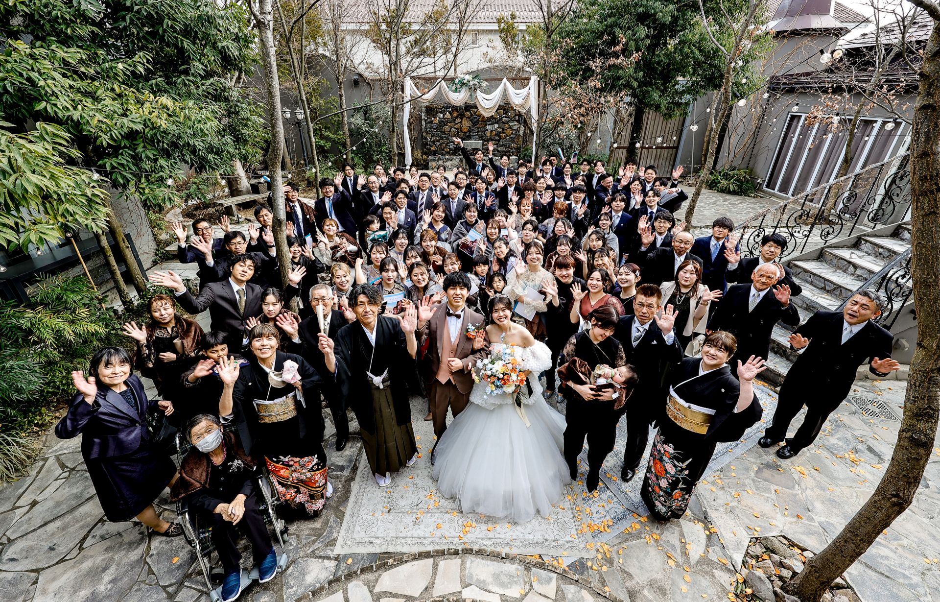「写真に残したいのは、みんなの笑顔とあたたかな時間」 披露宴会場人前式チャペルドレスガーデンフォトウェディング ウェディングドレスデザートビュッフェドレスアットホーム大人数リングボーイパパママ婚カラードレス 「写真に残したいのは、みんなの笑顔とあたたかな時間」 結婚式の思い出をたくさん写真に残したくて、ゲストとの距離を大切にしたパーティーにしました。 賑やかで笑顔が絶えない空間の中で、大好きな人たちに囲まれて過ごす時間はまさに宝物。 一生の思い出として、心にも写真にも残る最高の一日になりました。