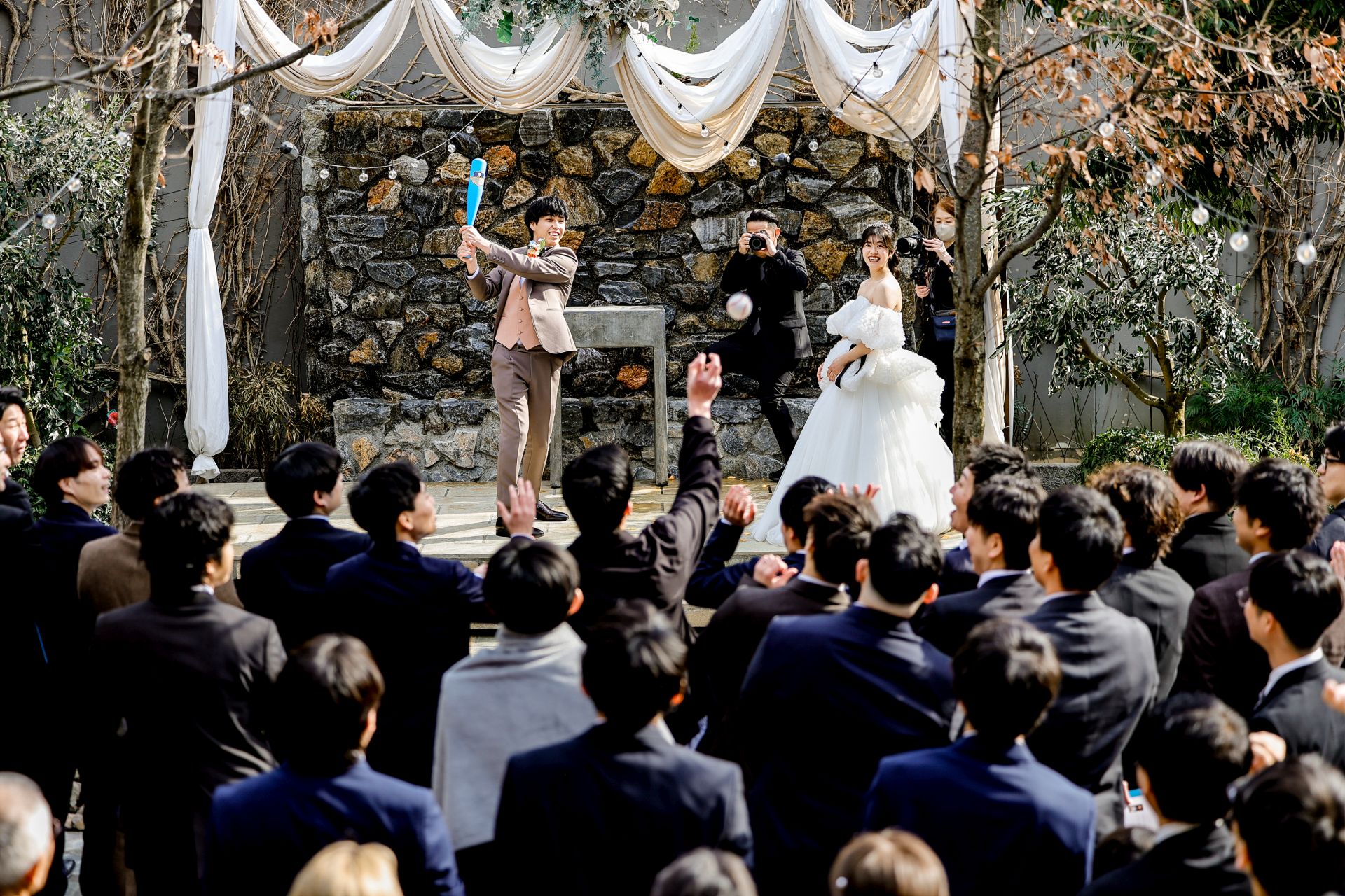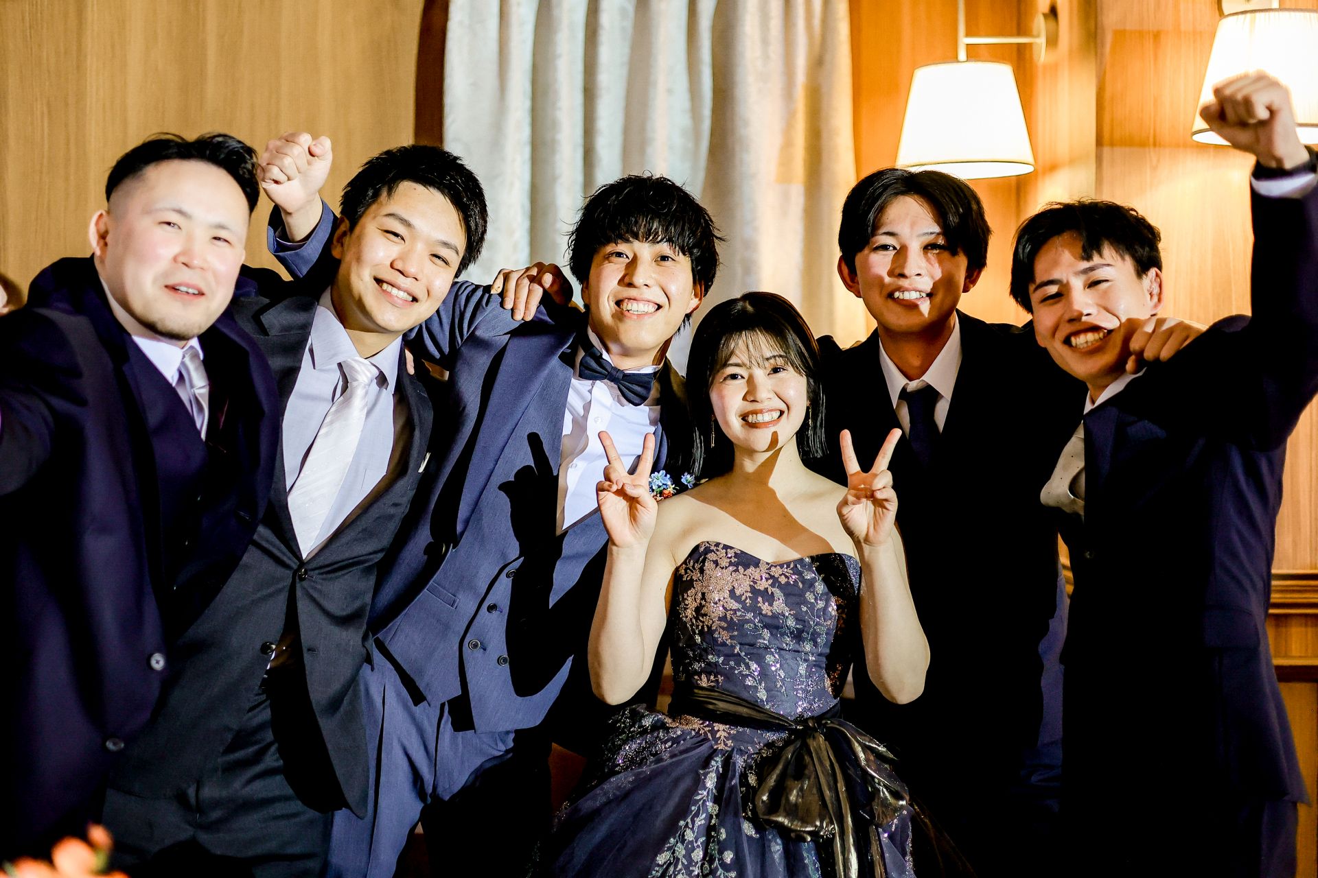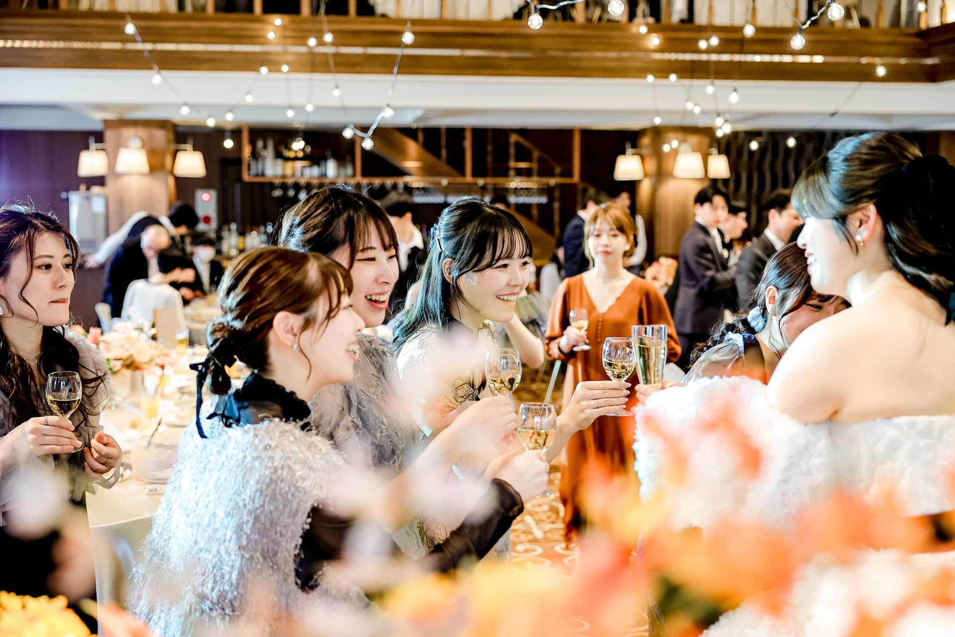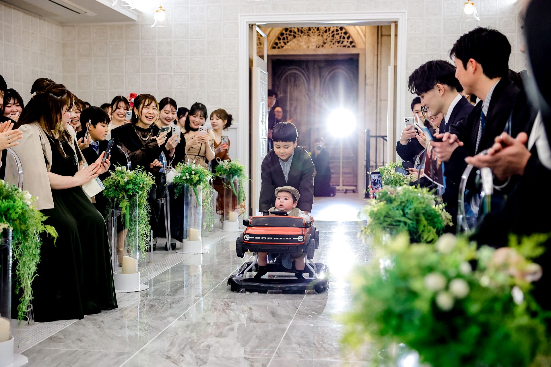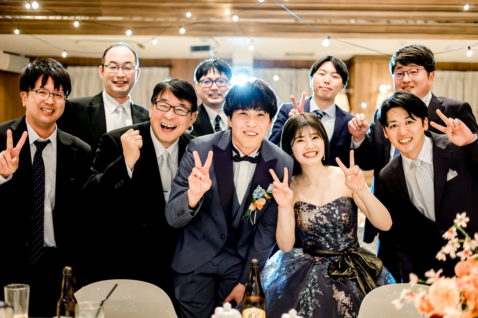 「写真に残したいのは、みんなの笑顔とあたたかな時間」 披露宴会場人前式チャペルドレスガーデンフォトウェディング ウェディングドレスデザートビュッフェドレスアットホーム大人数リングボーイパパママ婚カラードレス 「写真に残したいのは、みんなの笑顔とあたたかな時間」 結婚式の思い出をたくさん写真に残したくて、ゲストとの距離を大切にしたパーティーにしました。 賑やかで笑顔が絶えない空間の中で、大好きな人たちに囲まれて過ごす時間はまさに宝物。 一生の思い出として、心にも写真にも残る最高の一日になりました。