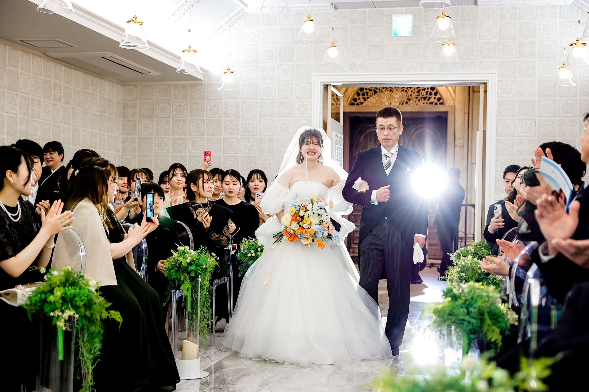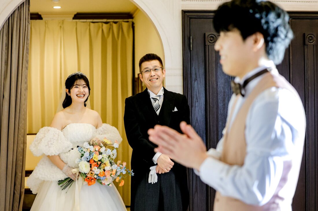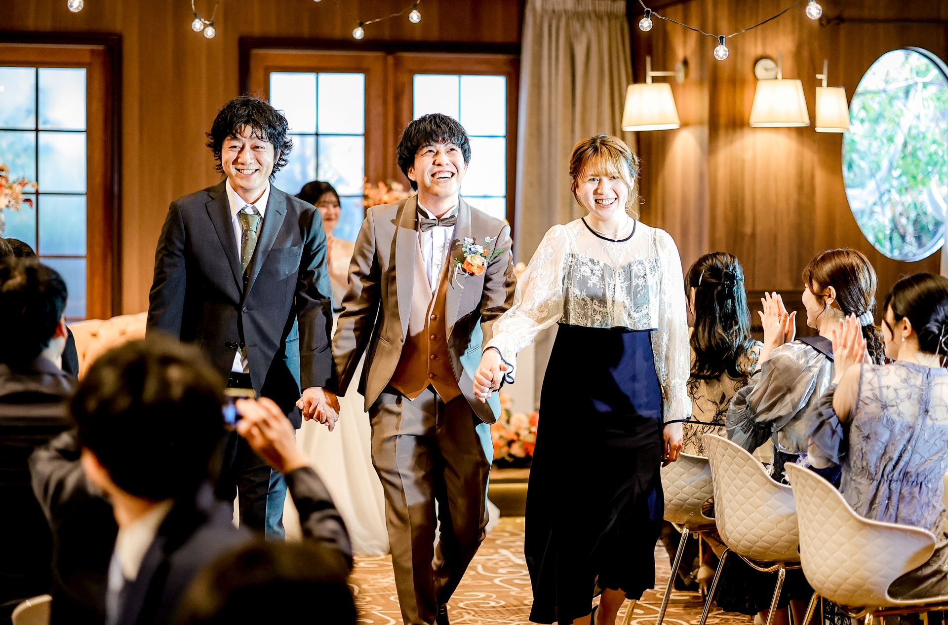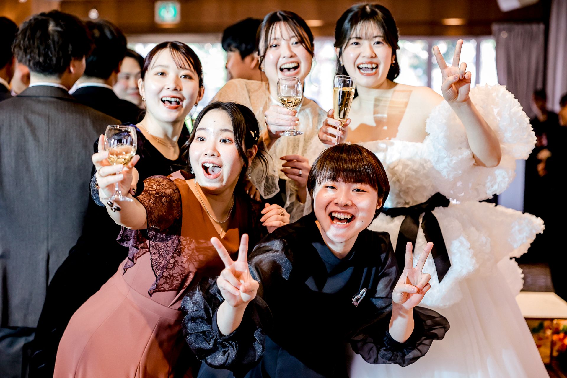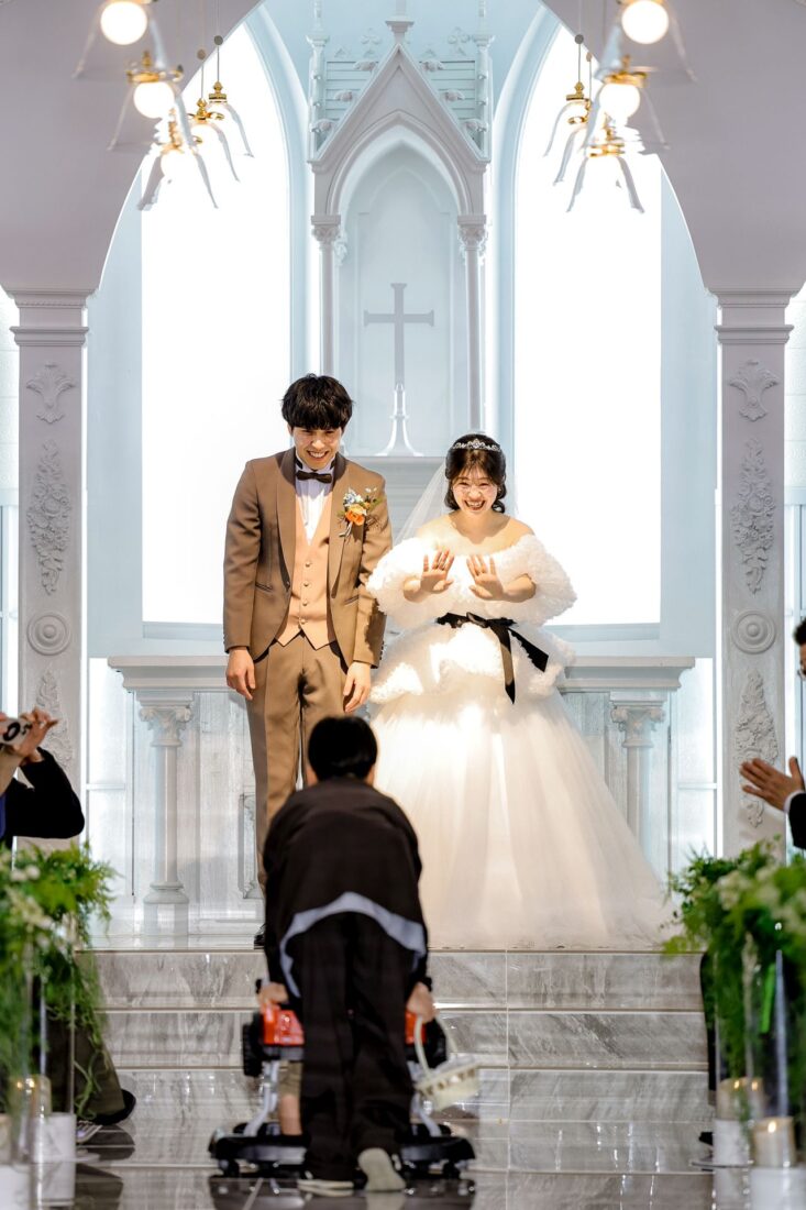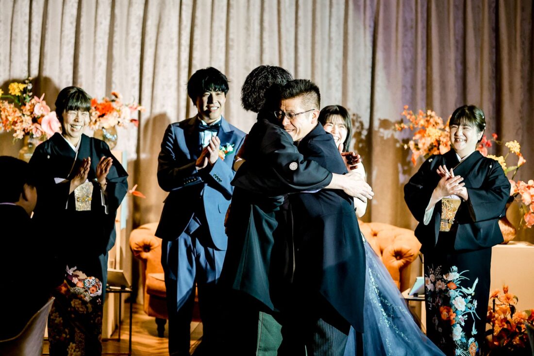 「写真に残したいのは、みんなの笑顔とあたたかな時間」 披露宴会場人前式チャペルドレスガーデンフォトウェディング ウェディングドレスデザートビュッフェドレスアットホーム大人数リングボーイパパママ婚カラードレス 「写真に残したいのは、みんなの笑顔とあたたかな時間」 結婚式の思い出をたくさん写真に残したくて、ゲストとの距離を大切にしたパーティーにしました。 賑やかで笑顔が絶えない空間の中で、大好きな人たちに囲まれて過ごす時間はまさに宝物。 一生の思い出として、心にも写真にも残る最高の一日になりました。