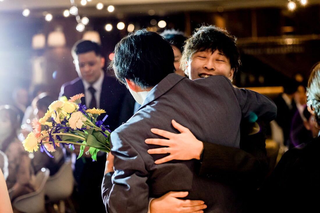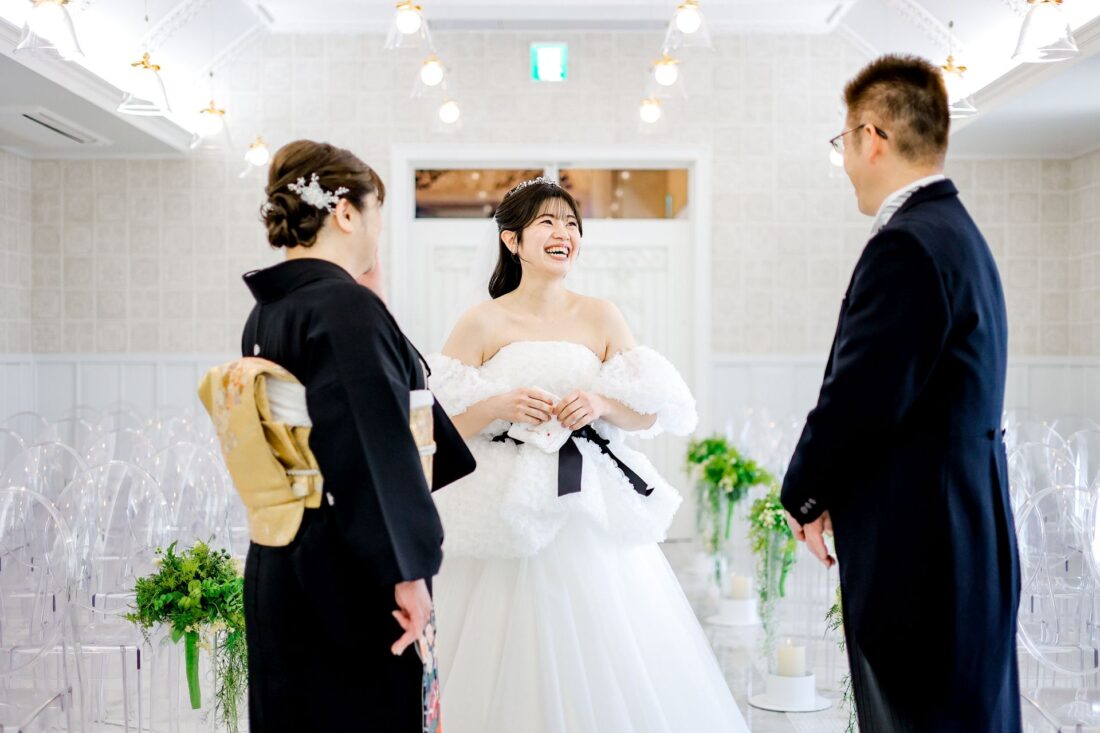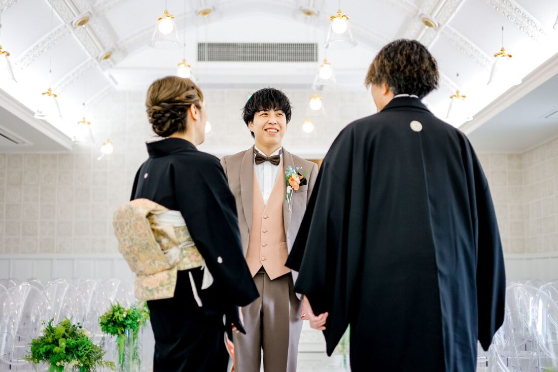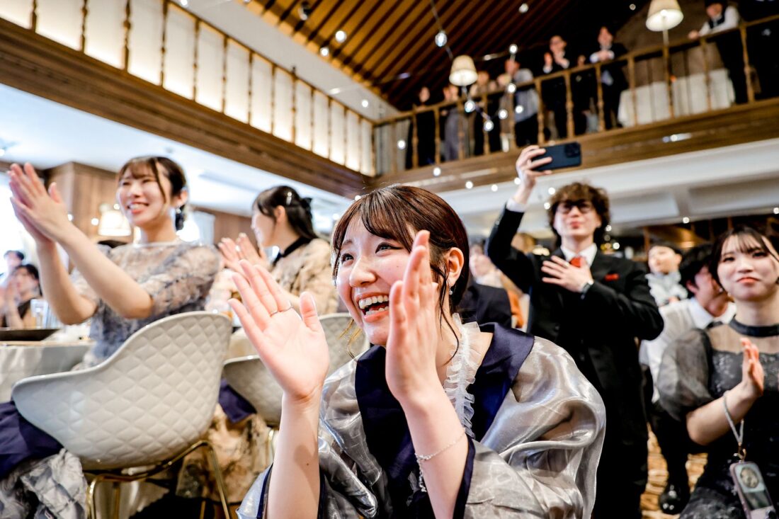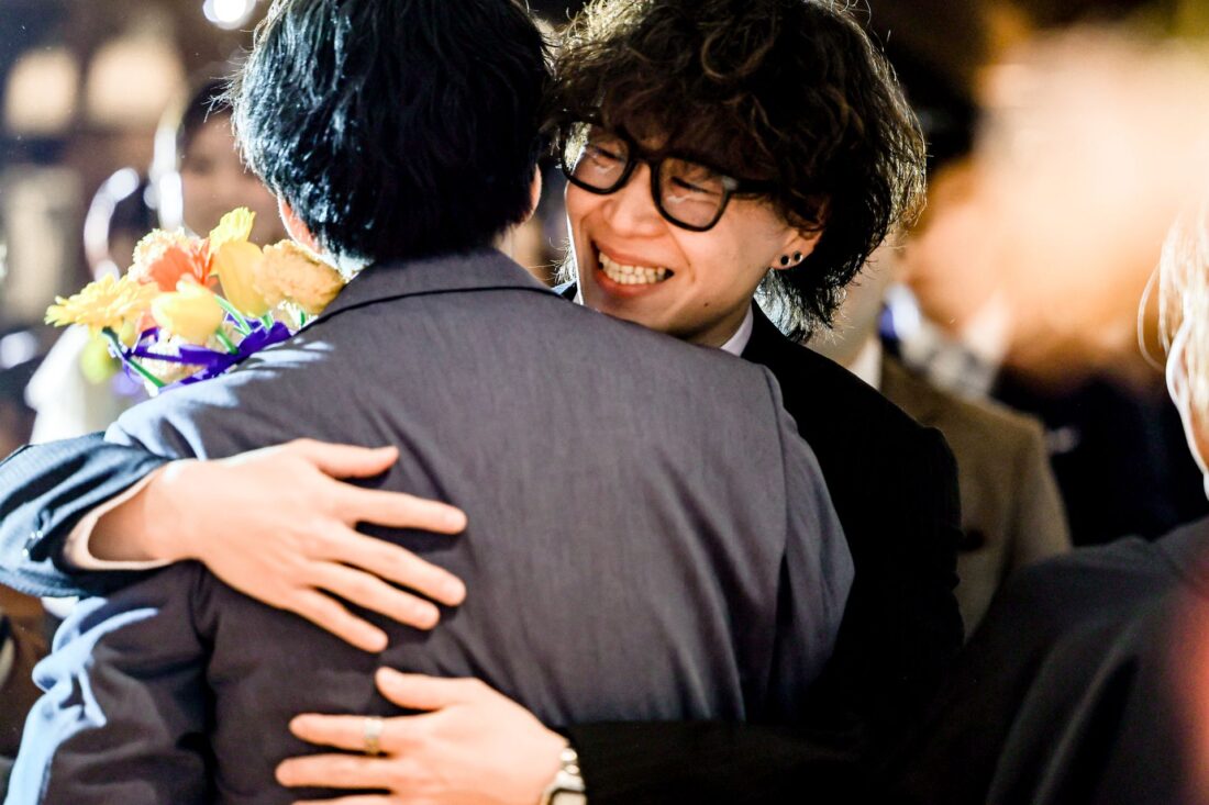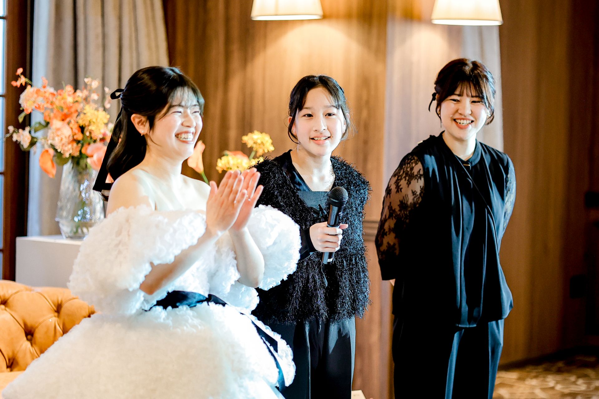 「写真に残したいのは、みんなの笑顔とあたたかな時間」 披露宴会場人前式チャペルドレスガーデンフォトウェディング ウェディングドレスデザートビュッフェドレスアットホーム大人数リングボーイパパママ婚カラードレス 「写真に残したいのは、みんなの笑顔とあたたかな時間」 結婚式の思い出をたくさん写真に残したくて、ゲストとの距離を大切にしたパーティーにしました。 賑やかで笑顔が絶えない空間の中で、大好きな人たちに囲まれて過ごす時間はまさに宝物。 一生の思い出として、心にも写真にも残る最高の一日になりました。