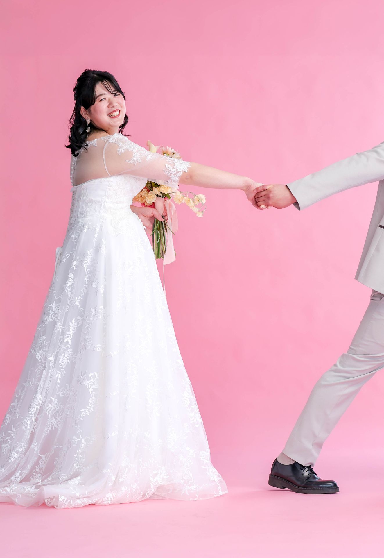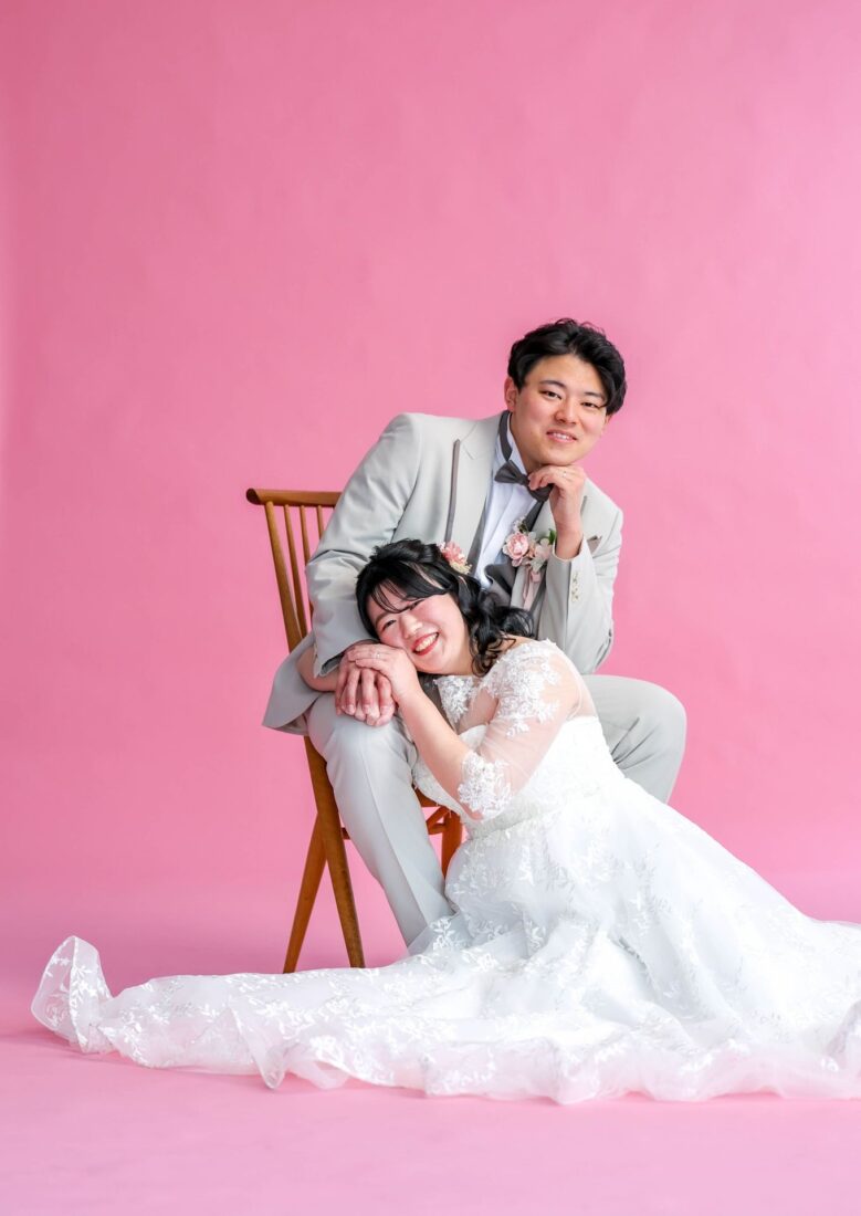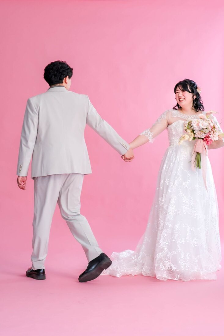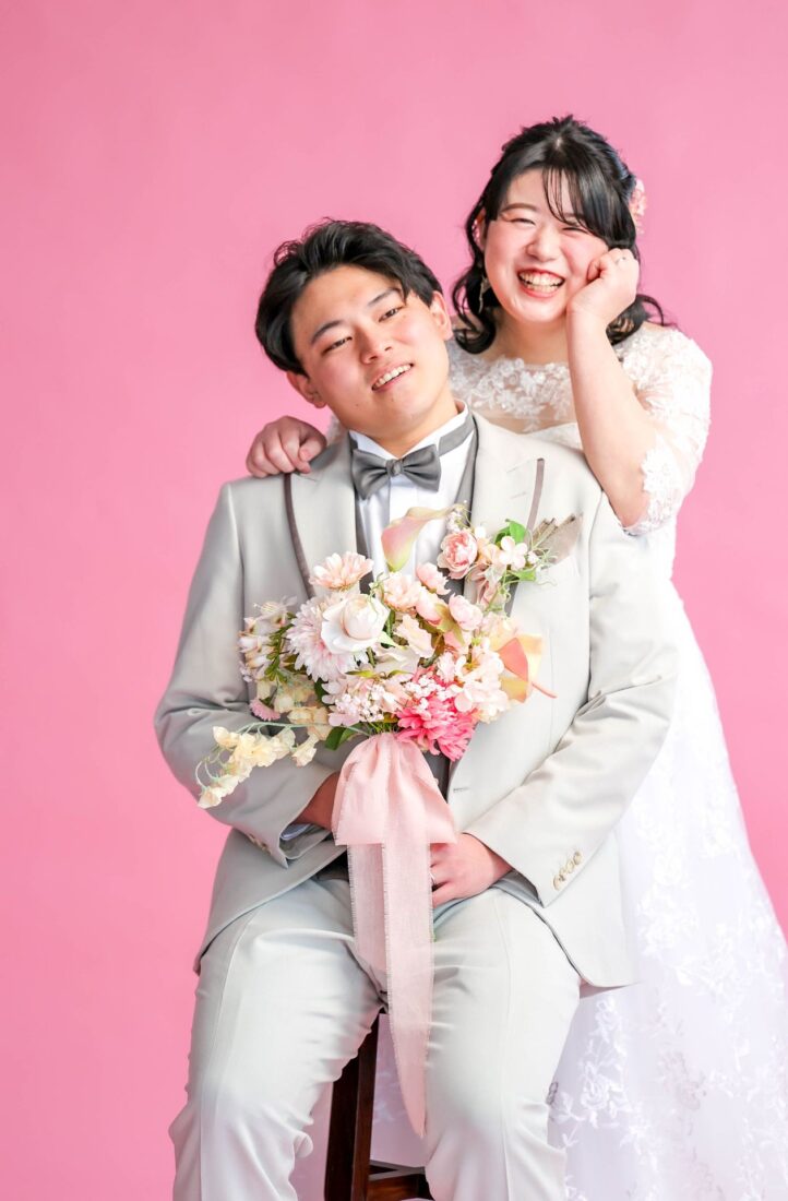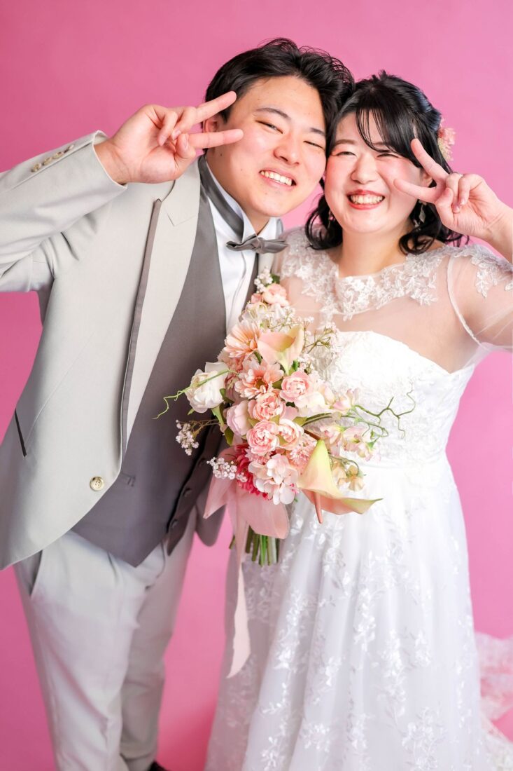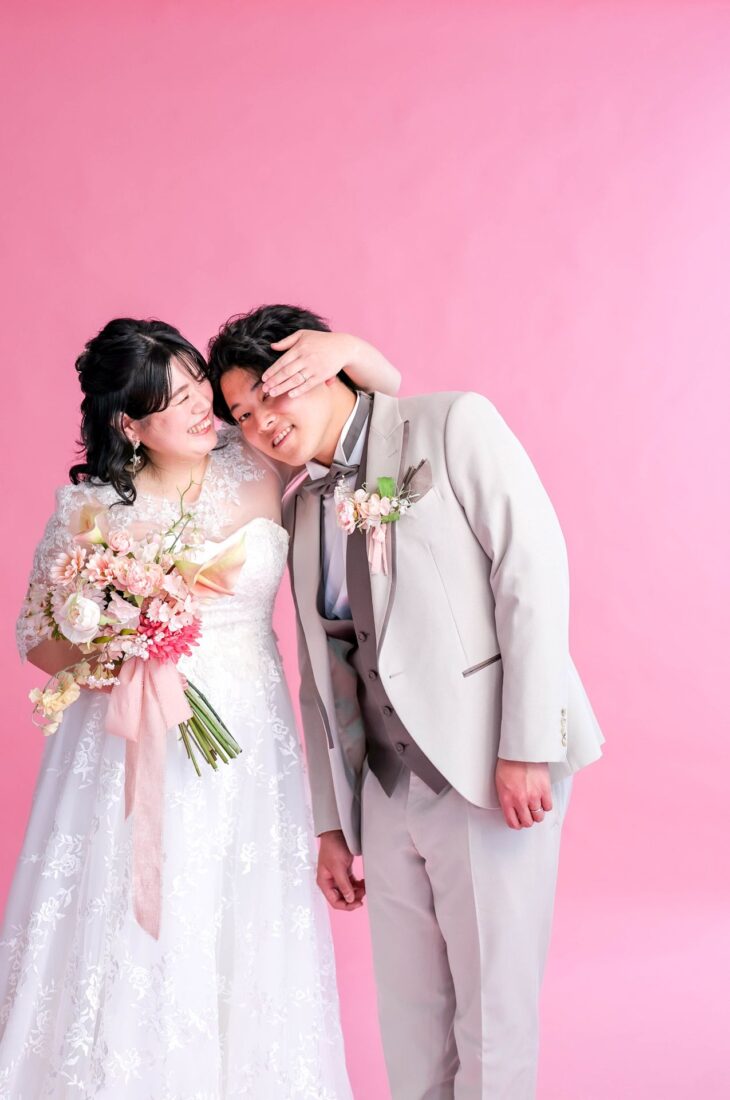 「ひと足早い春ふたりの笑顔が咲いた日」 前撮りチャペルドレスフォトウェディング ウェディングドレスドレス前撮り やわらかなピンクに包まれて、家族が見守るなか撮影をしました。 幸せ溢れる新婦様の笑顔がとても印象的なひと時でした!