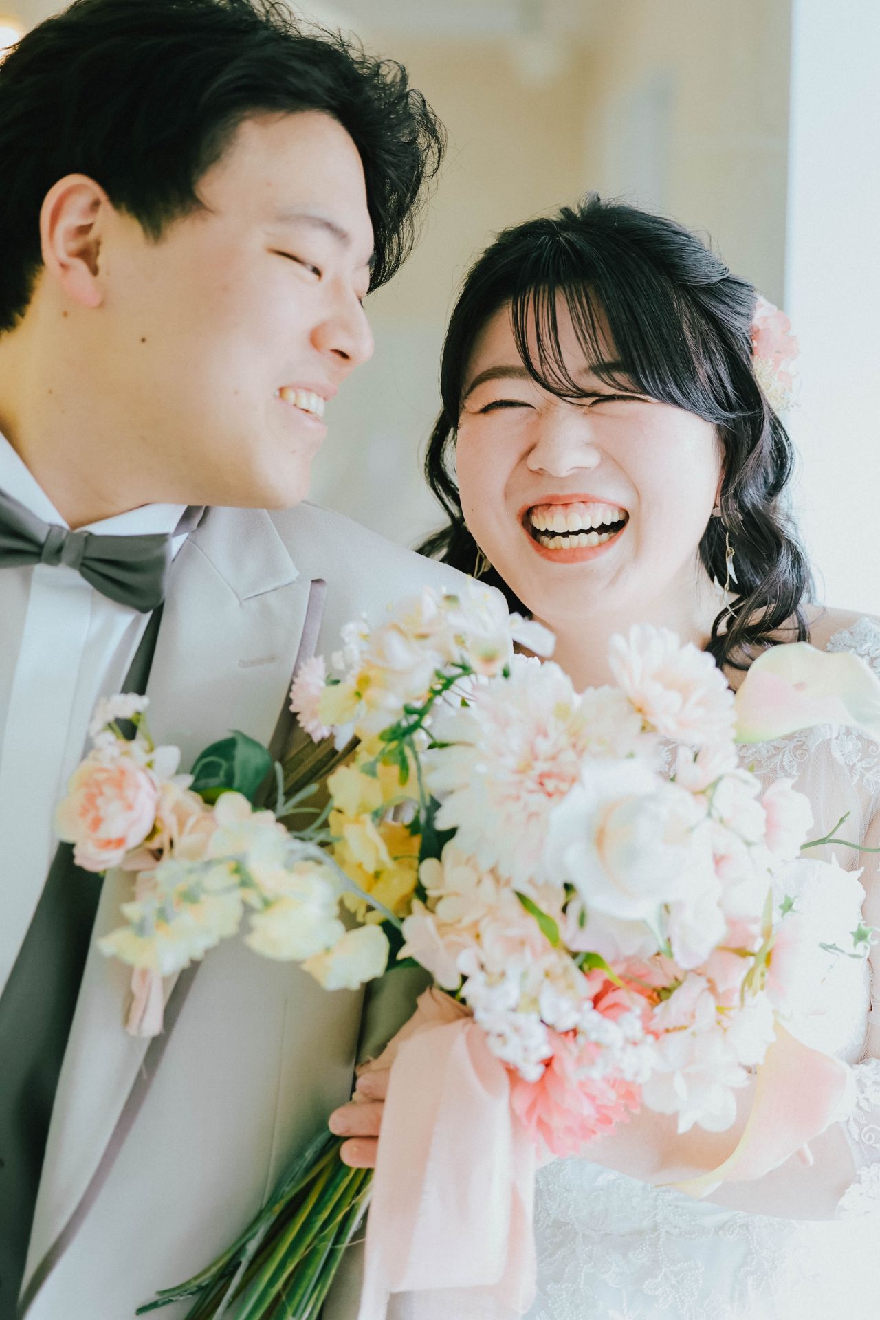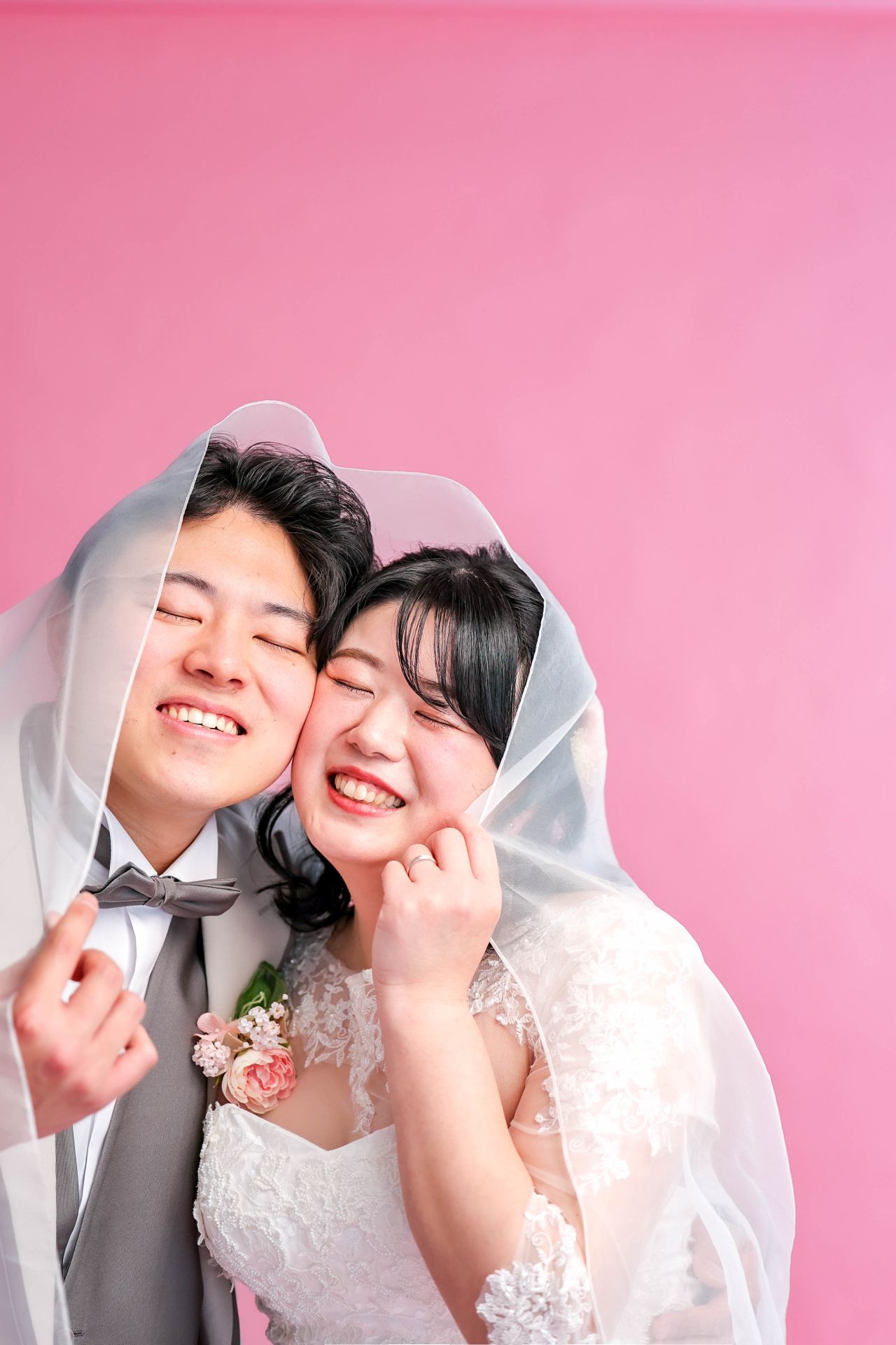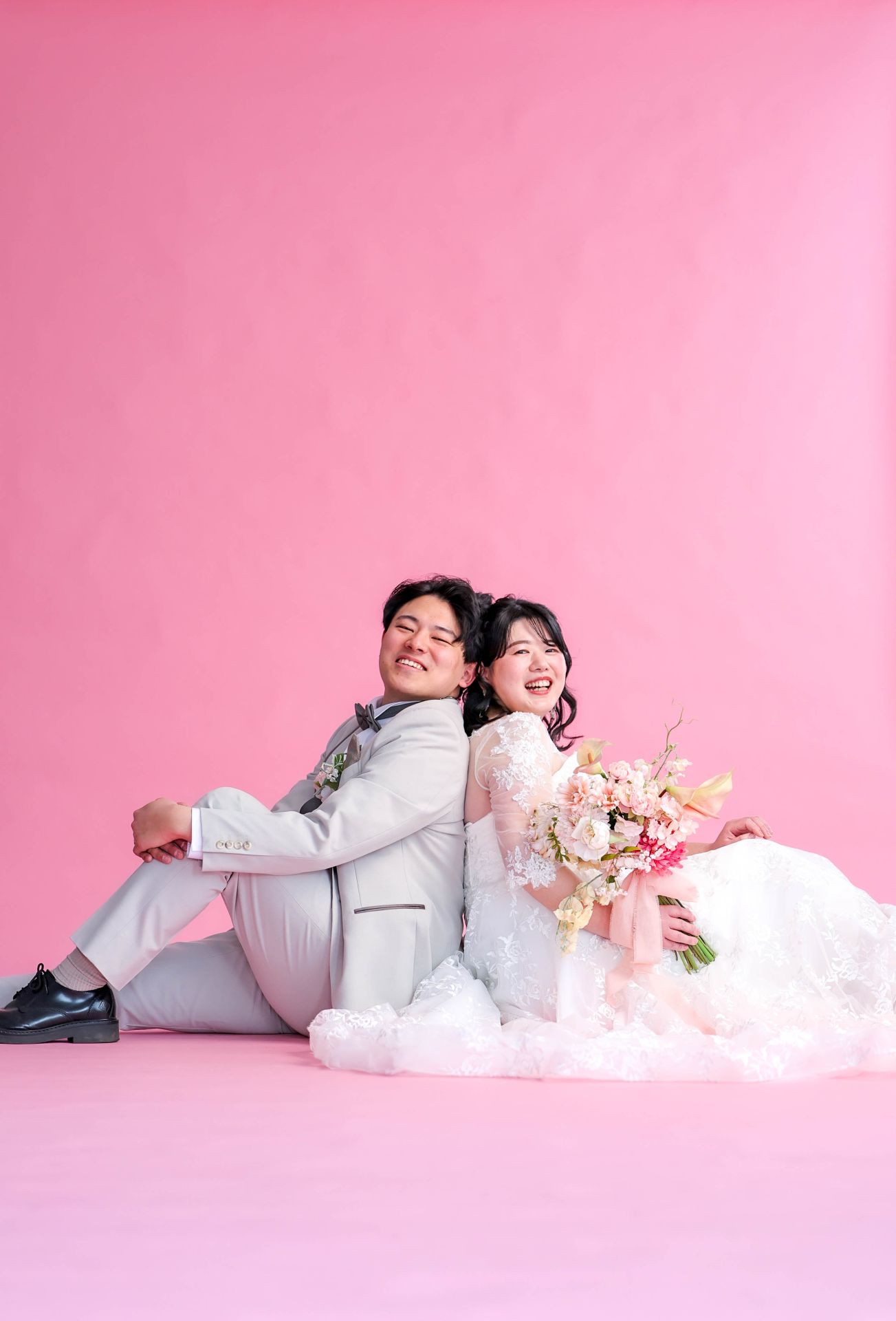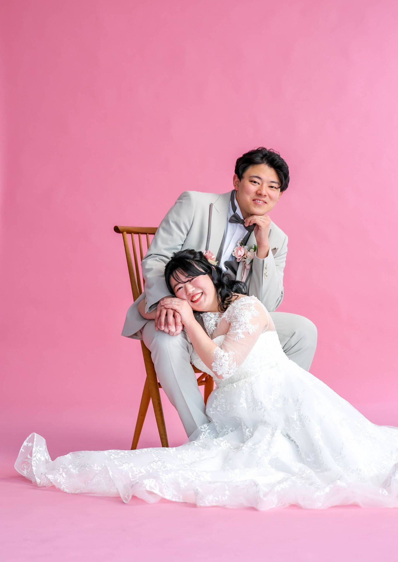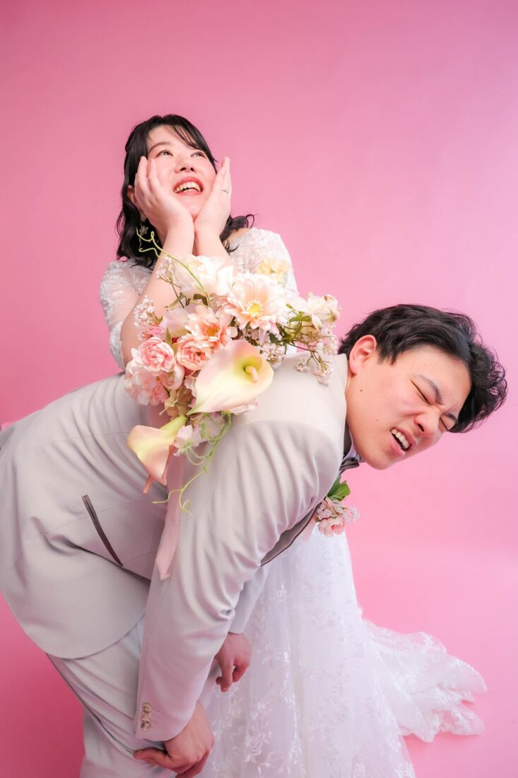 「ひと足早い春ふたりの笑顔が咲いた日」 前撮りチャペルドレスフォトウェディング ウェディングドレスドレス前撮り やわらかなピンクに包まれて、家族が見守るなか撮影をしました。 幸せ溢れる新婦様の笑顔がとても印象的なひと時でした!
