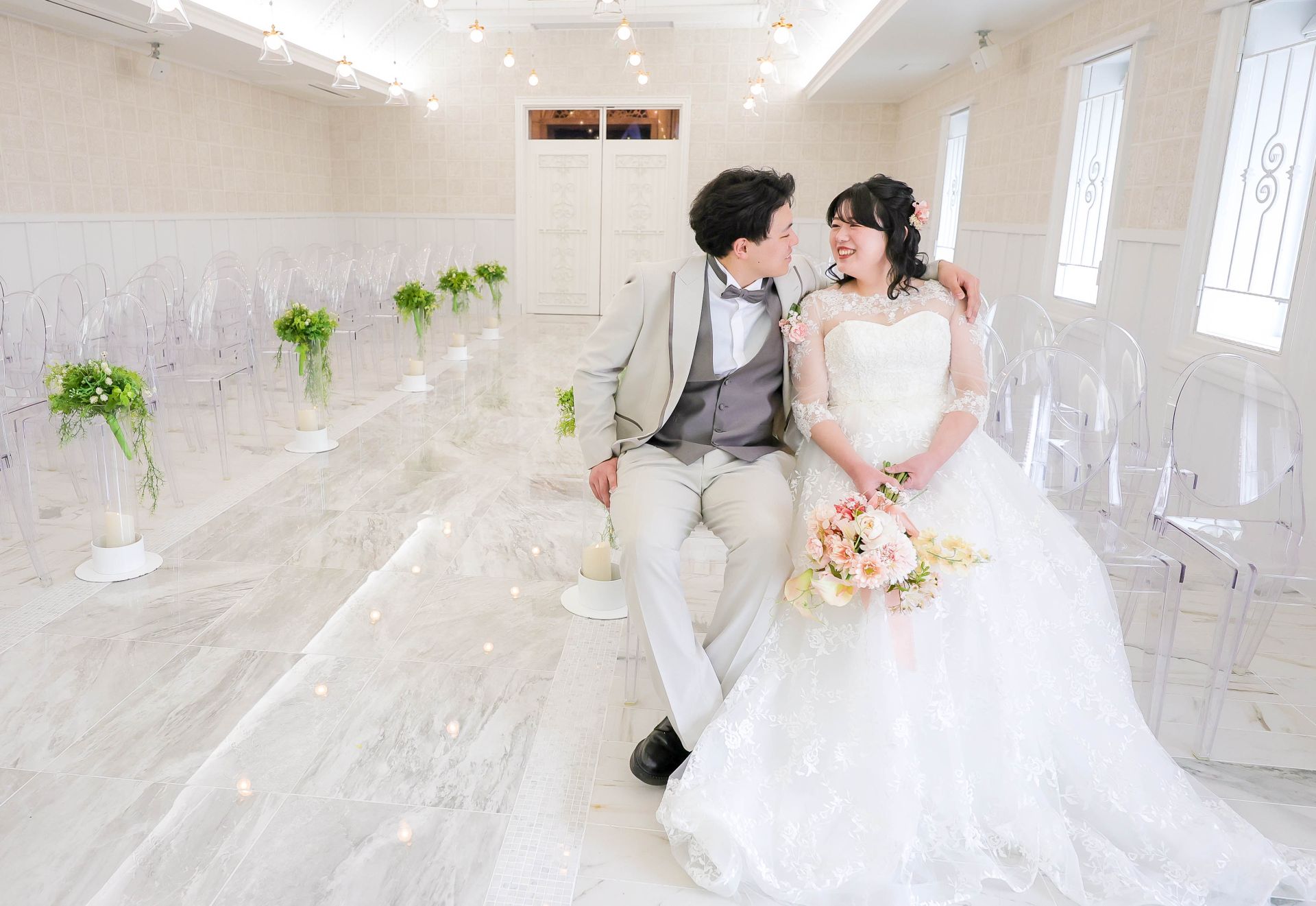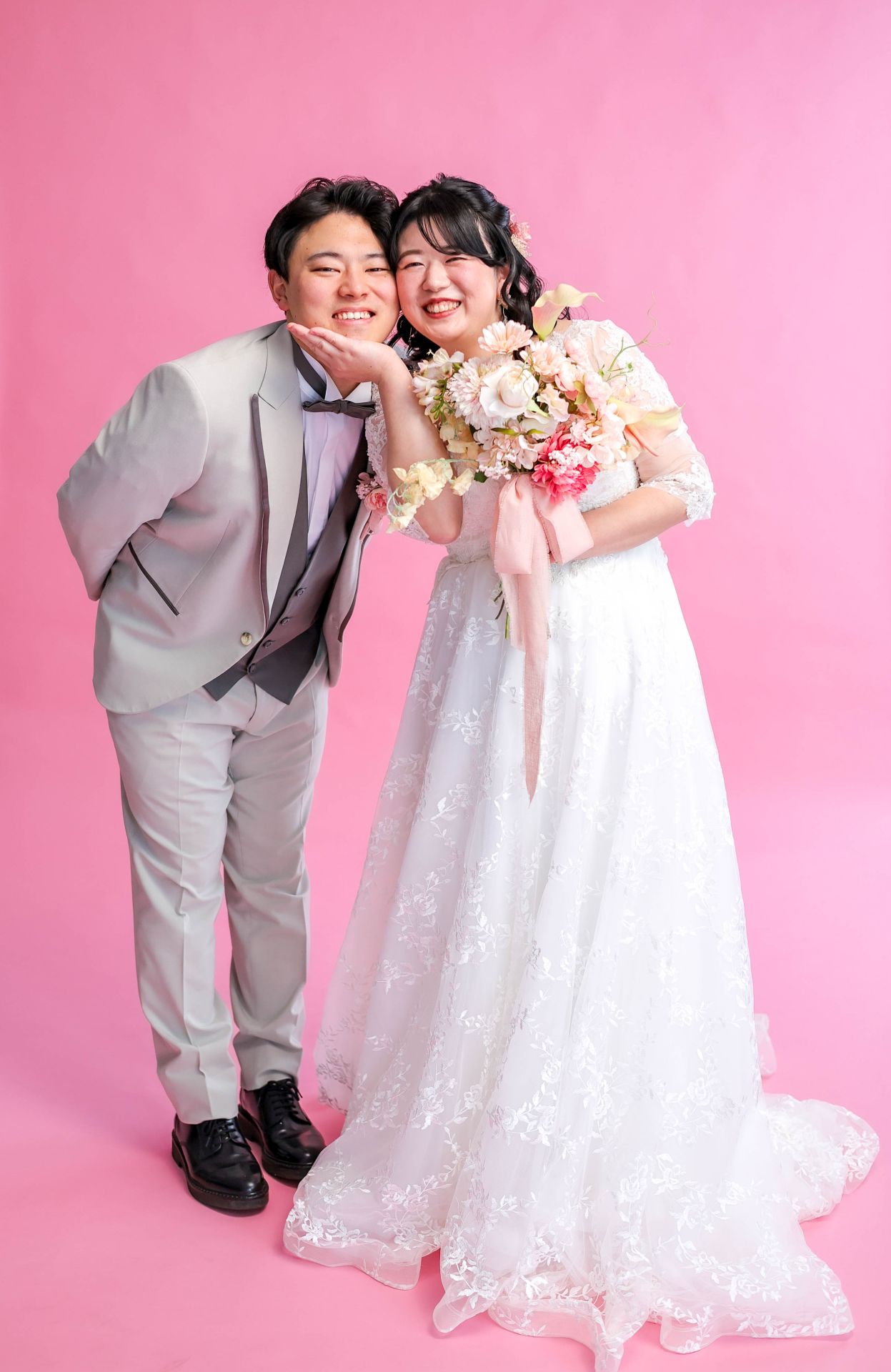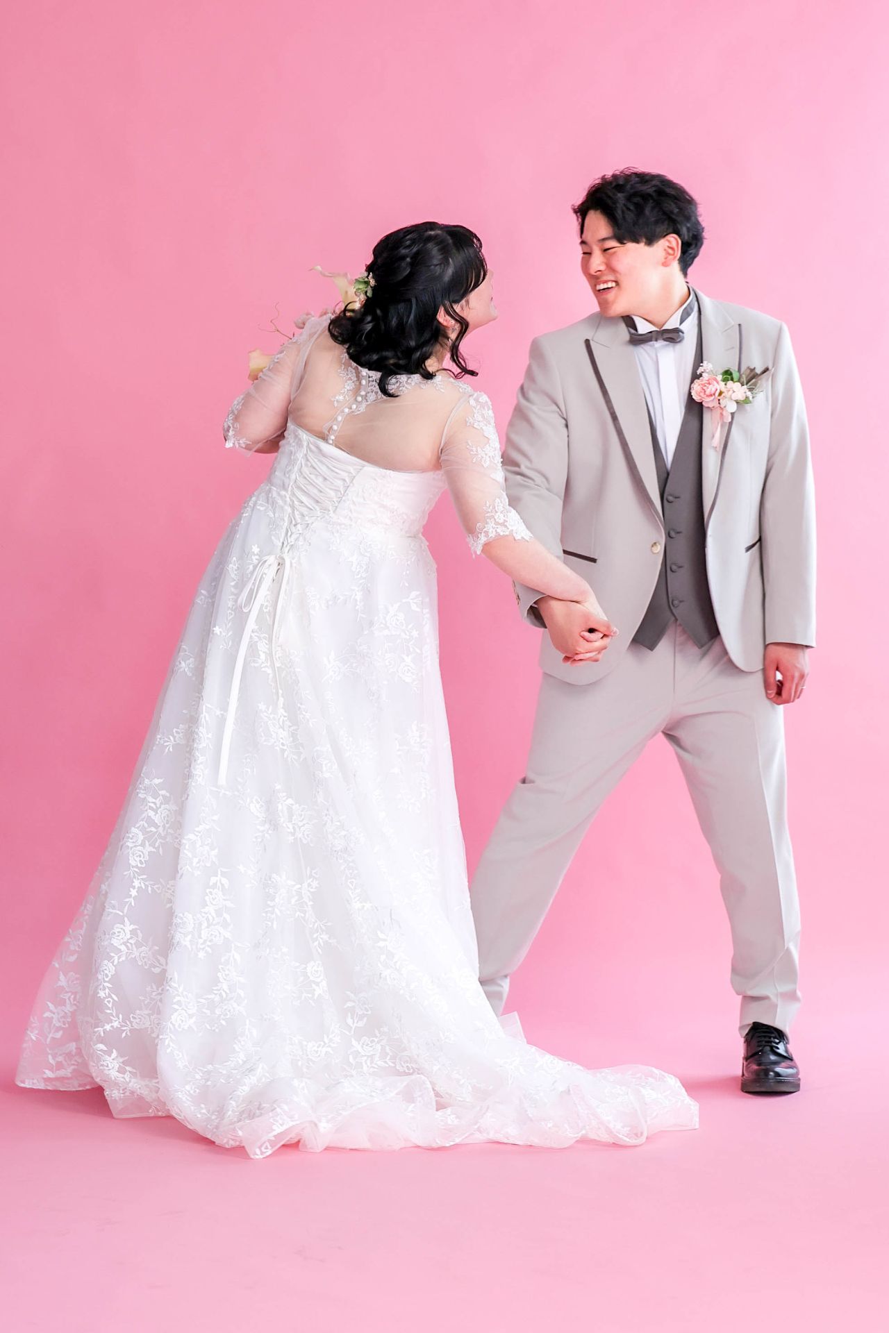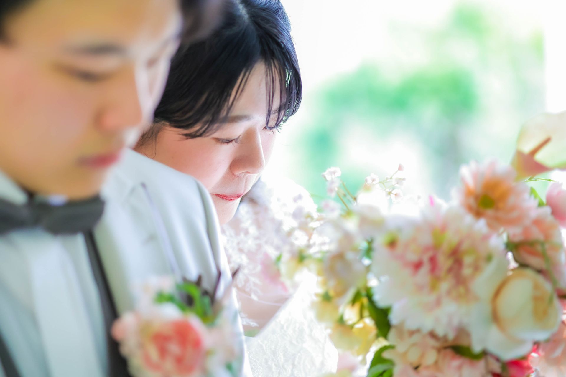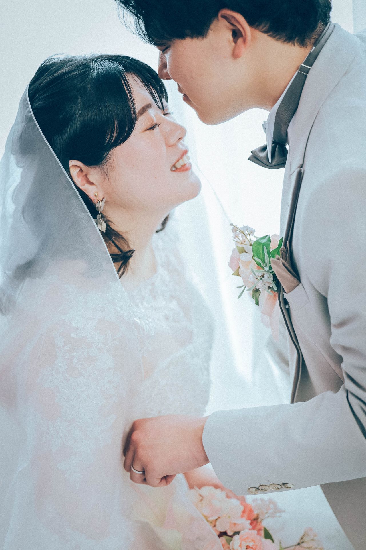 「ひと足早い春ふたりの笑顔が咲いた日」 前撮りチャペルドレスフォトウェディング ウェディングドレスドレス前撮り やわらかなピンクに包まれて、家族が見守るなか撮影をしました。 幸せ溢れる新婦様の笑顔がとても印象的なひと時でした!