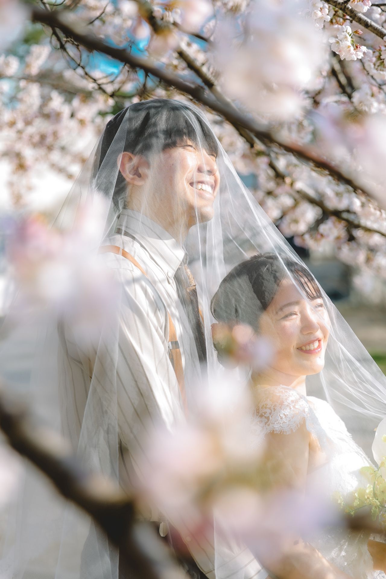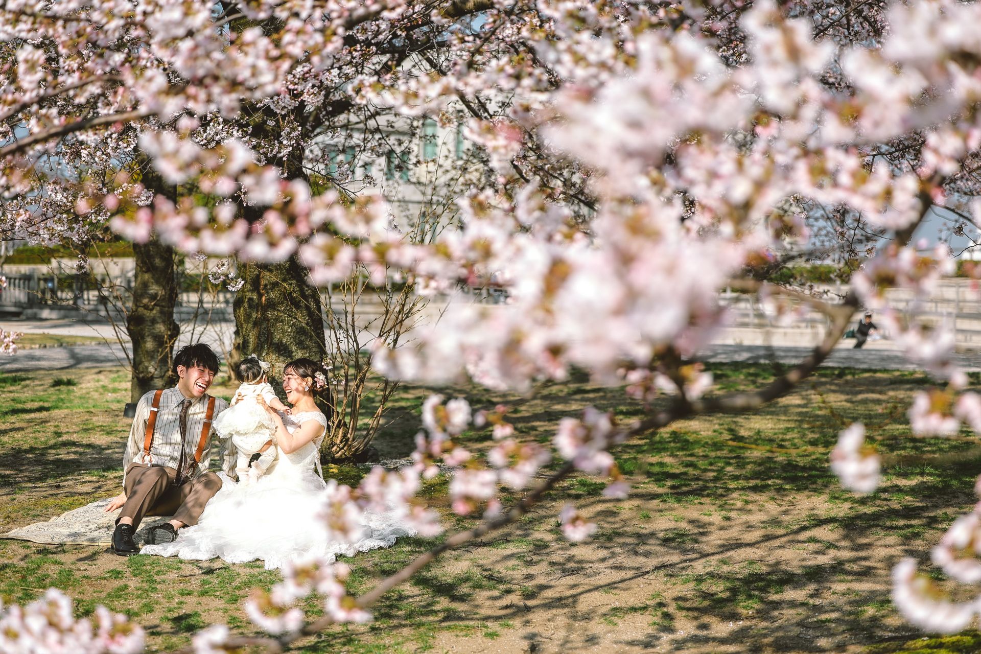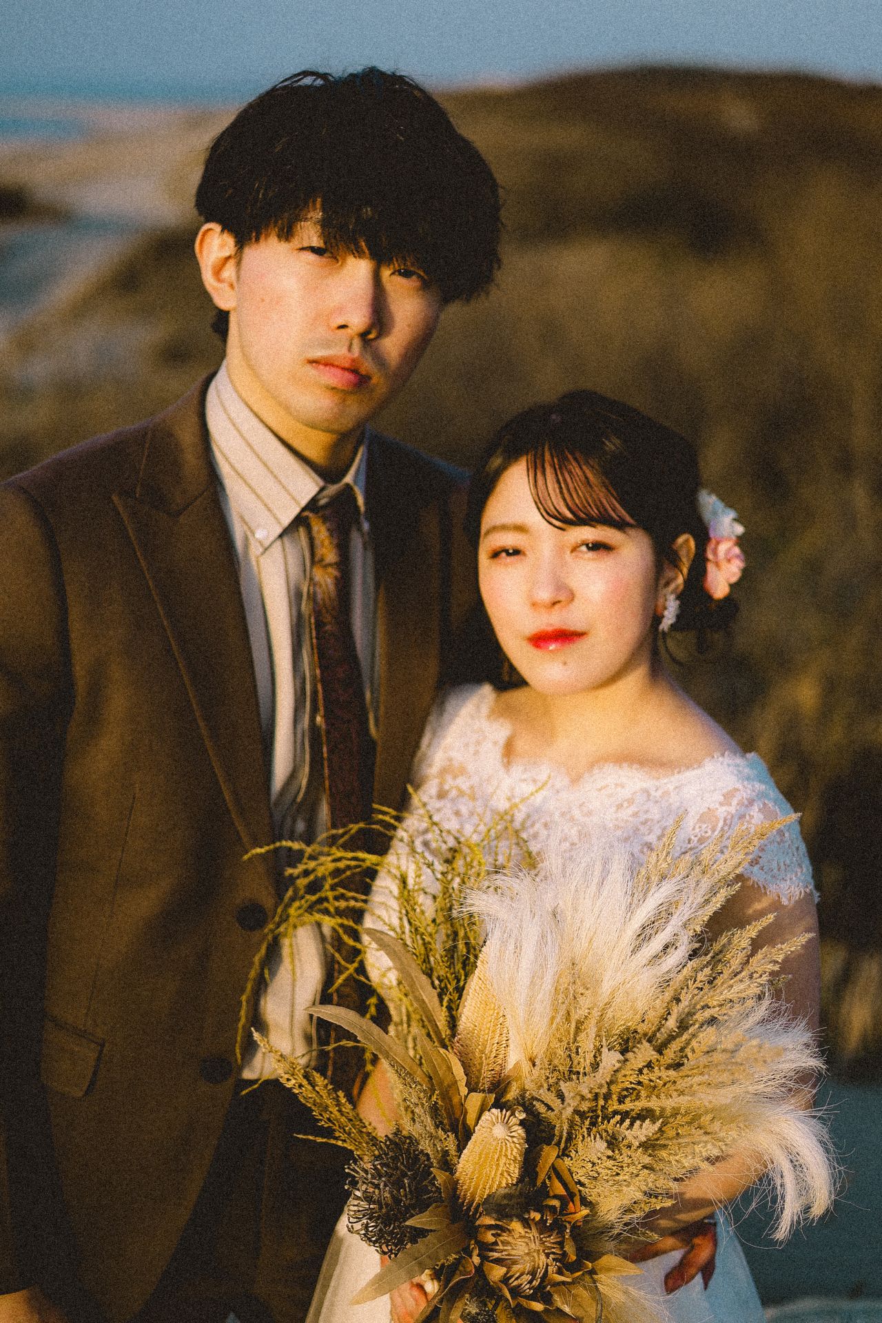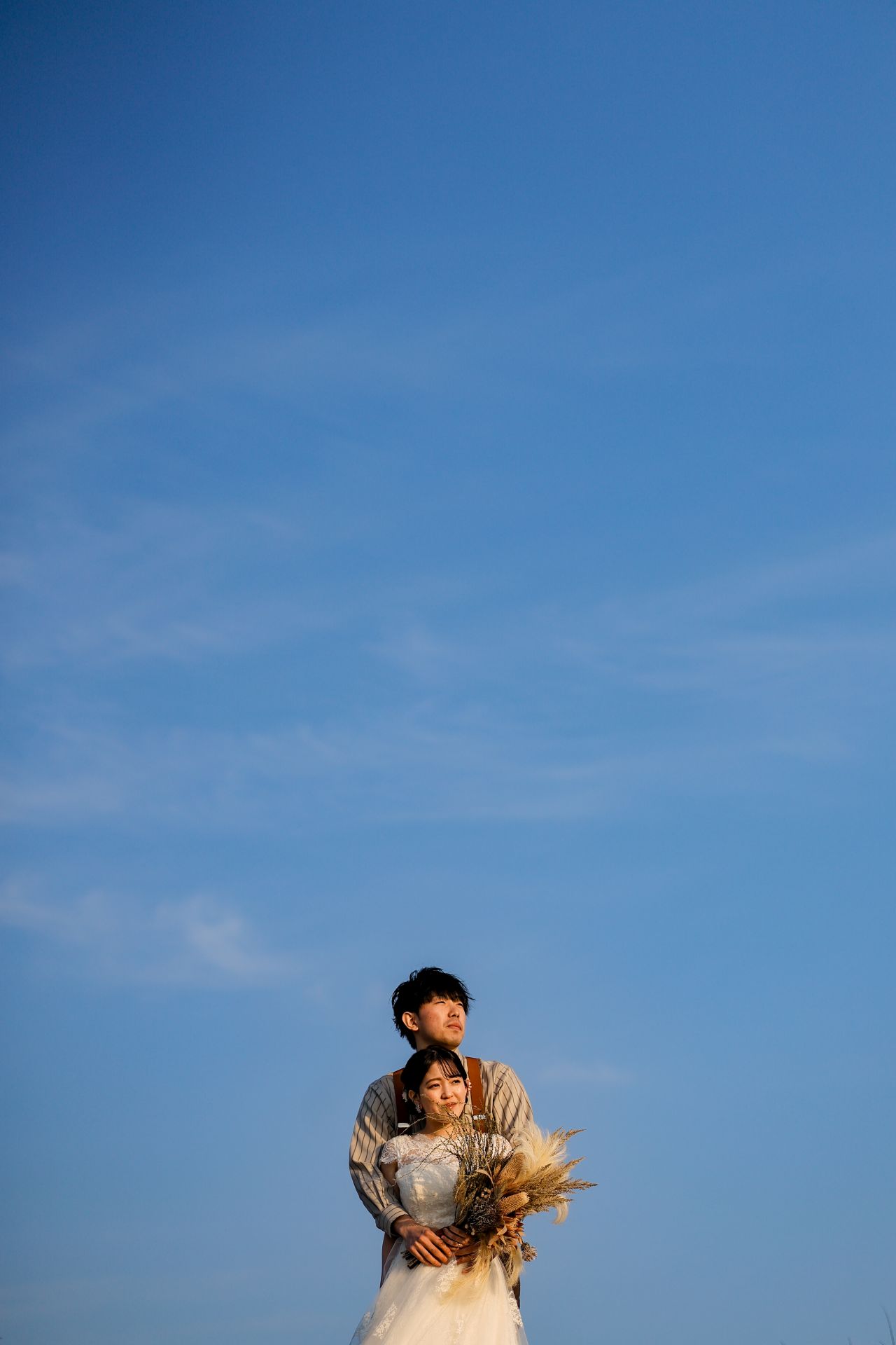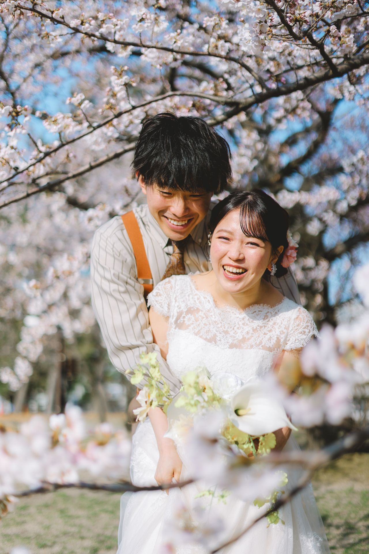 「桜と夕日に包まれた一日」 前撮りドレスフォトウェディング ウェディングドレスロケーションフォトドレス新潟ロケ海ロケ前撮りパパママ婚 一年越しの念願だった新潟でのロケーション撮影時を重ねる中でご家族も増え、あの頃よりも一層あたたかな空気に包まれたおふたり心配していた雨もこの日は澄み渡るような晴天に恵まれました桜も撮影日に合わせて開花そして一日の締めくくりには真っ赤に染まる夕日家族と季節の『今』を残す撮影となりました