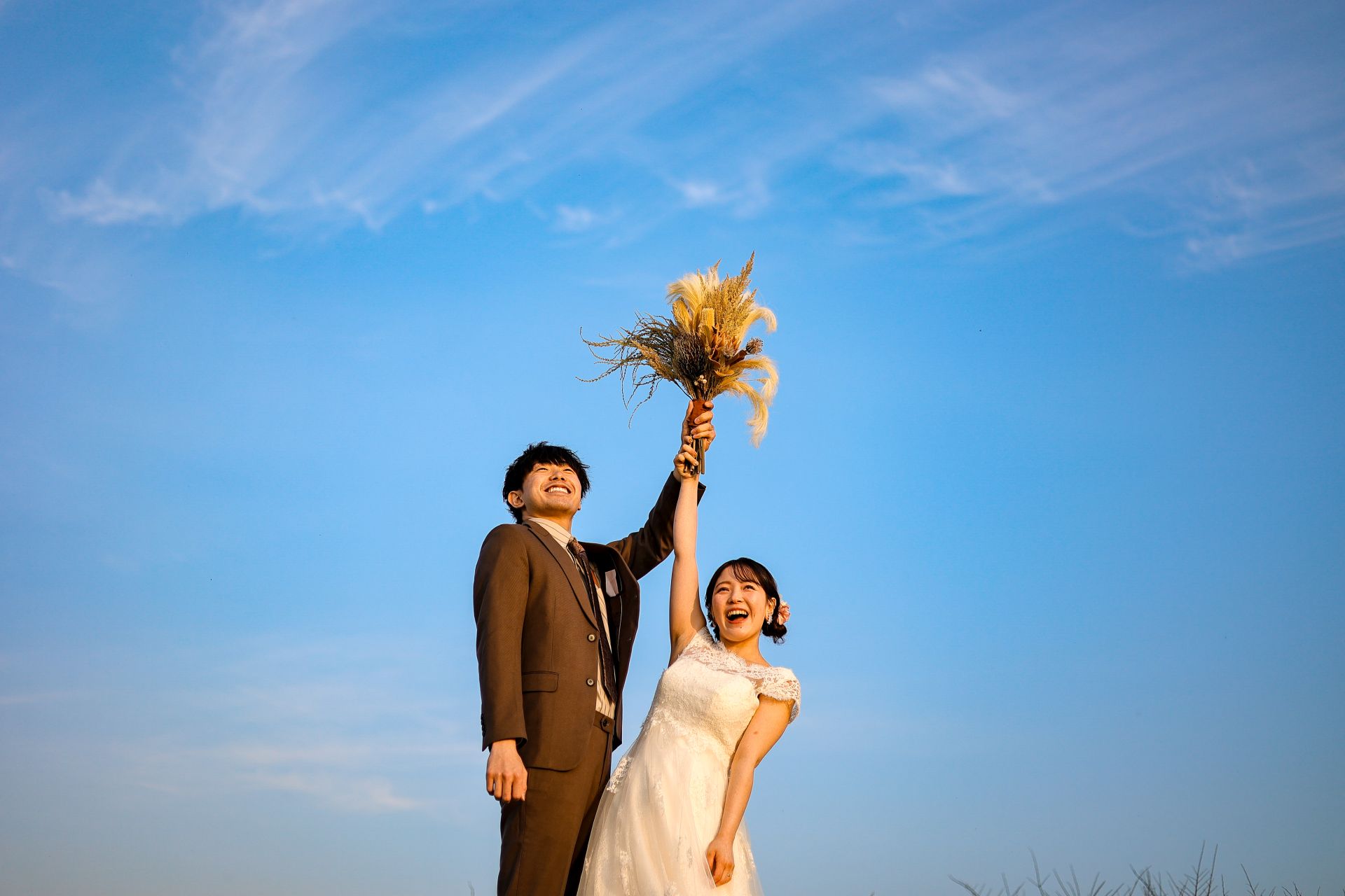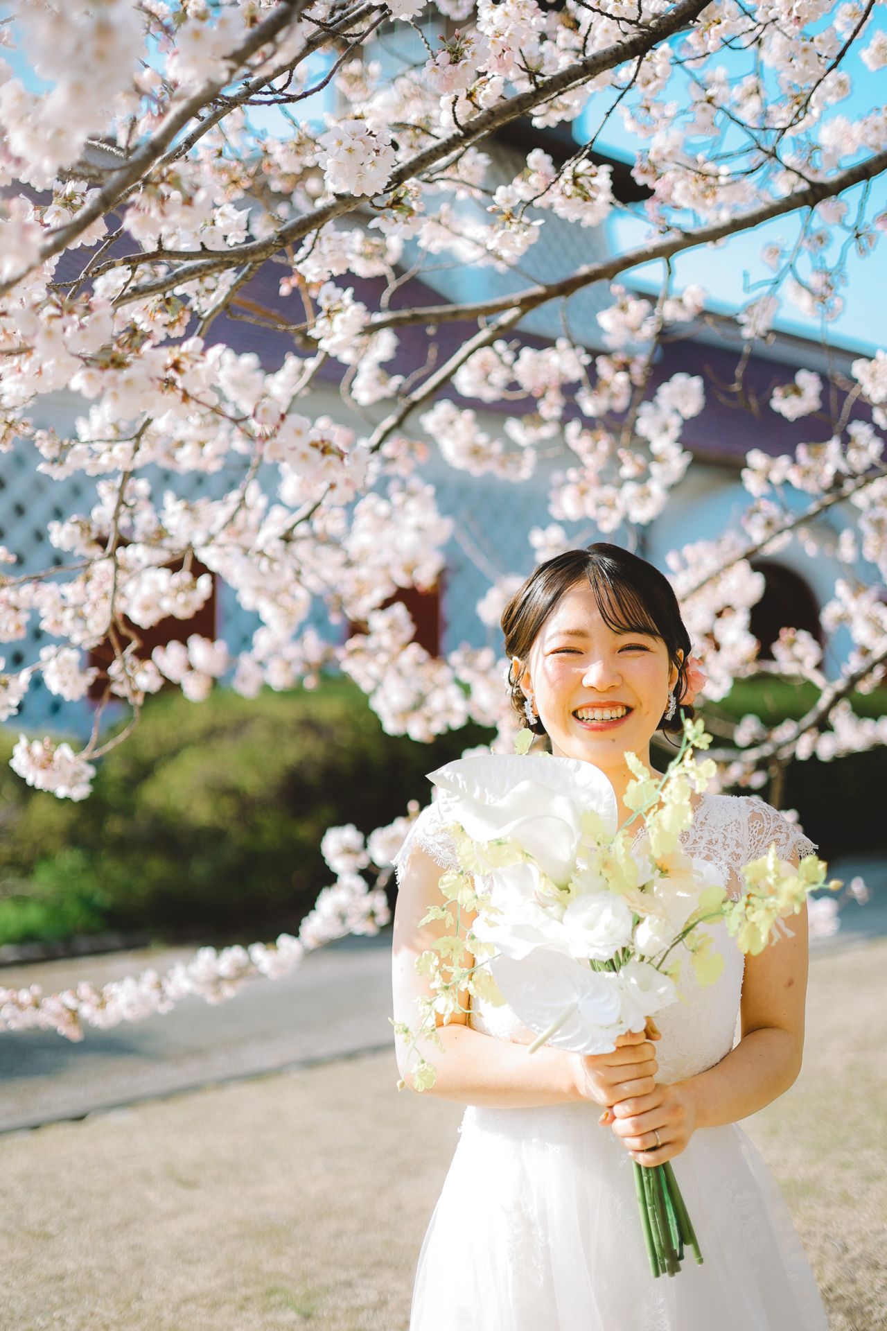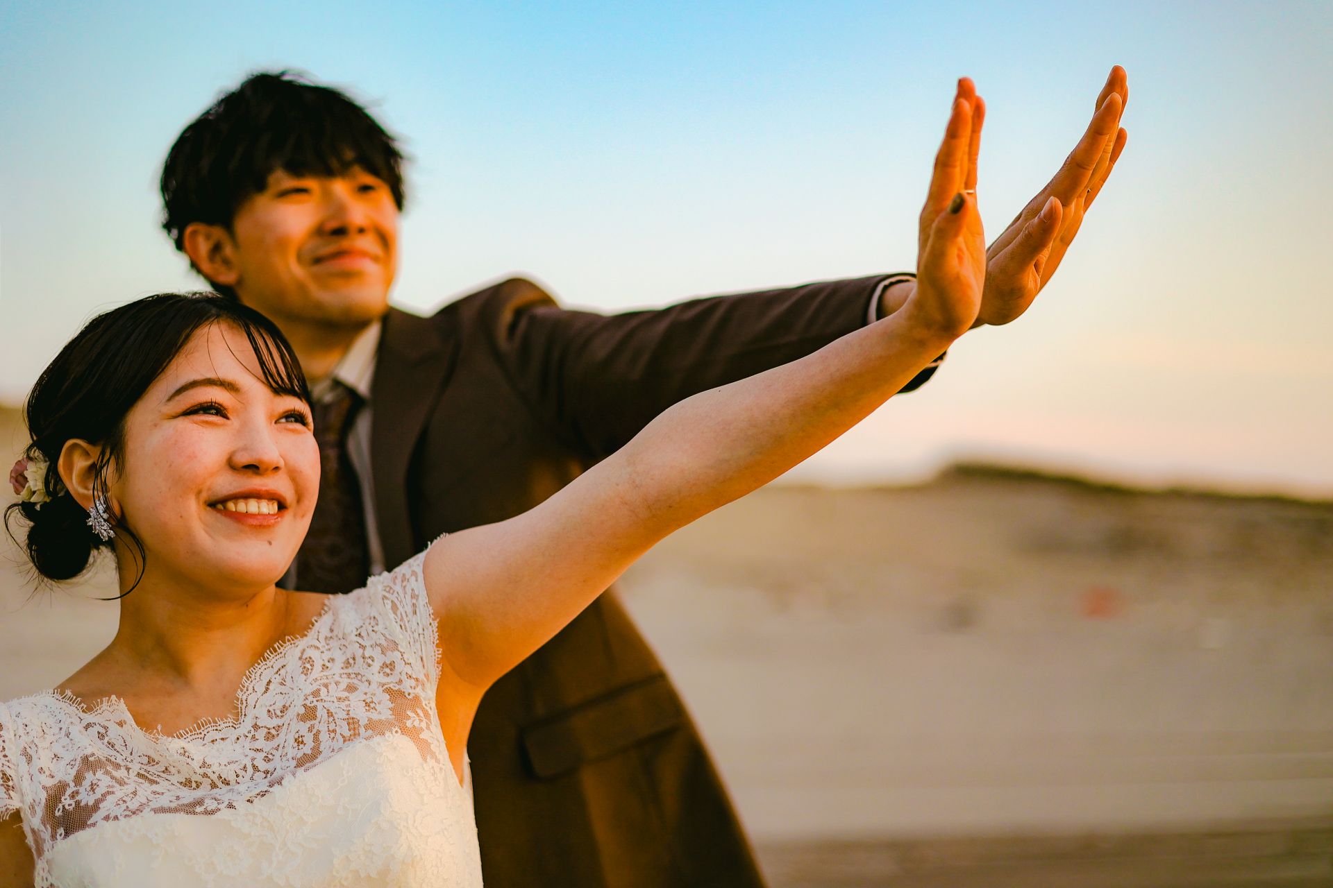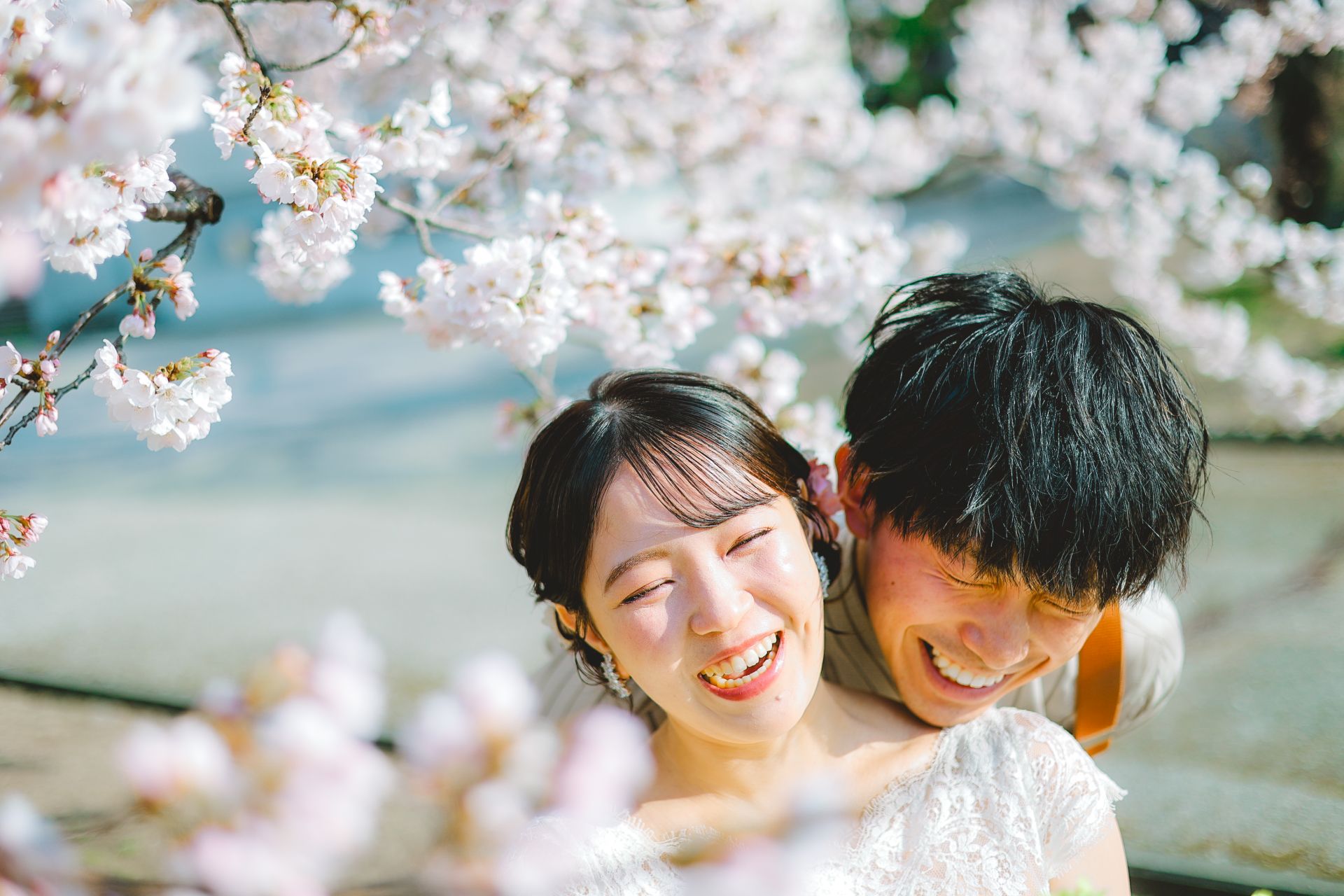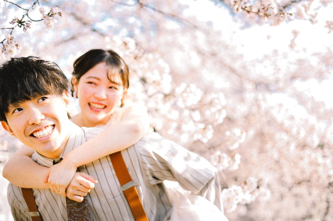 「桜と夕日に包まれた一日」 前撮りドレスフォトウェディング ウェディングドレスロケーションフォトドレス新潟ロケ海ロケ前撮りパパママ婚 一年越しの念願だった新潟でのロケーション撮影時を重ねる中でご家族も増え、あの頃よりも一層あたたかな空気に包まれたおふたり心配していた雨もこの日は澄み渡るような晴天に恵まれました桜も撮影日に合わせて開花そして一日の締めくくりには真っ赤に染まる夕日家族と季節の『今』を残す撮影となりました
