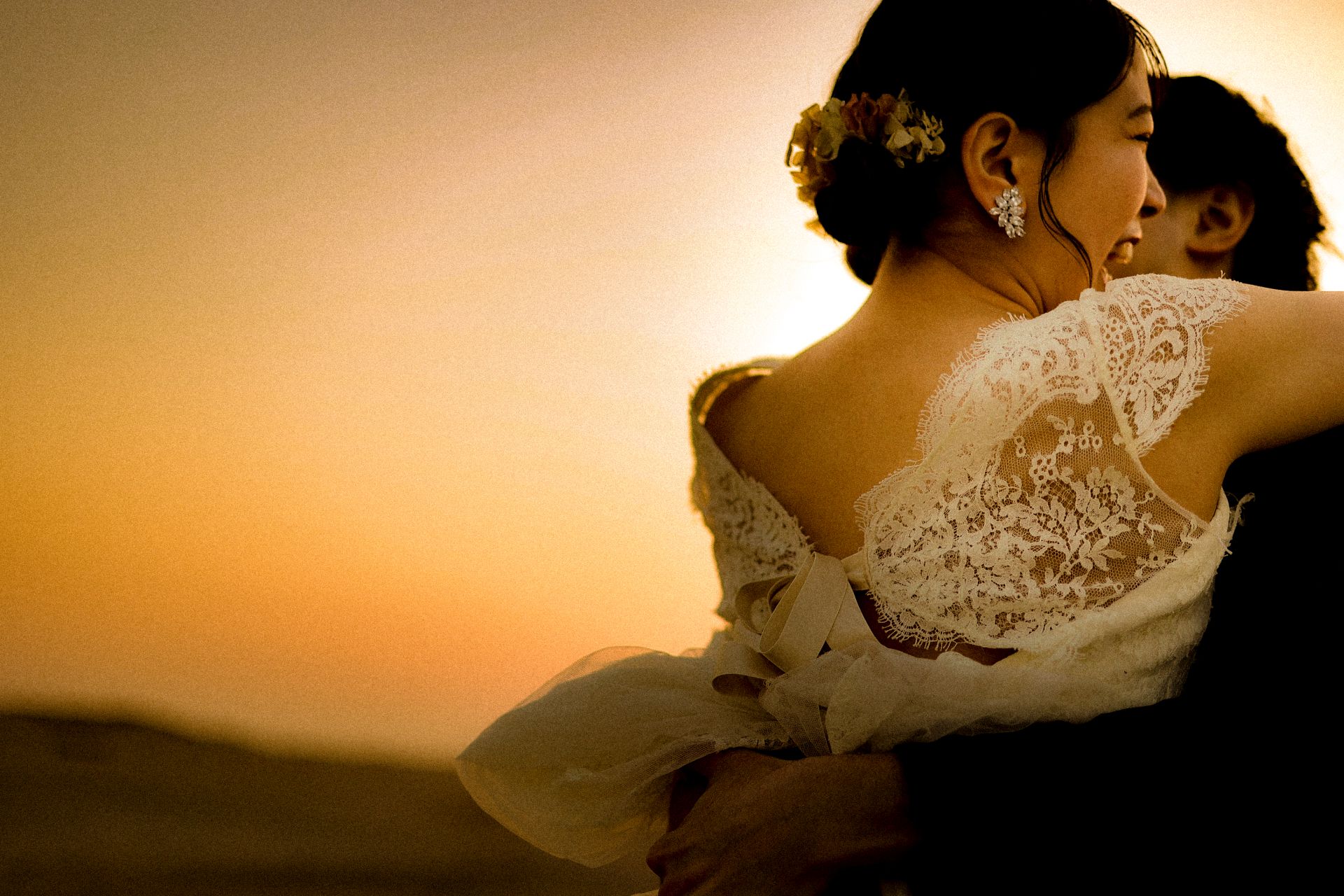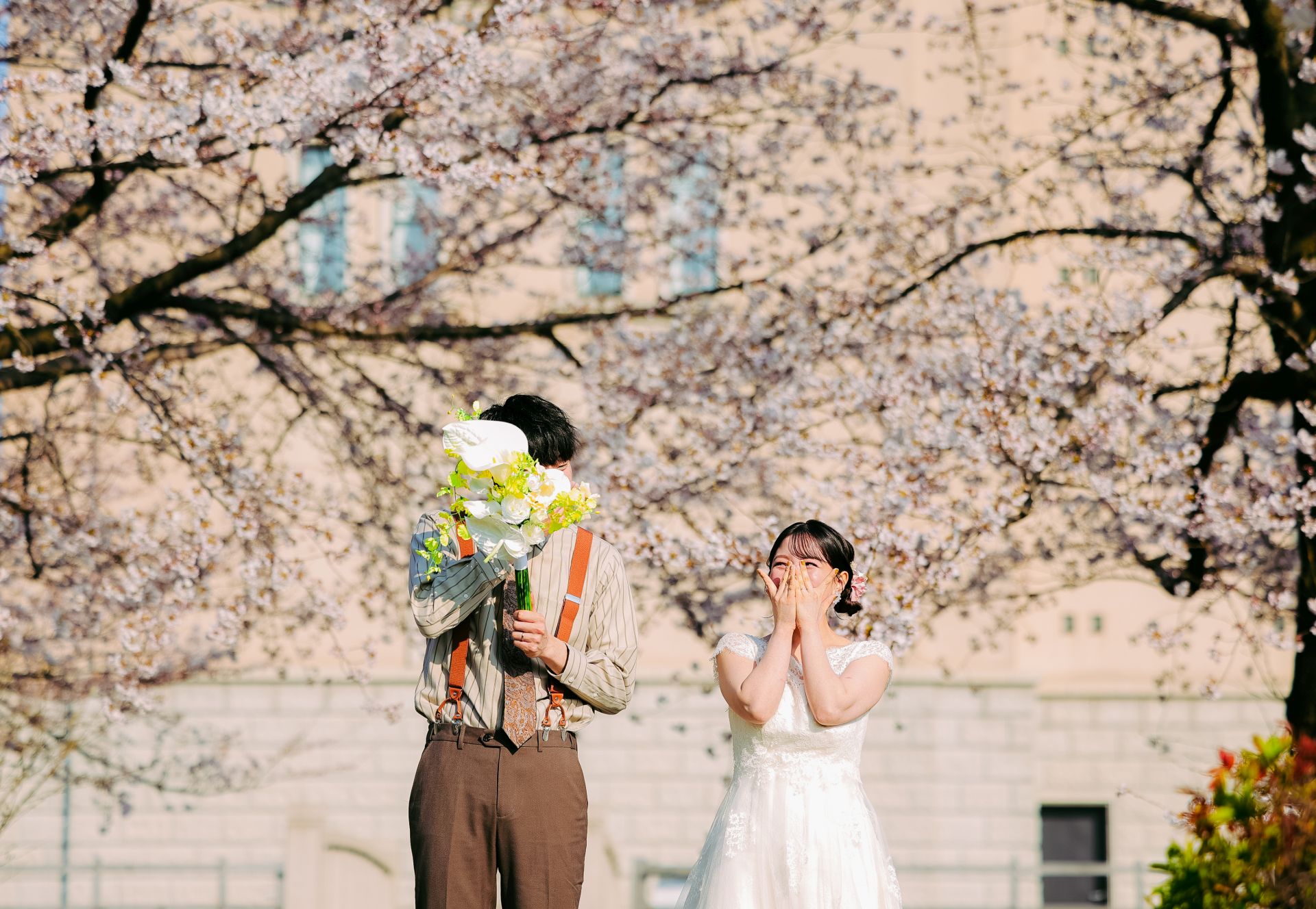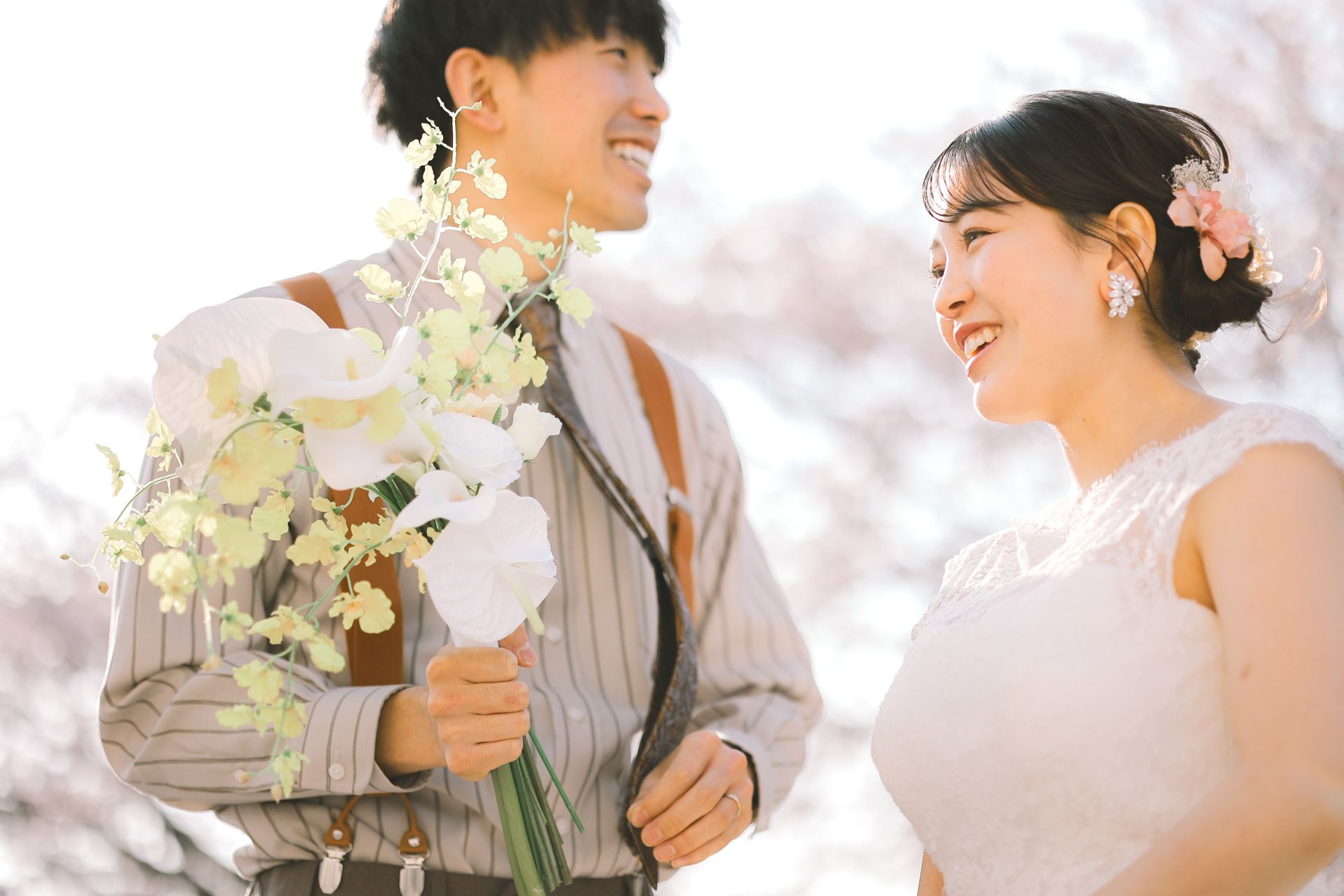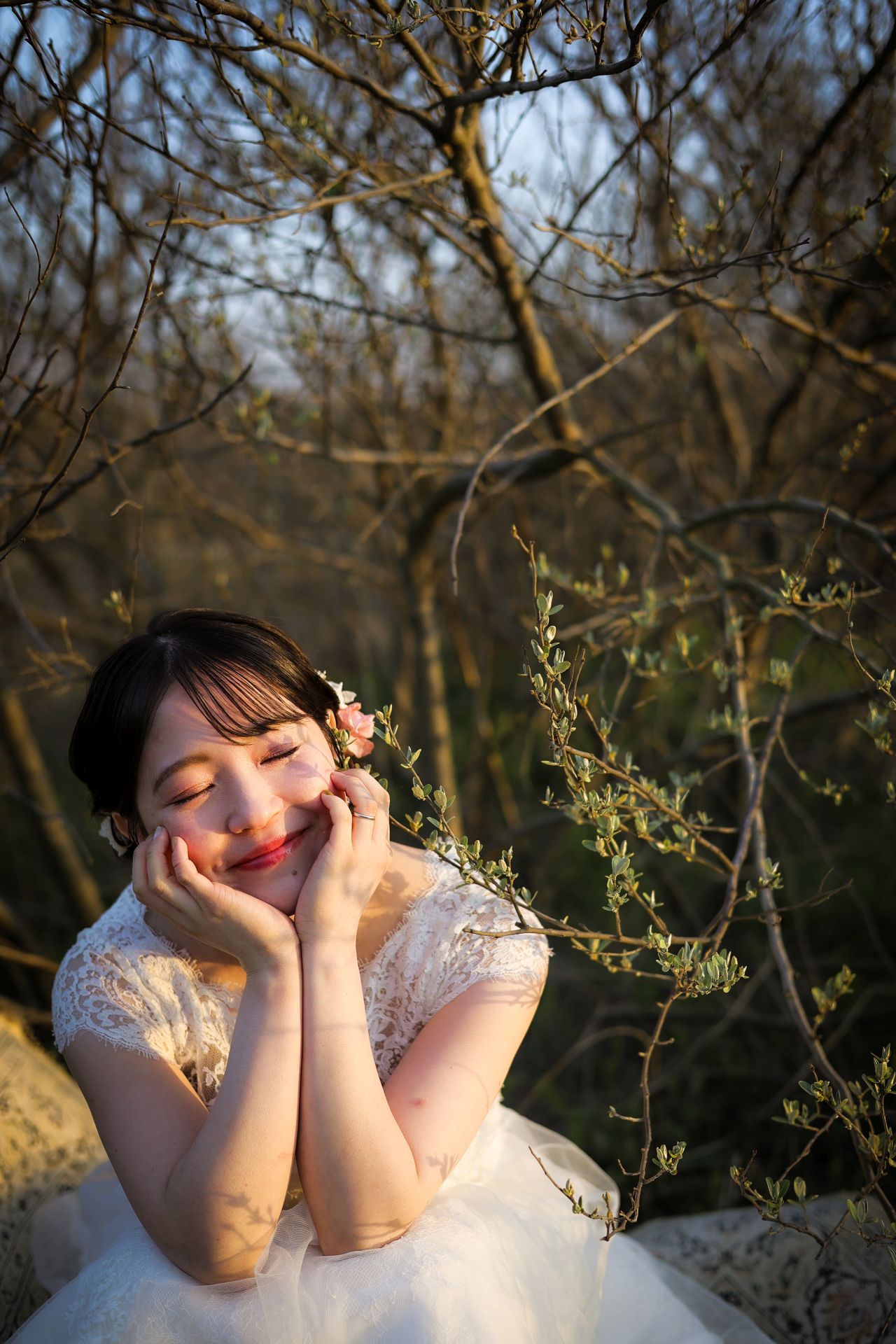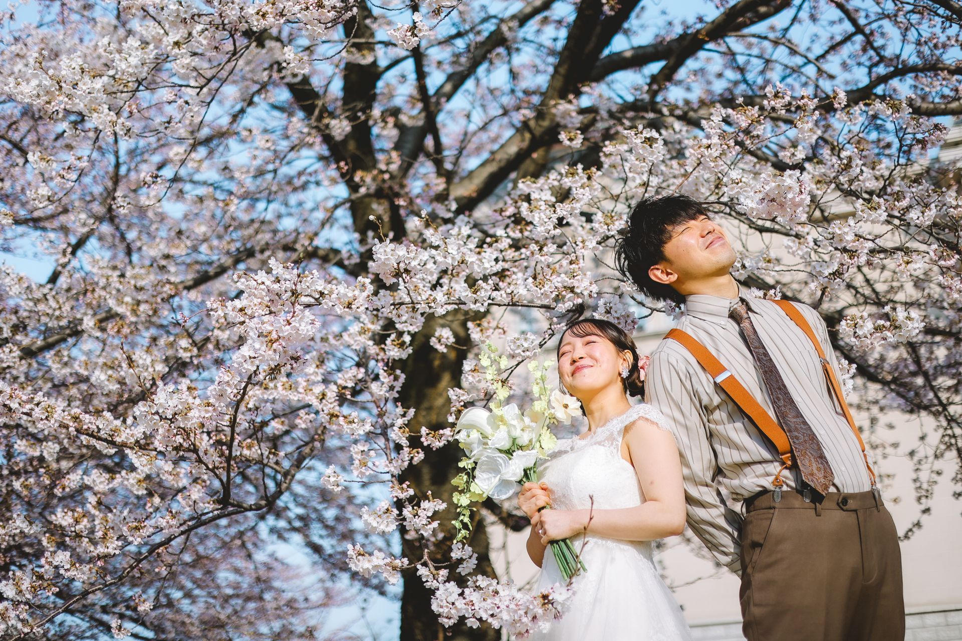 「桜と夕日に包まれた一日」 前撮りドレスフォトウェディング ウェディングドレスロケーションフォトドレス新潟ロケ海ロケ前撮りパパママ婚 一年越しの念願だった新潟でのロケーション撮影時を重ねる中でご家族も増え、あの頃よりも一層あたたかな空気に包まれたおふたり心配していた雨もこの日は澄み渡るような晴天に恵まれました桜も撮影日に合わせて開花そして一日の締めくくりには真っ赤に染まる夕日家族と季節の『今』を残す撮影となりました