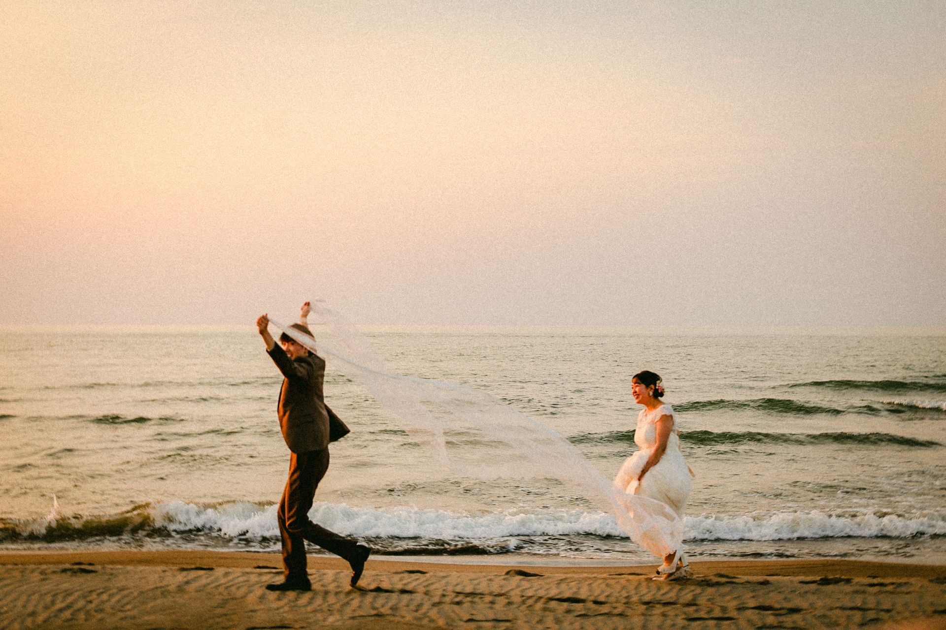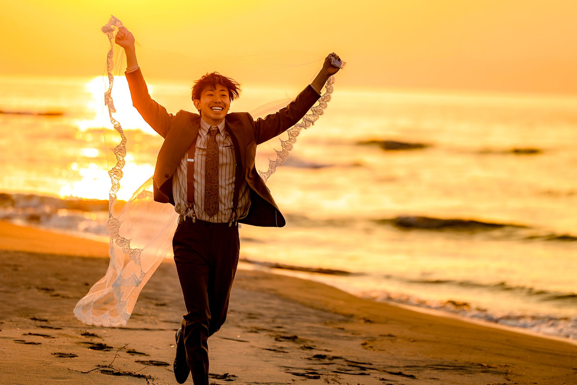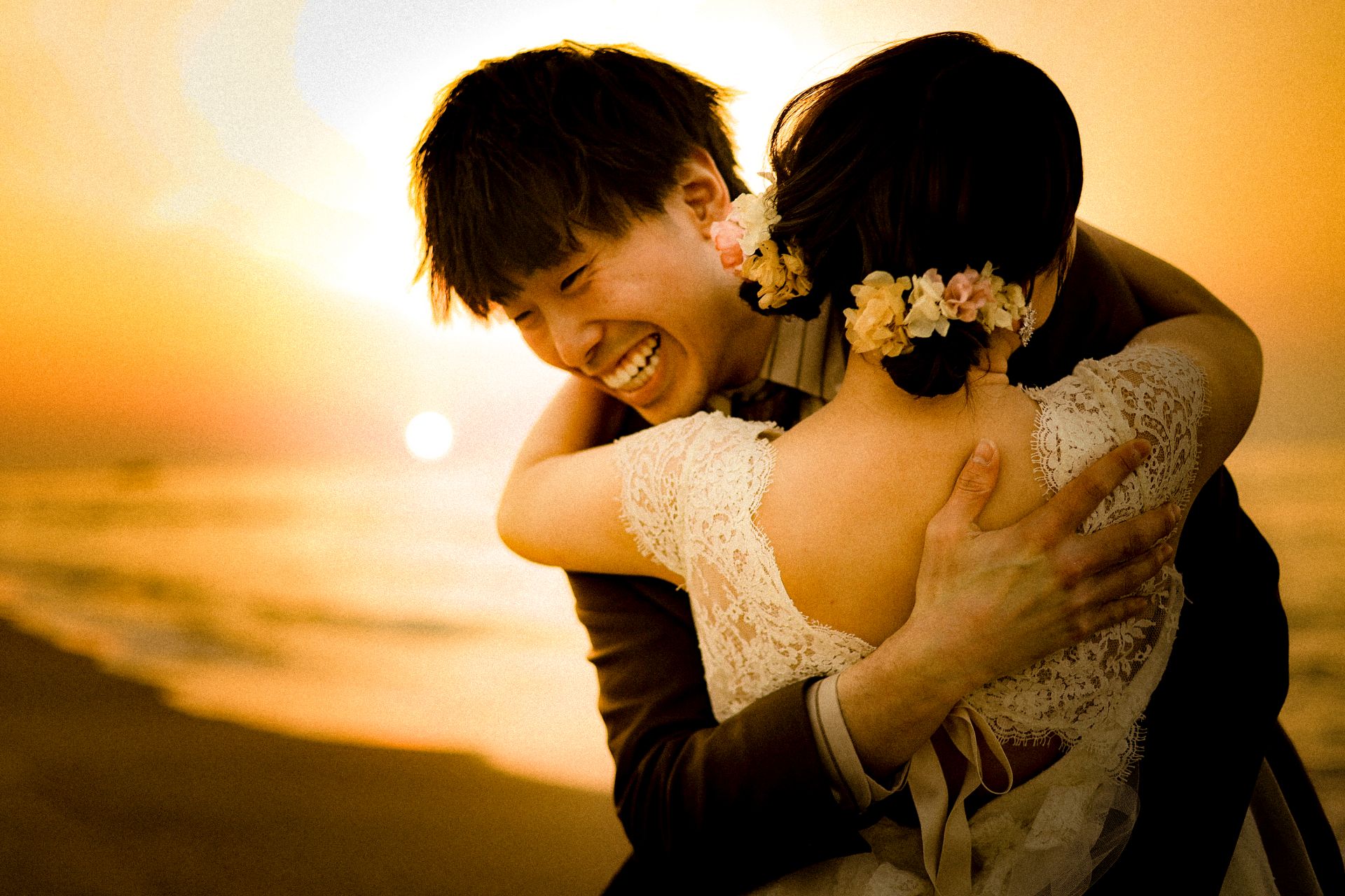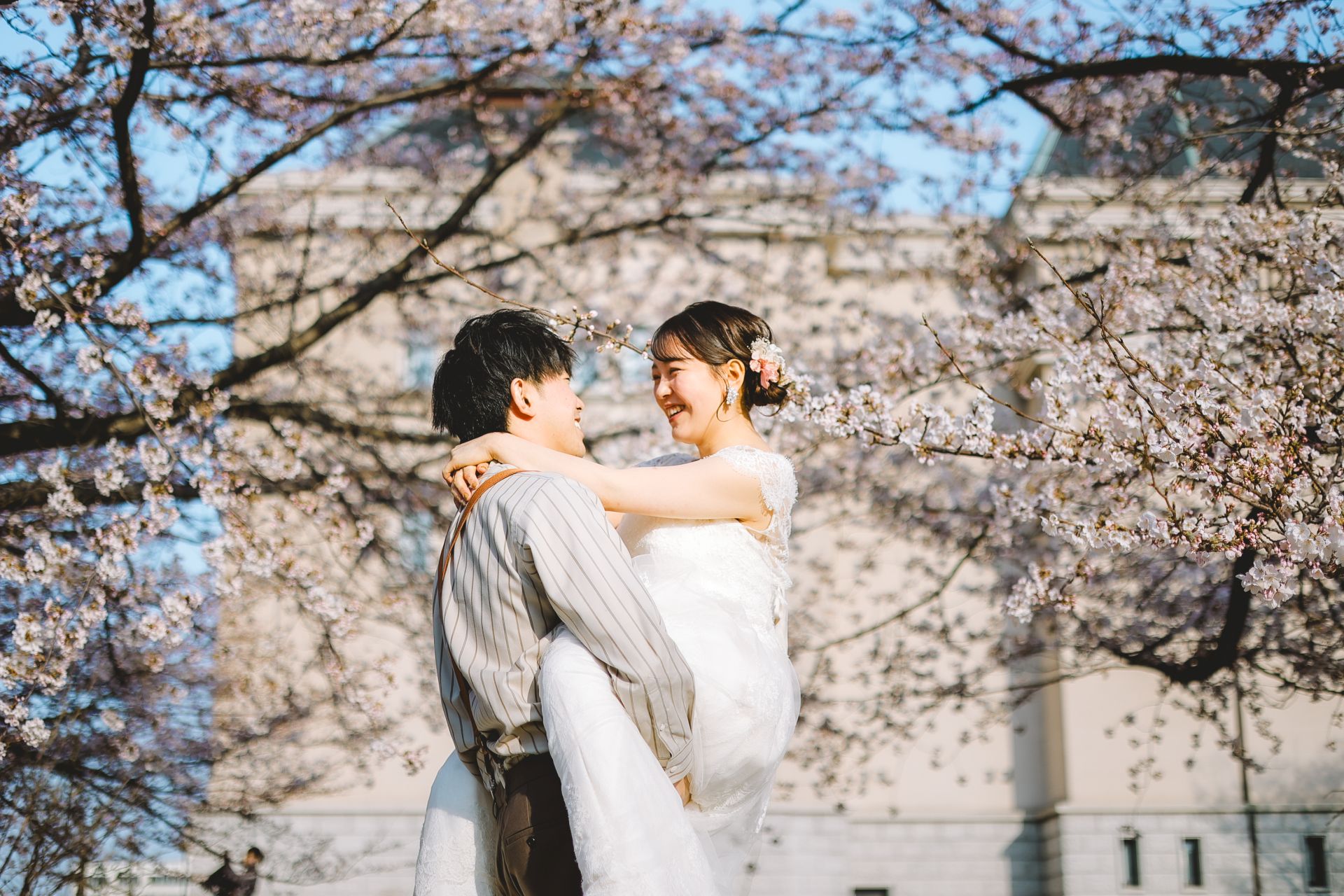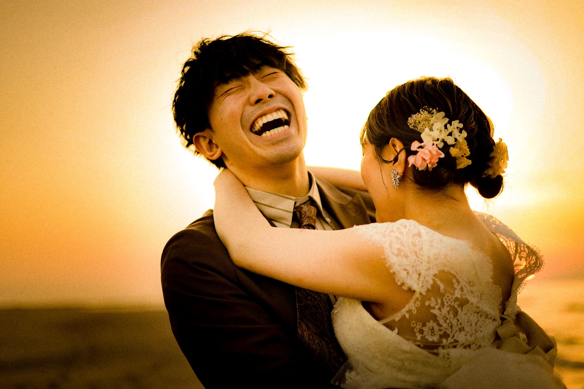 「桜と夕日に包まれた一日」 前撮りドレスフォトウェディング ウェディングドレスロケーションフォトドレス新潟ロケ海ロケ前撮りパパママ婚 一年越しの念願だった新潟でのロケーション撮影時を重ねる中でご家族も増え、あの頃よりも一層あたたかな空気に包まれたおふたり心配していた雨もこの日は澄み渡るような晴天に恵まれました桜も撮影日に合わせて開花そして一日の締めくくりには真っ赤に染まる夕日家族と季節の『今』を残す撮影となりました