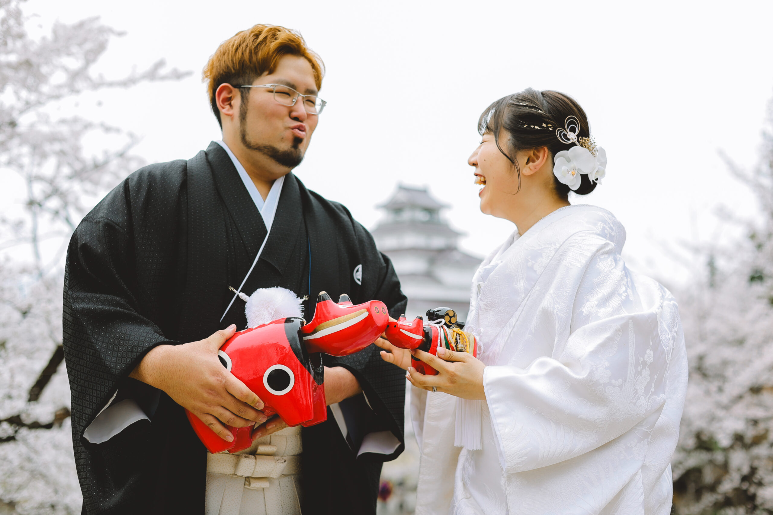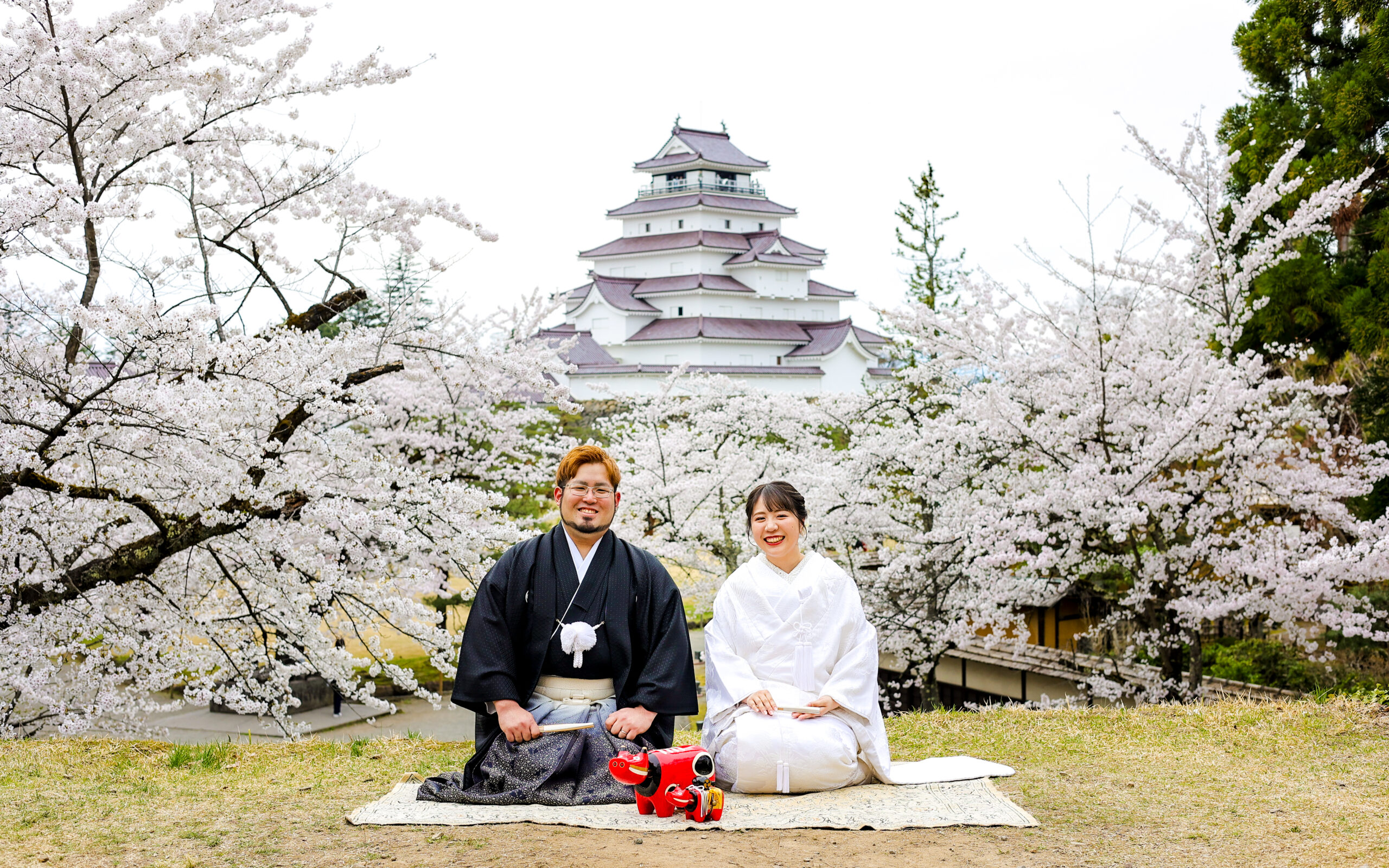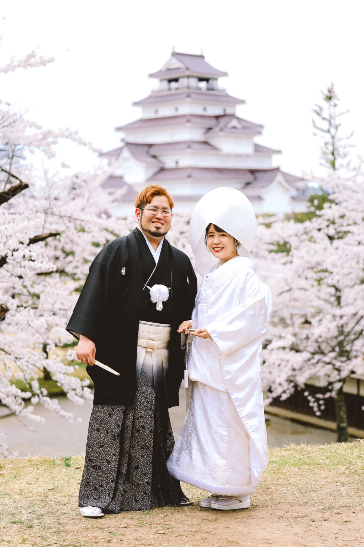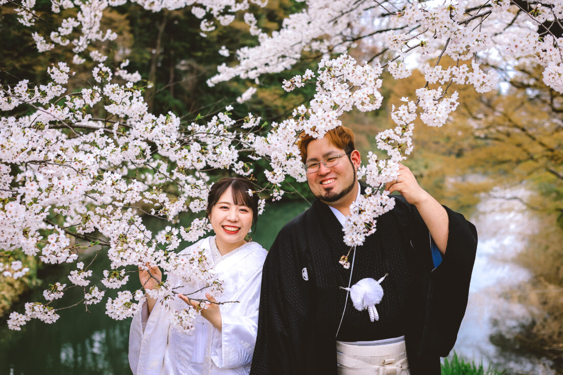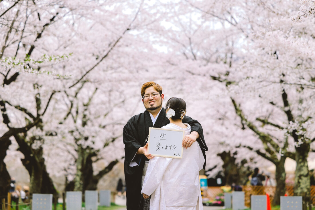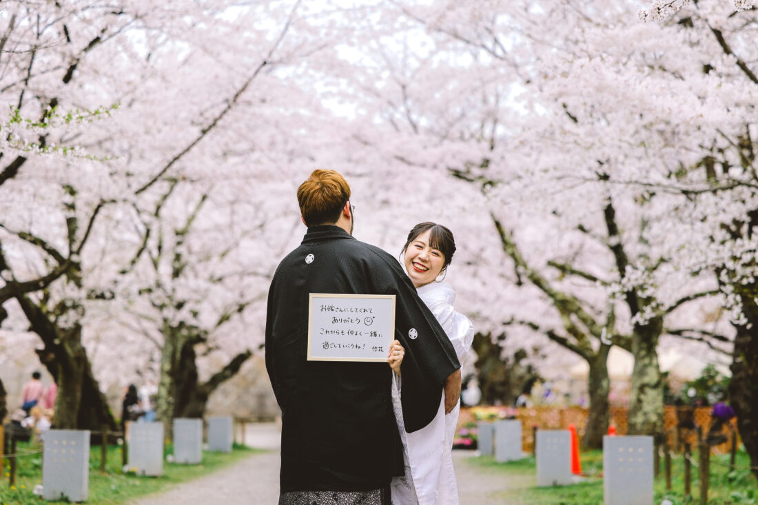 桜フォト in 会津 和装前撮りドレスフォトウェディング ウェディングドレスロケーションフォトドレス白無垢和装前撮り 会津の街が一番、暖かく美しい日に両家のご両親さまも駆けつけてくれてにぎやかで楽しい撮影になりましたね!おふたりにとって会津がまた特別な場所になりますように✨️