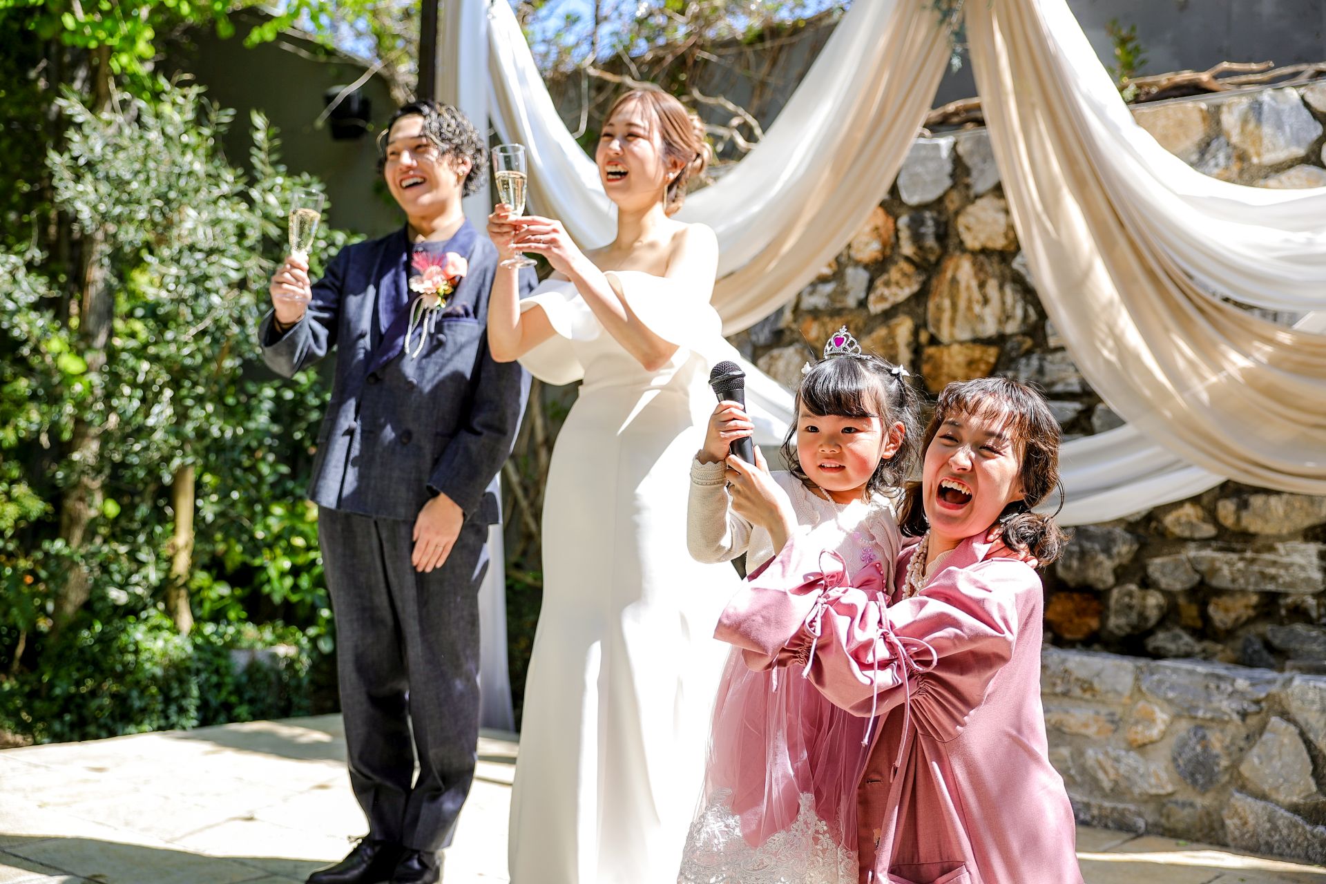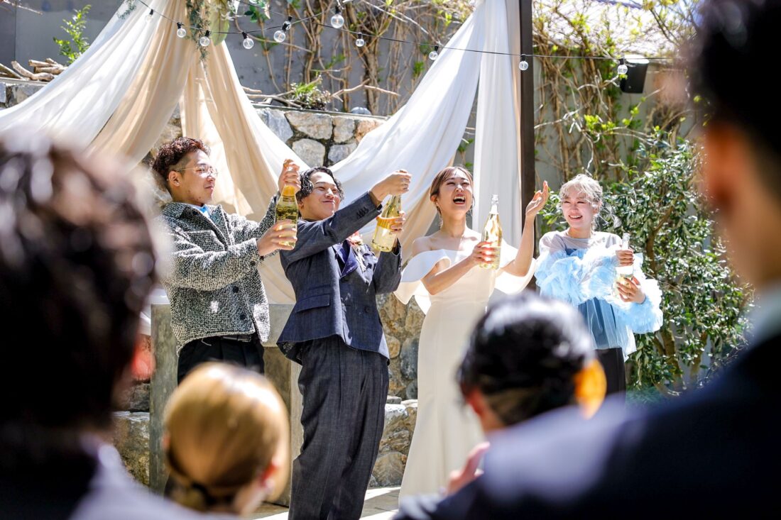春の清々しい光に包まれたこの日、大好きな家族や友人たちに「ありがとう」を伝えたくて、ガーデンWEDDINGを選びました。かしこまりすぎない、自分たちらしいラフでアットホームなPARTYは、終始笑顔があふれる時間に。みんなと一緒に過ごす中で、改めて大切な人たちとのつながりを感じられて、絆もぐっと深まった気がします。自然の中でのびのびと過ごしたこの一日が、私たちにとってずっと忘れられない思い出になりました。これからもこの気持ちを大切にしていきたいです。
